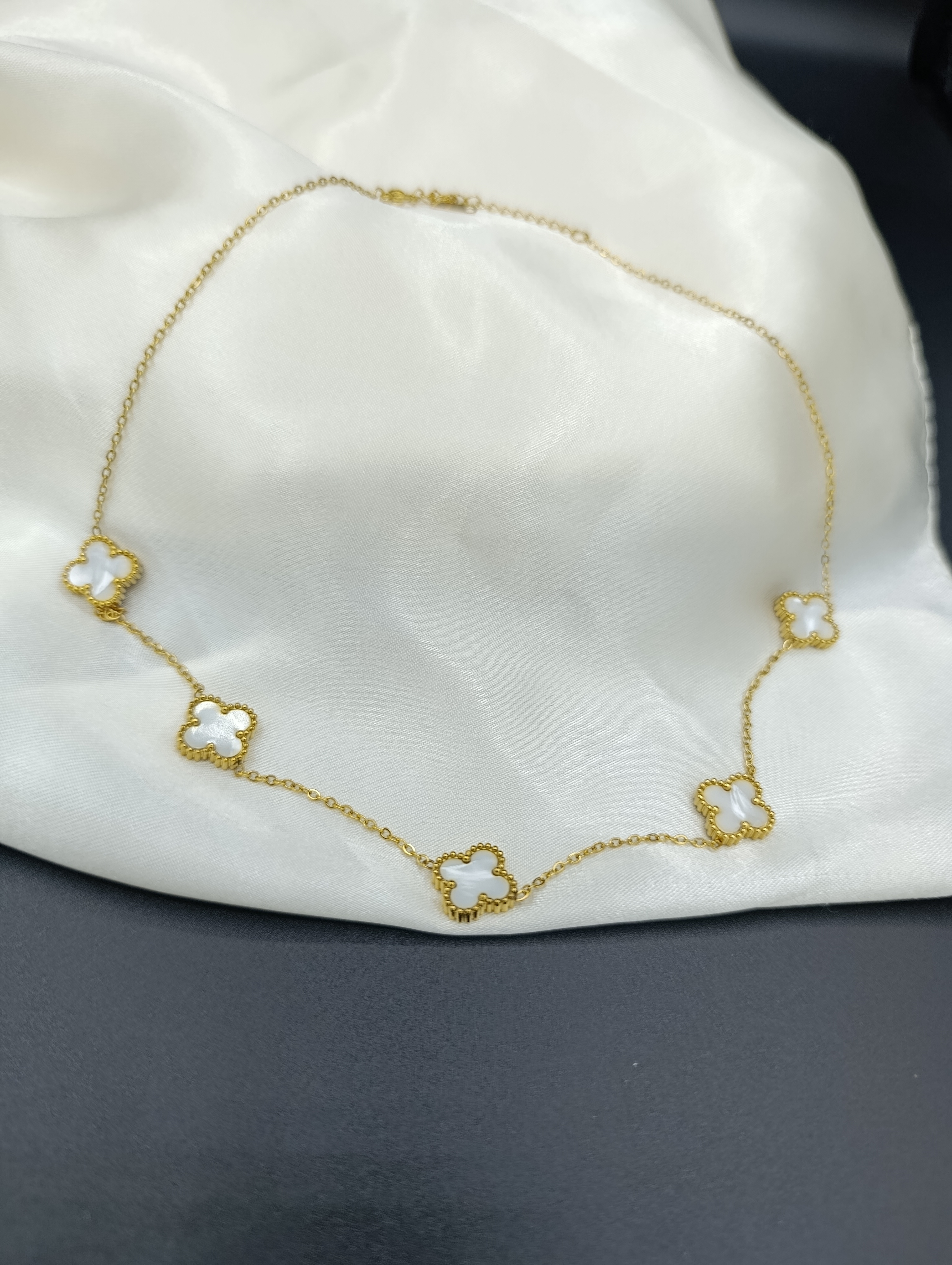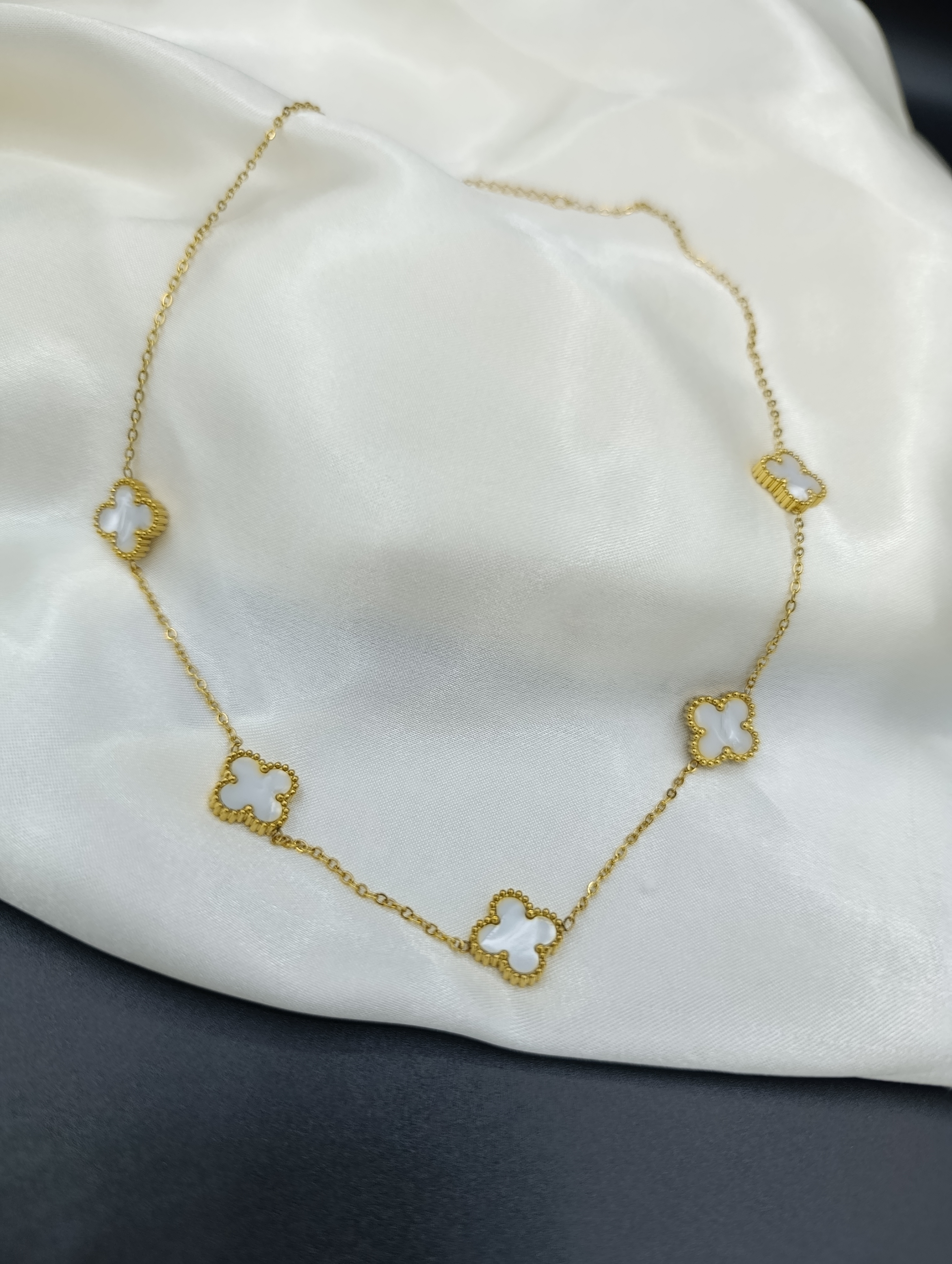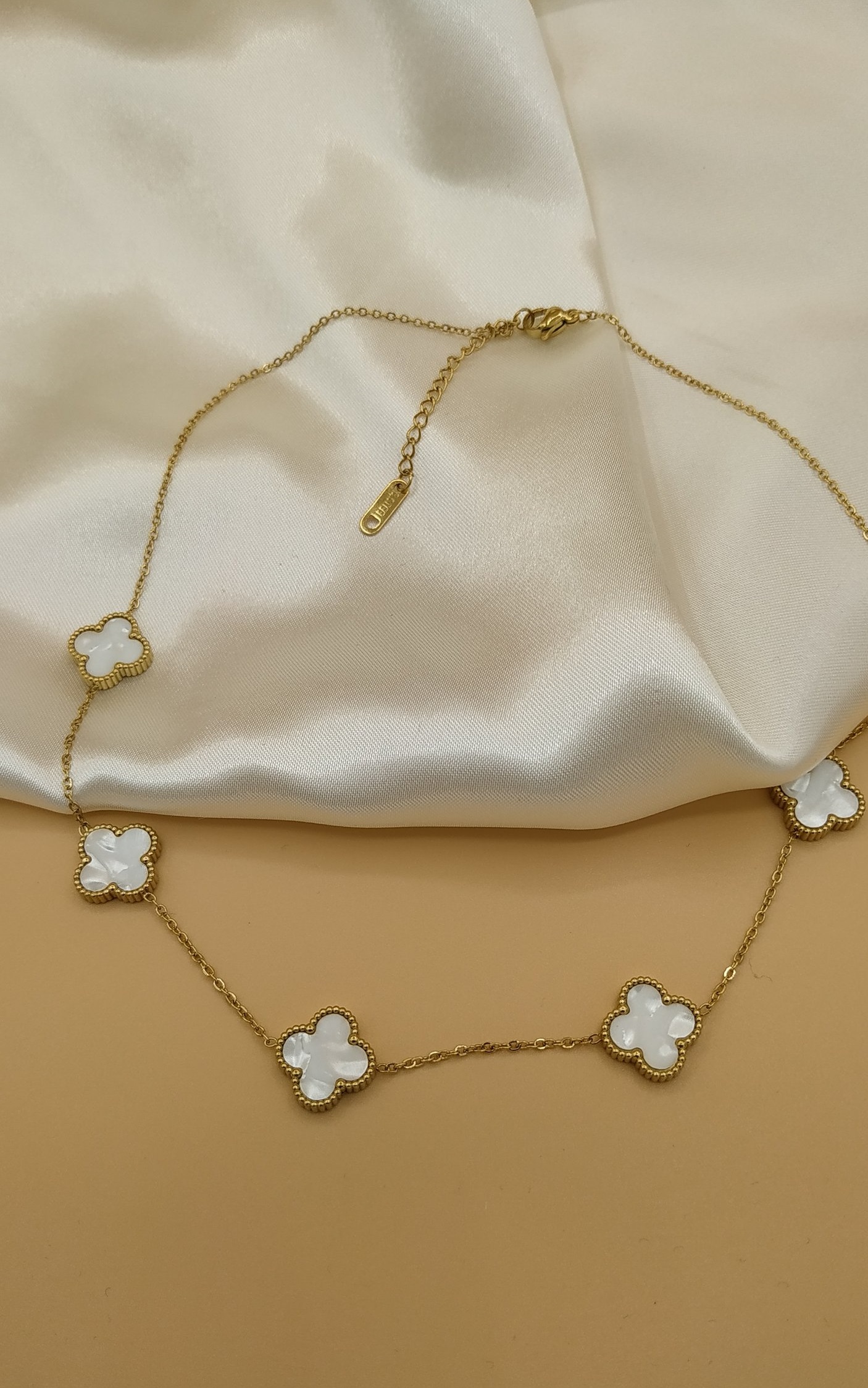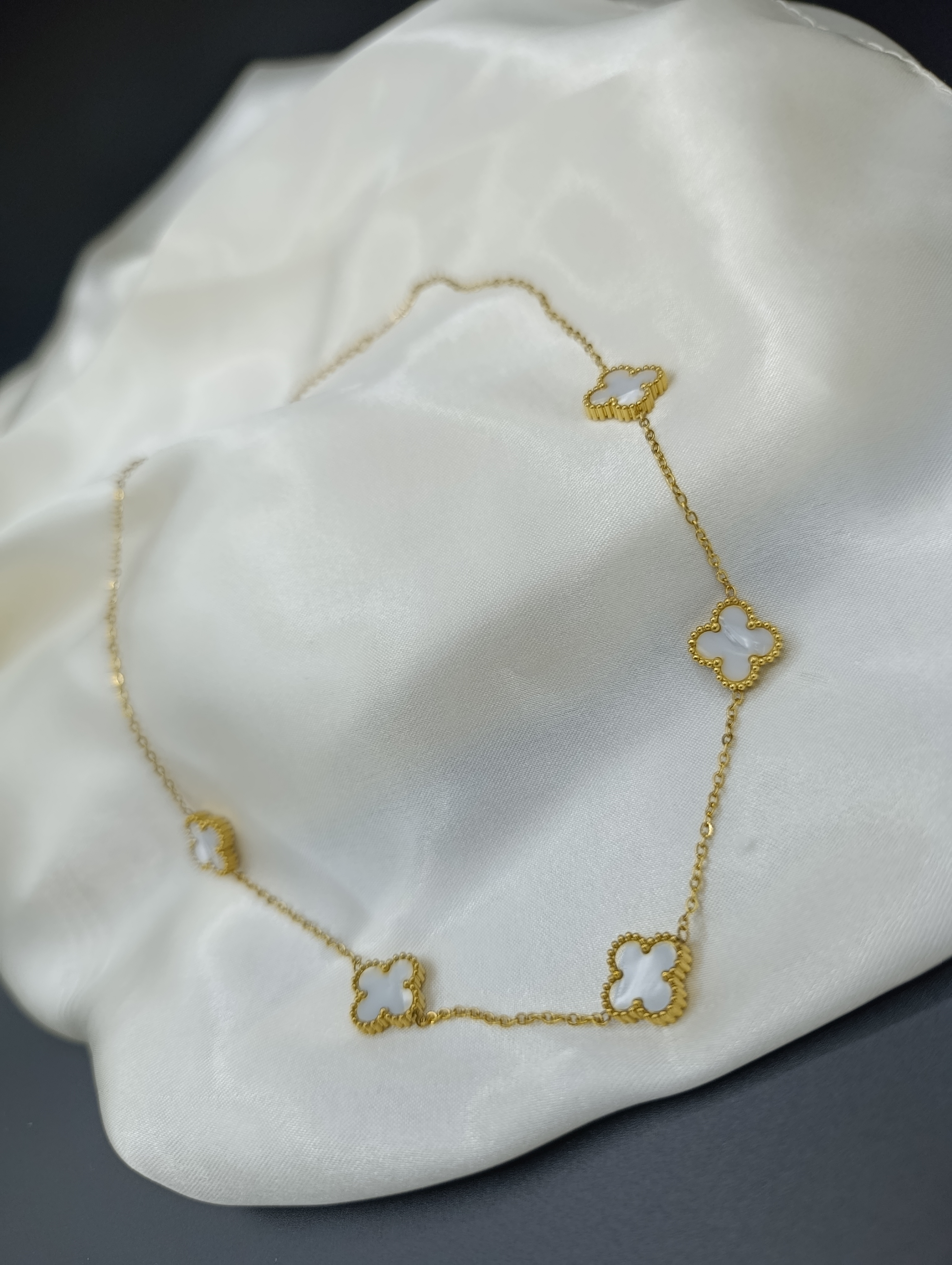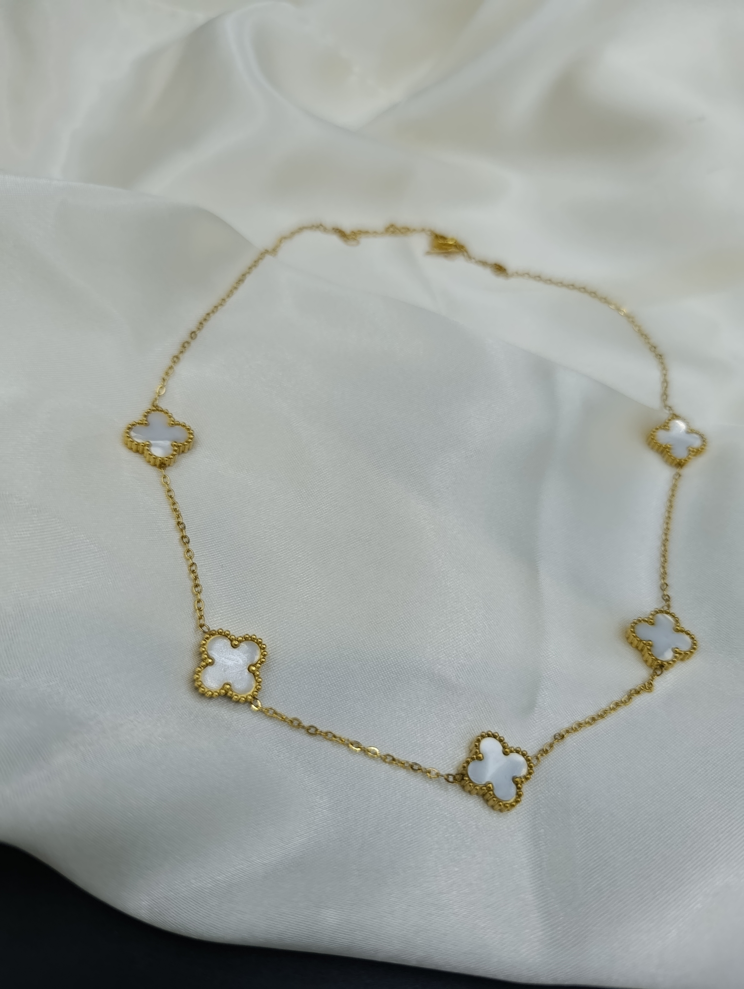 Beyaz Sedef Van Cleef Yonca Model Çelik Kolye