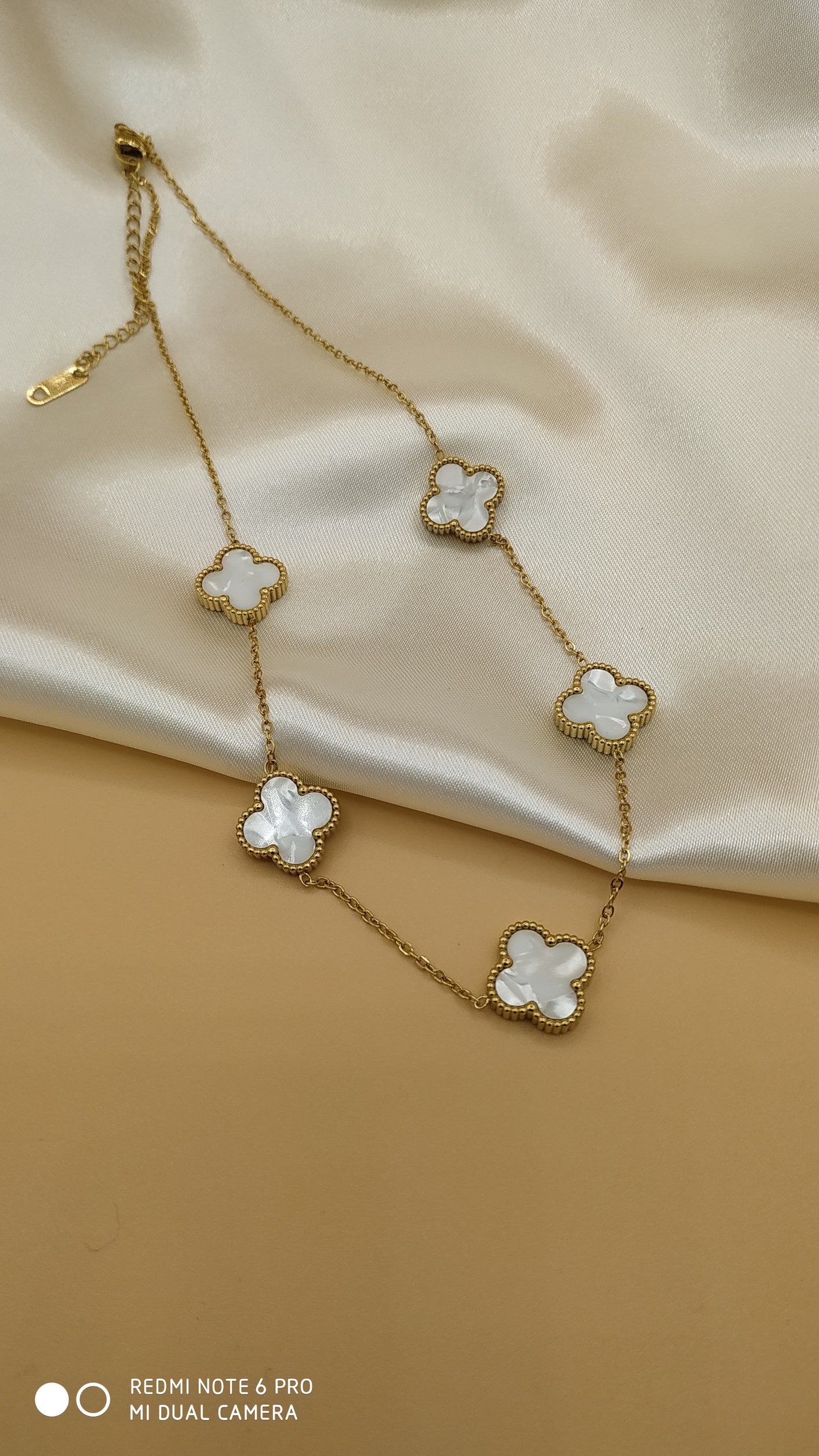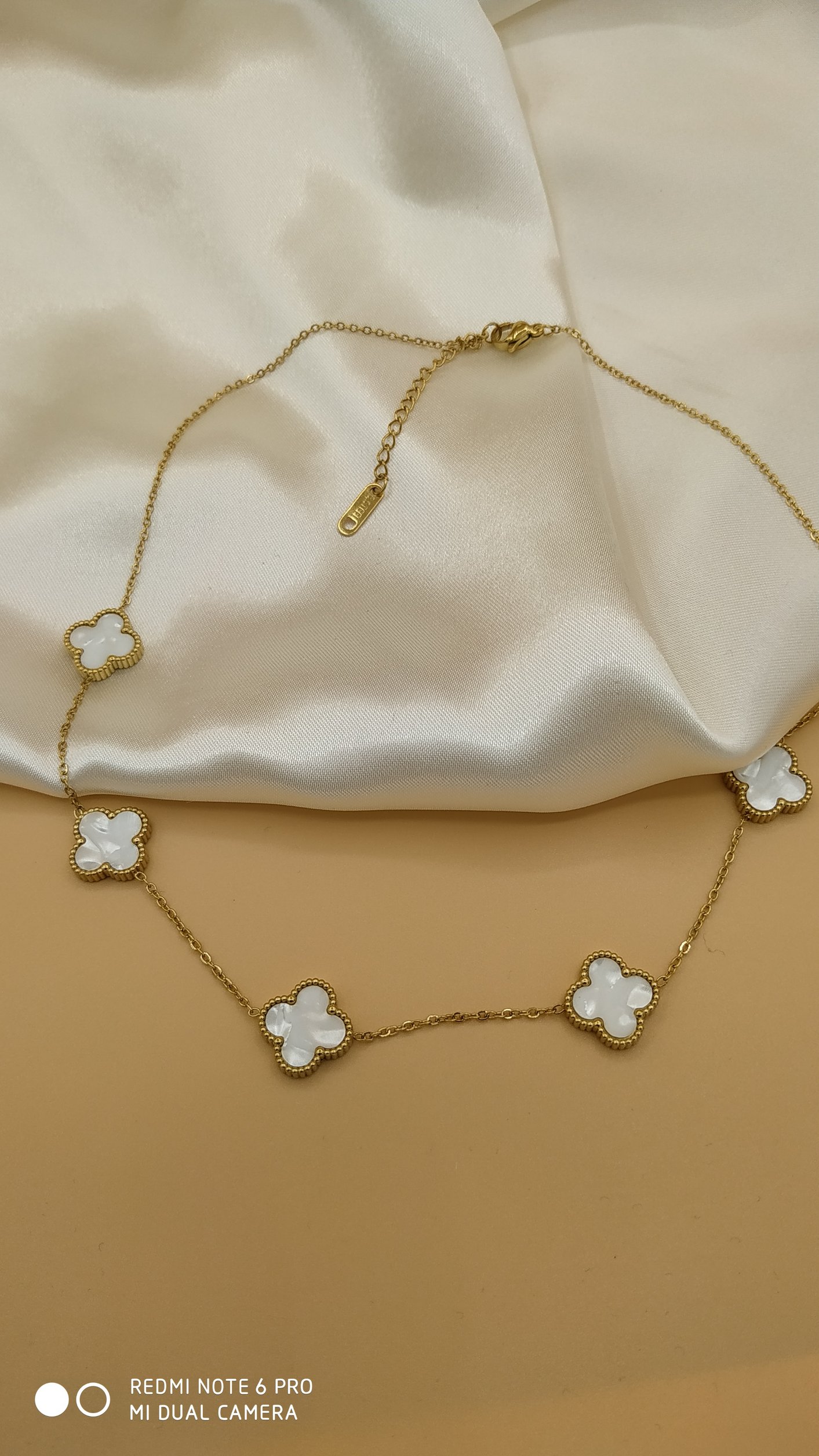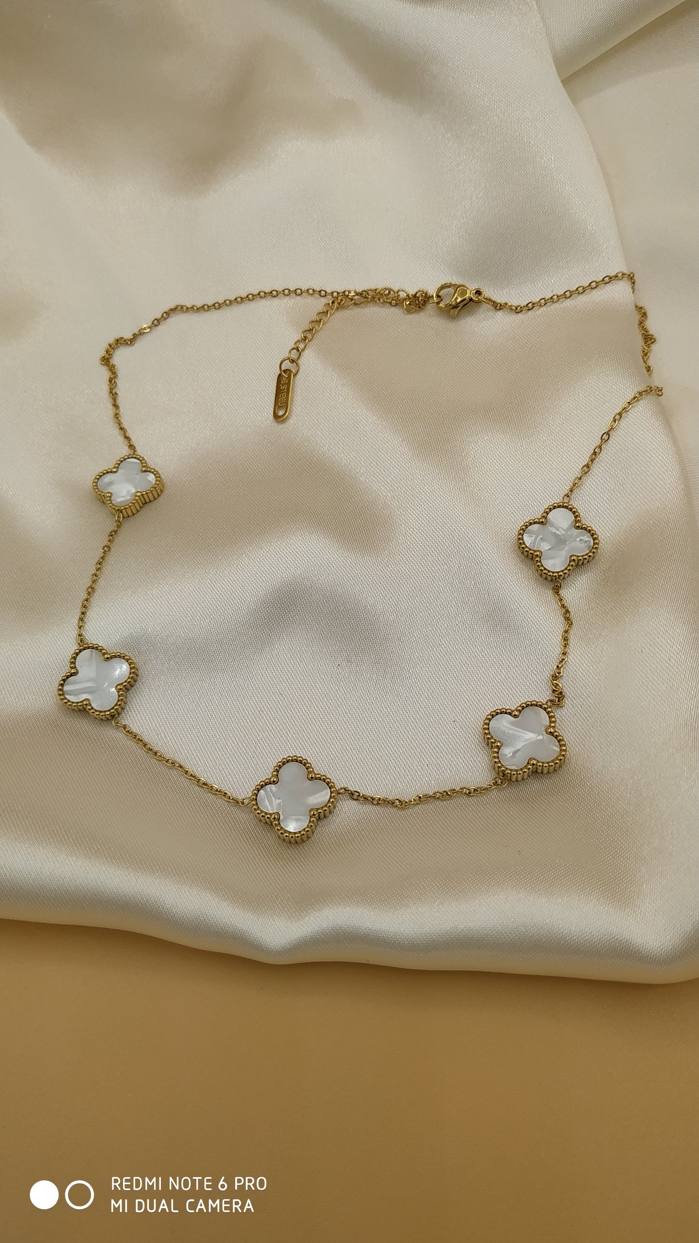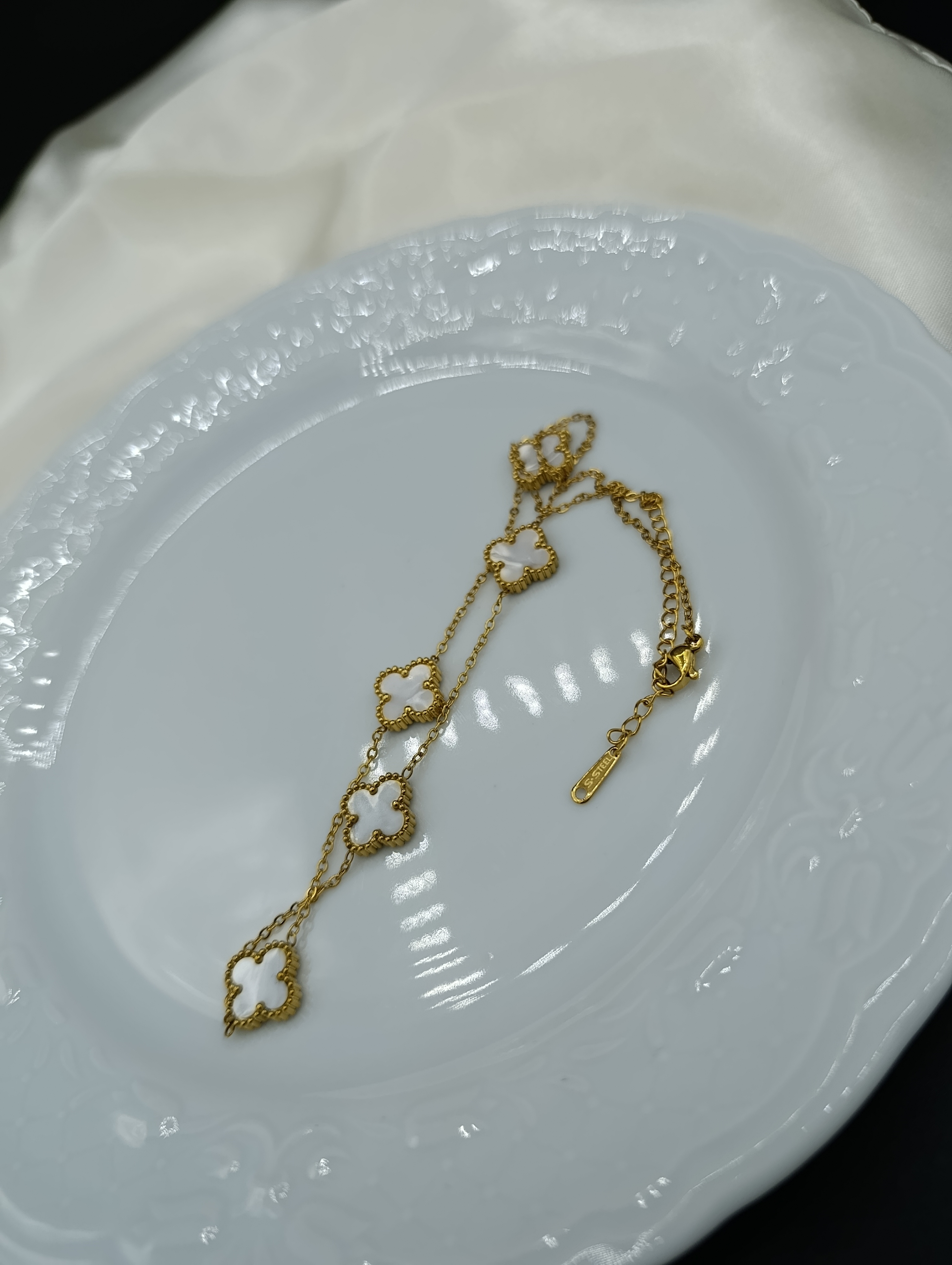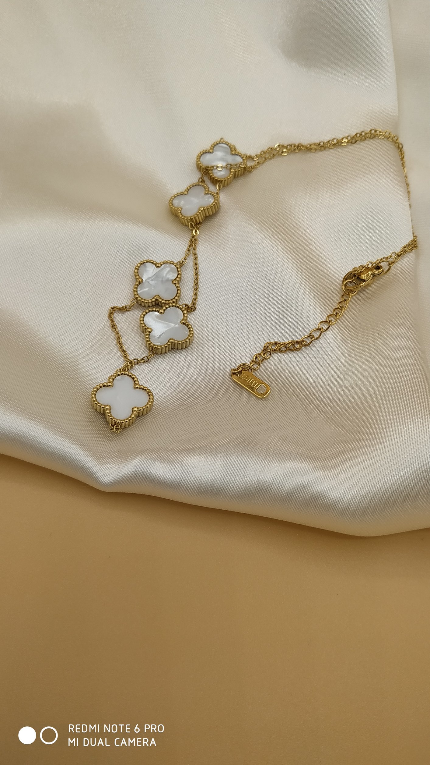 Beyaz Sedef Van Cleef Yonca Model Çelik Kolye