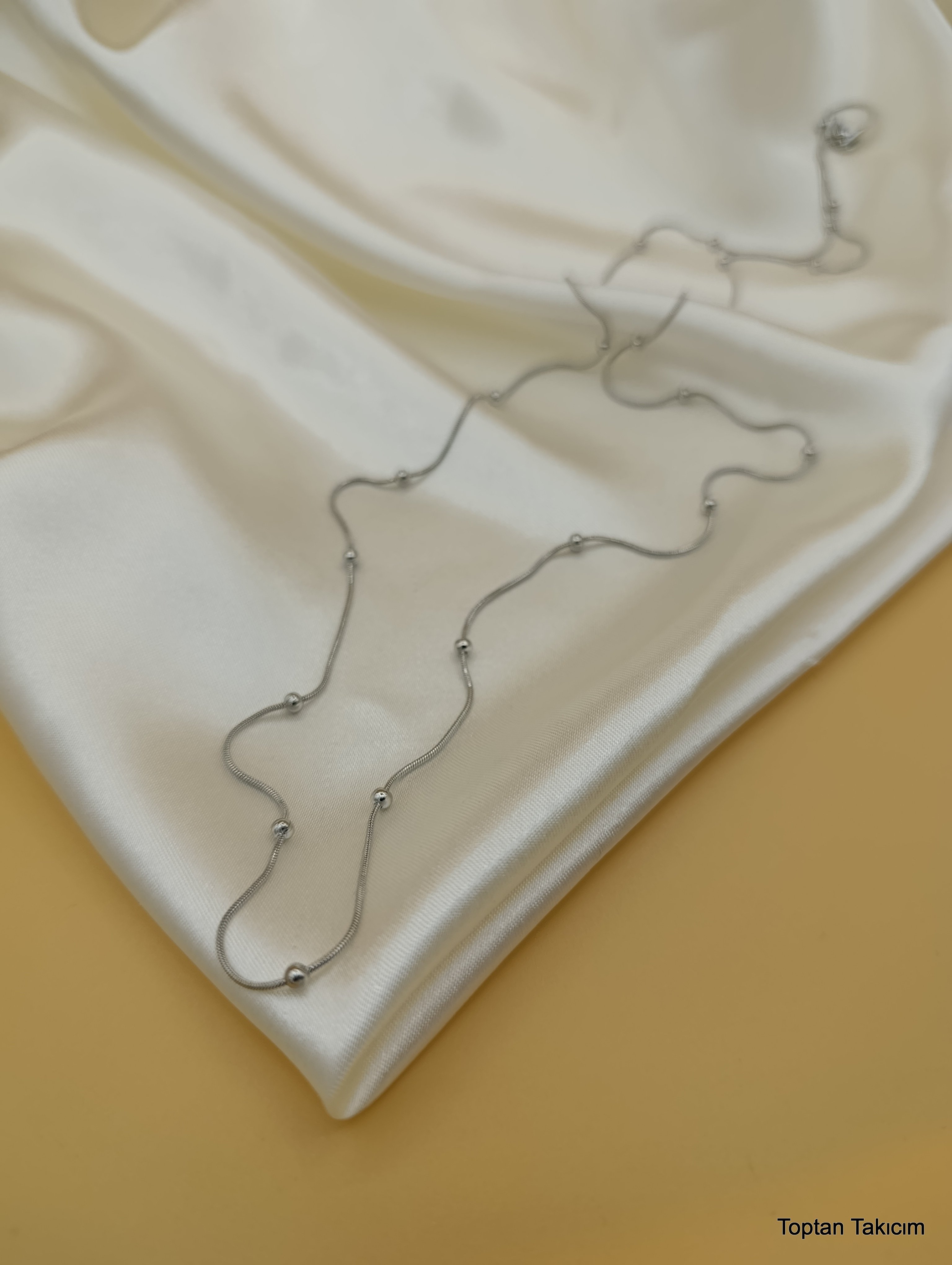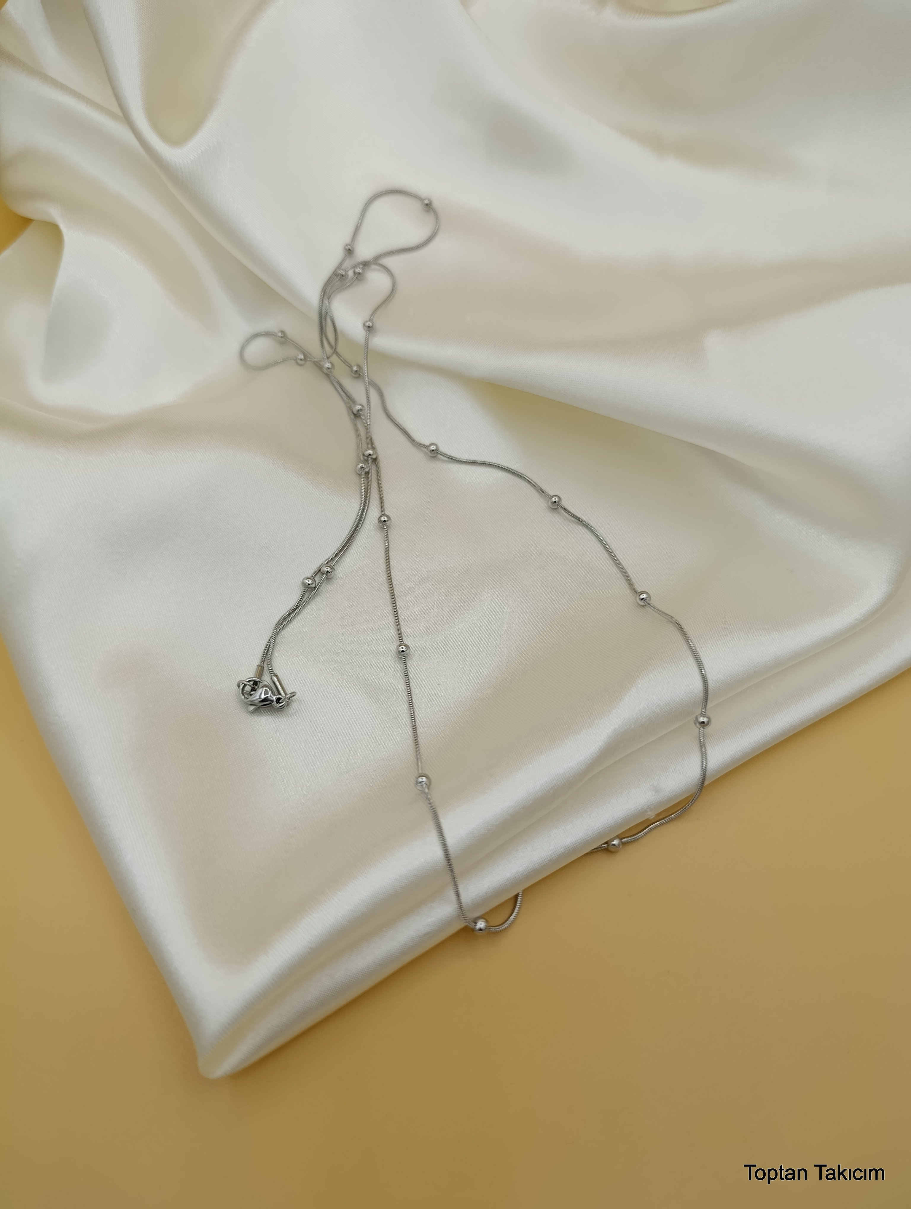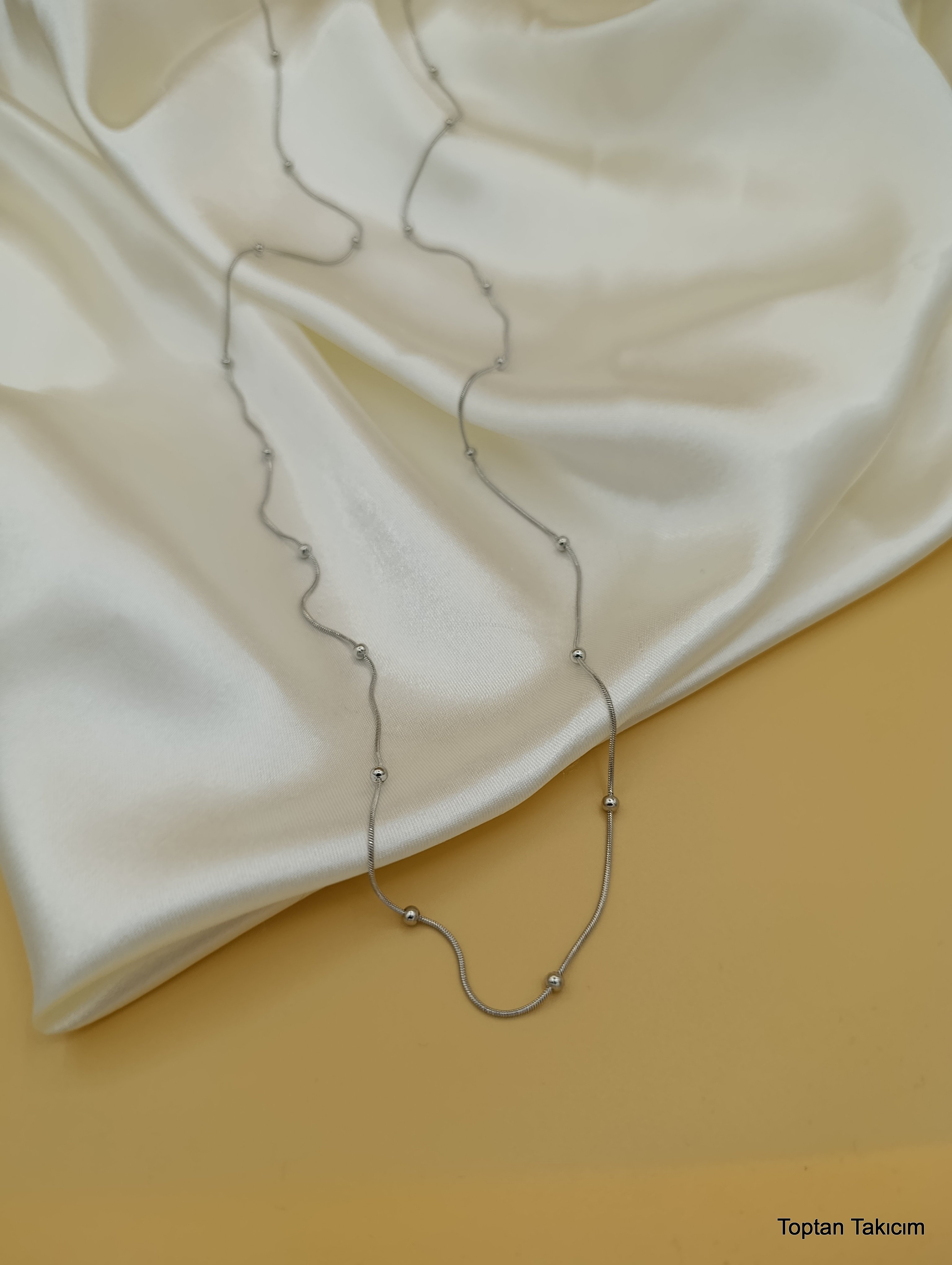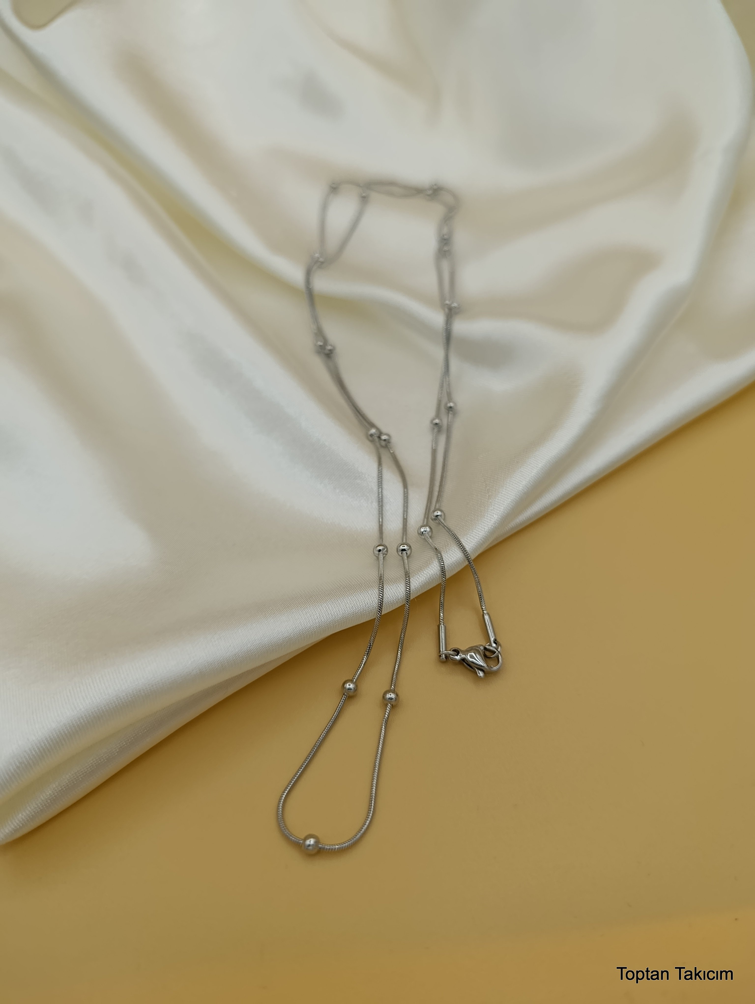 Dorika Topçuklu Çelik Zincir Kolye - 45 cm