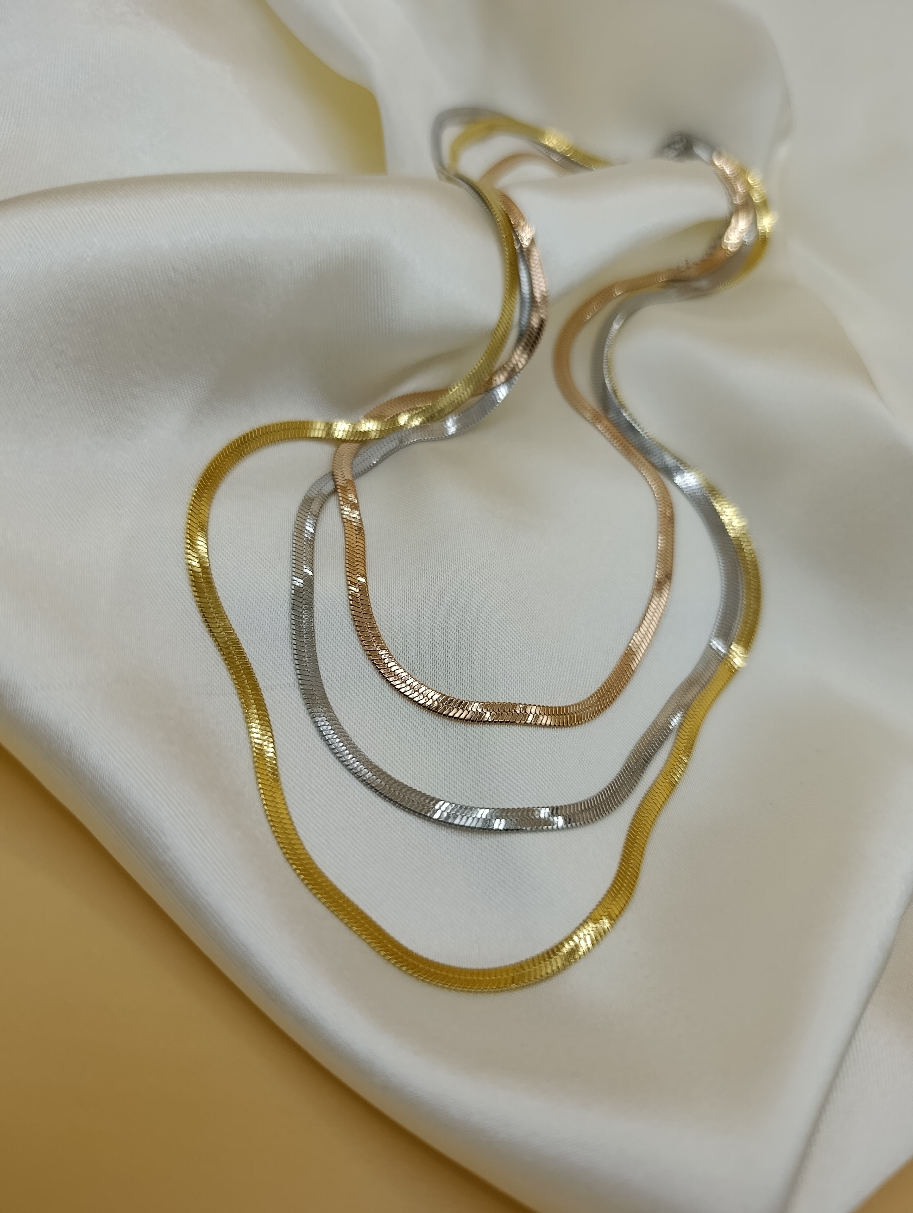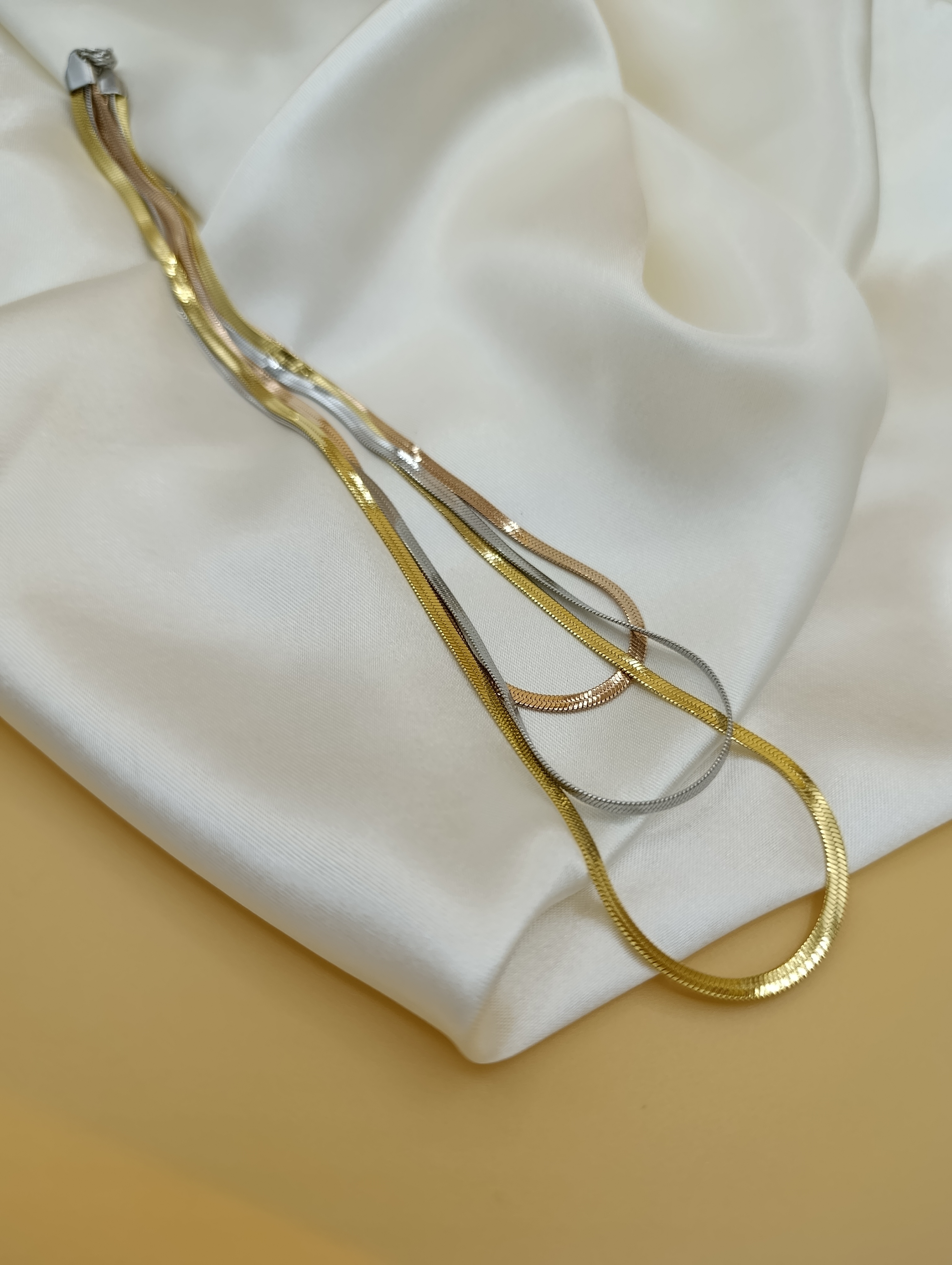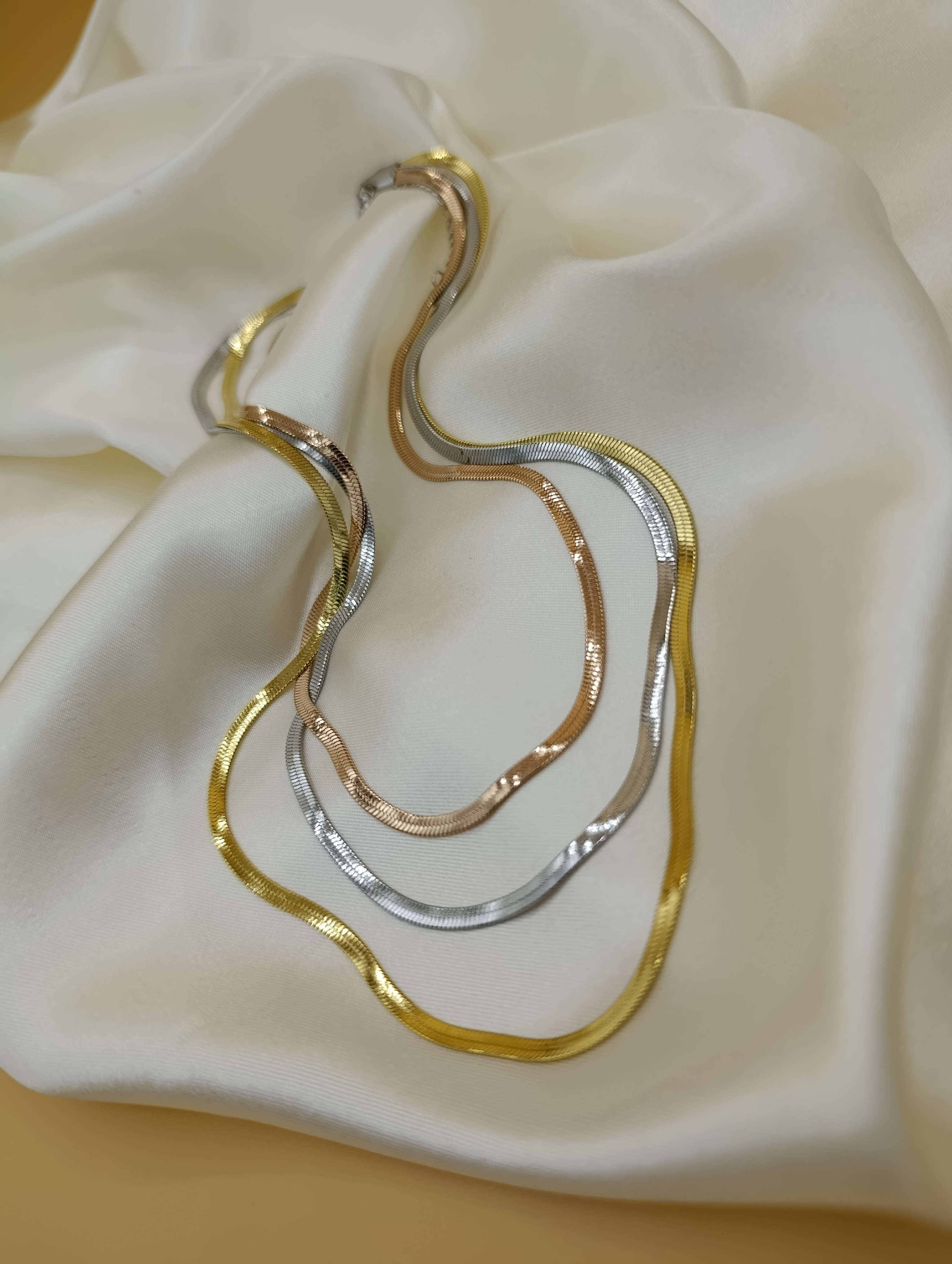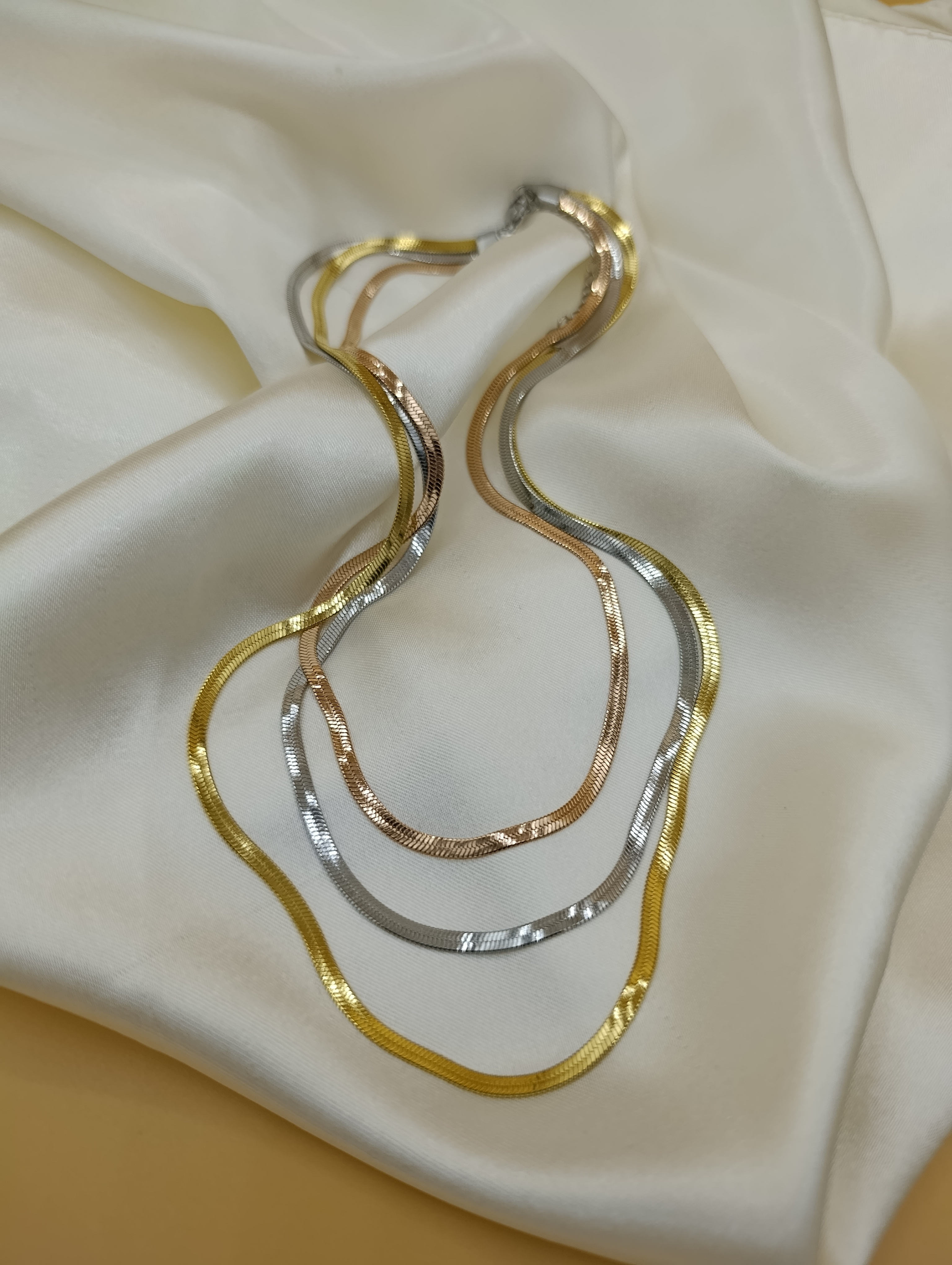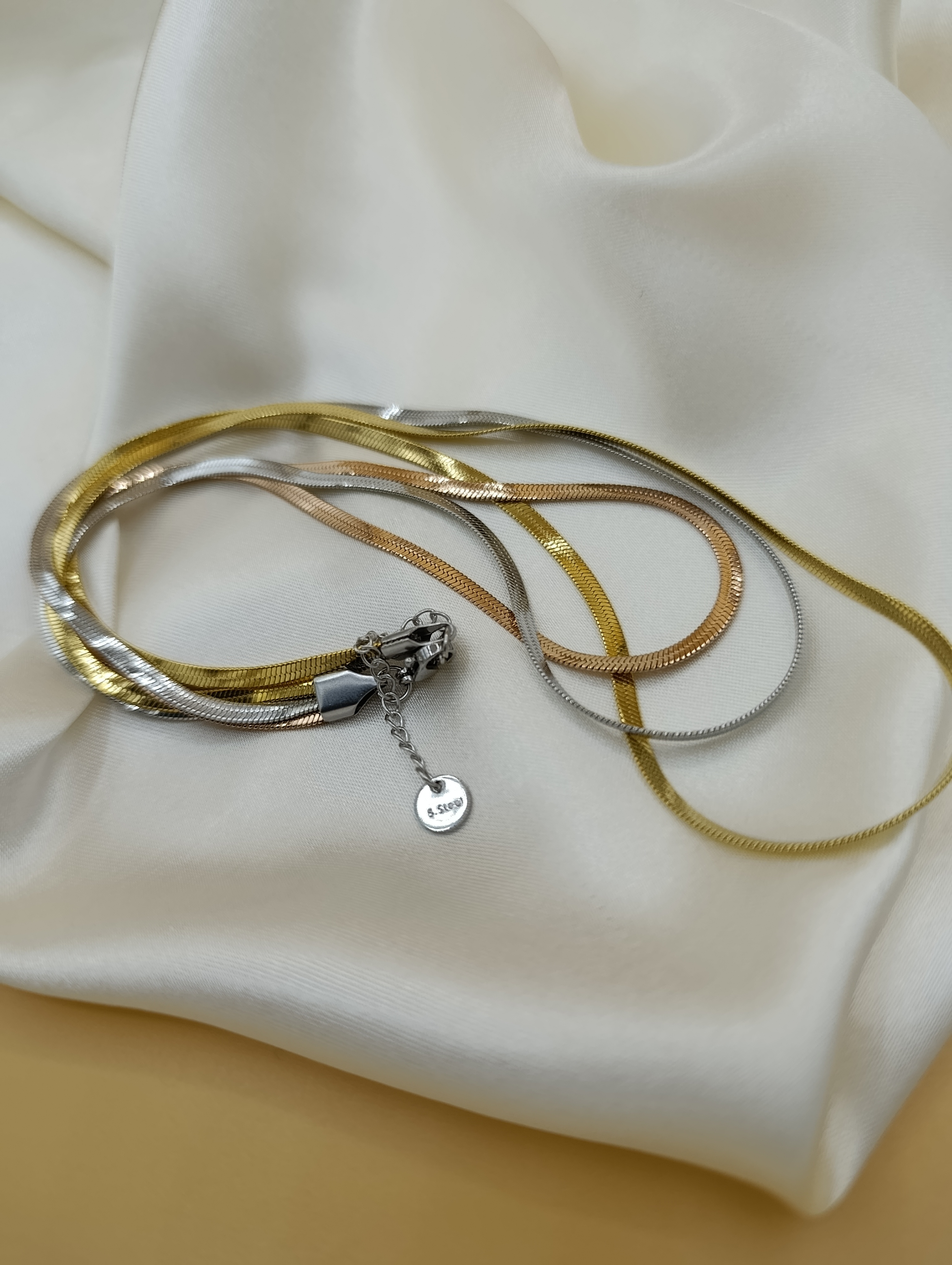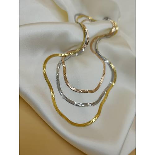 İtalyan Yassı Gold-Rose-Gümüş Üçlü Çelik Kolye
