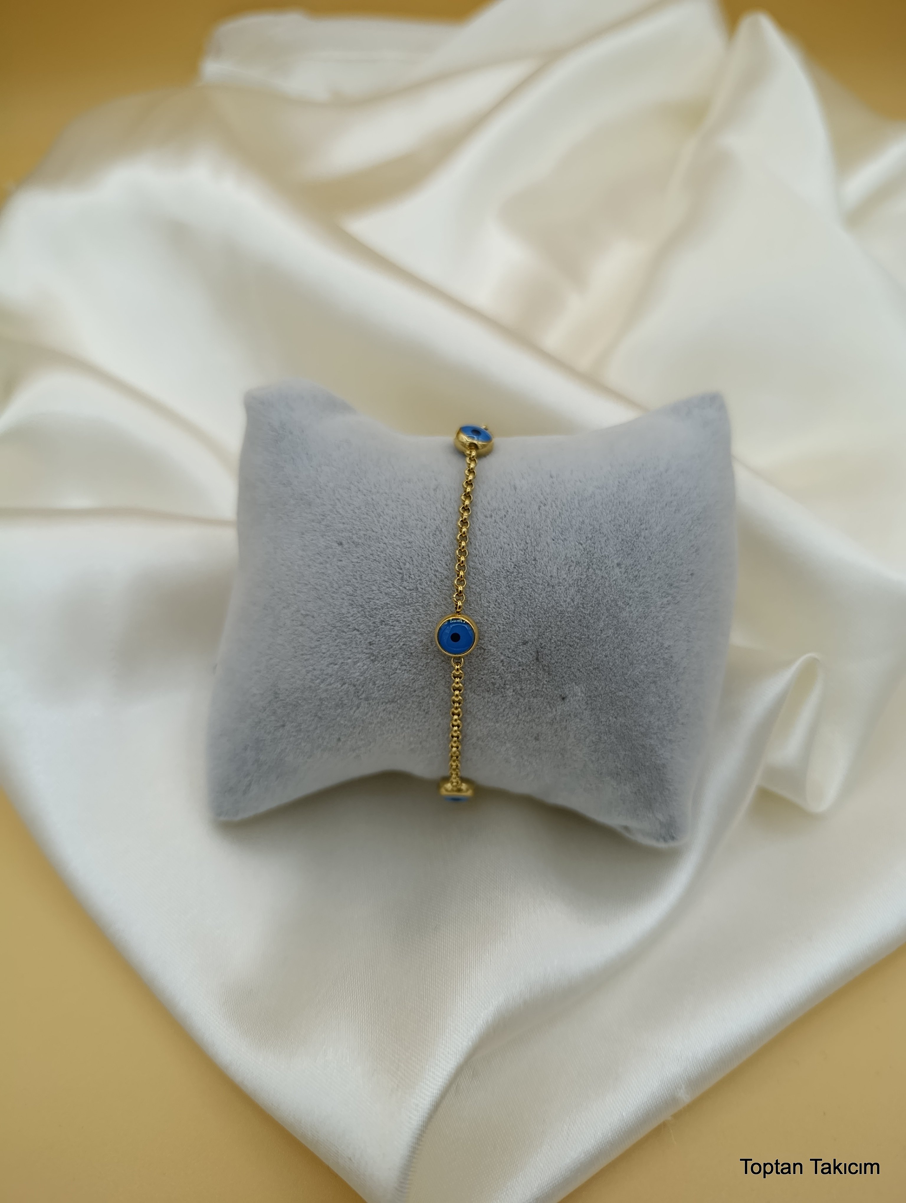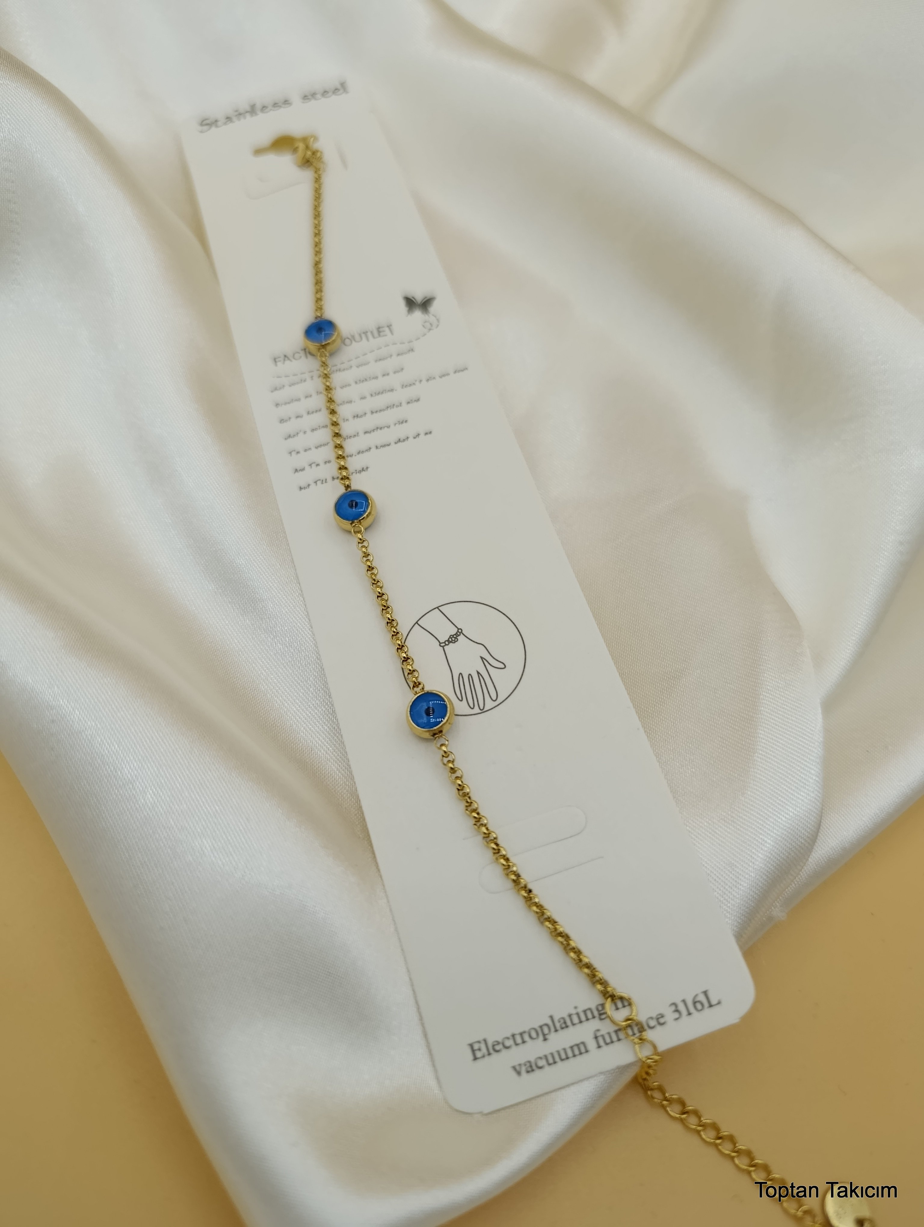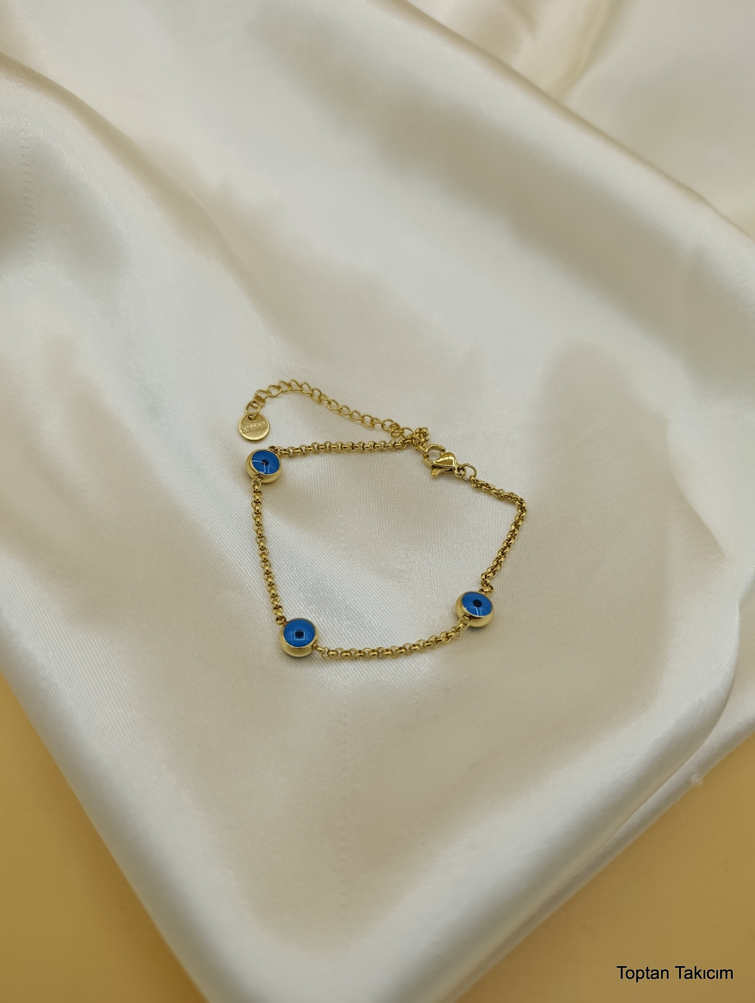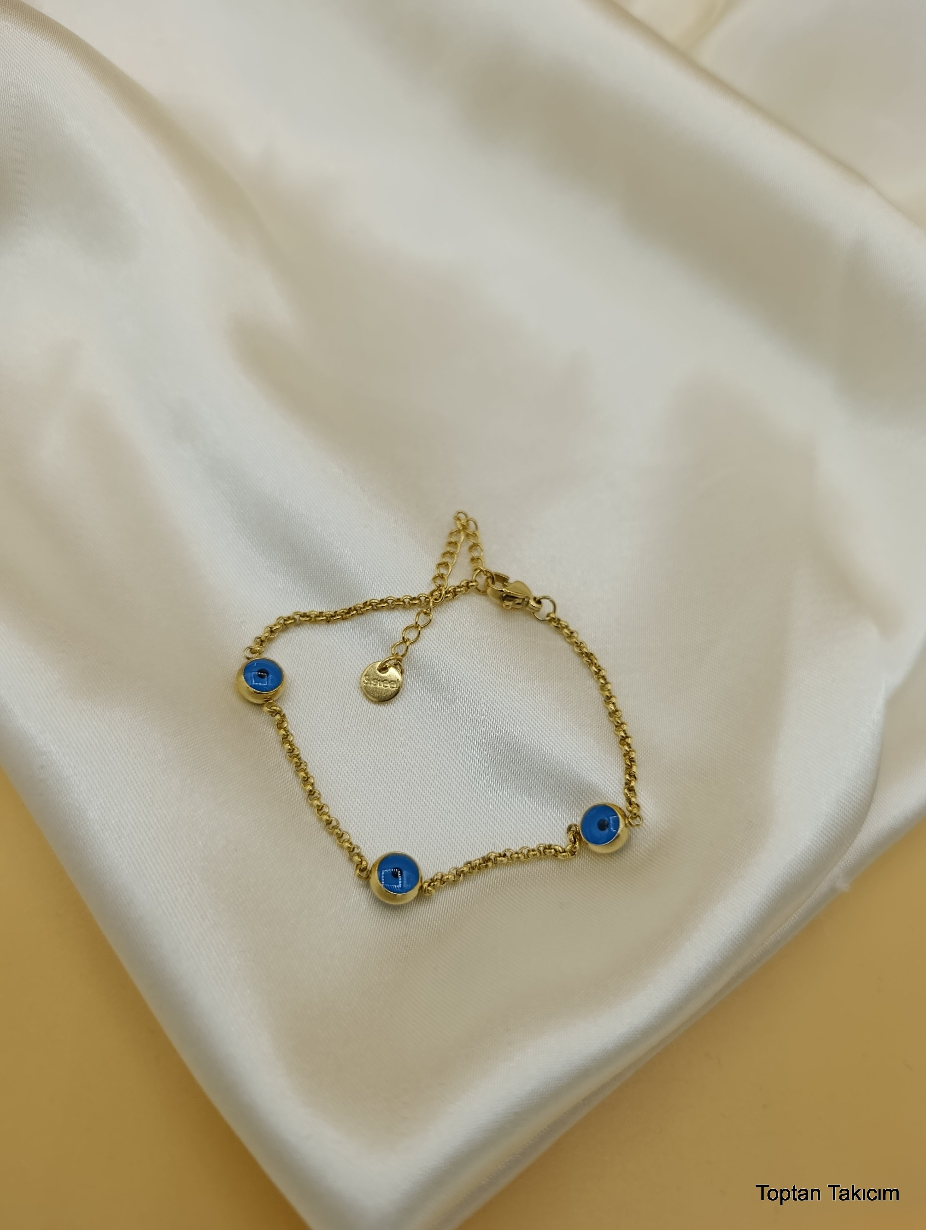 Mavi Boncuklu Çelik Zincir Bileklik
