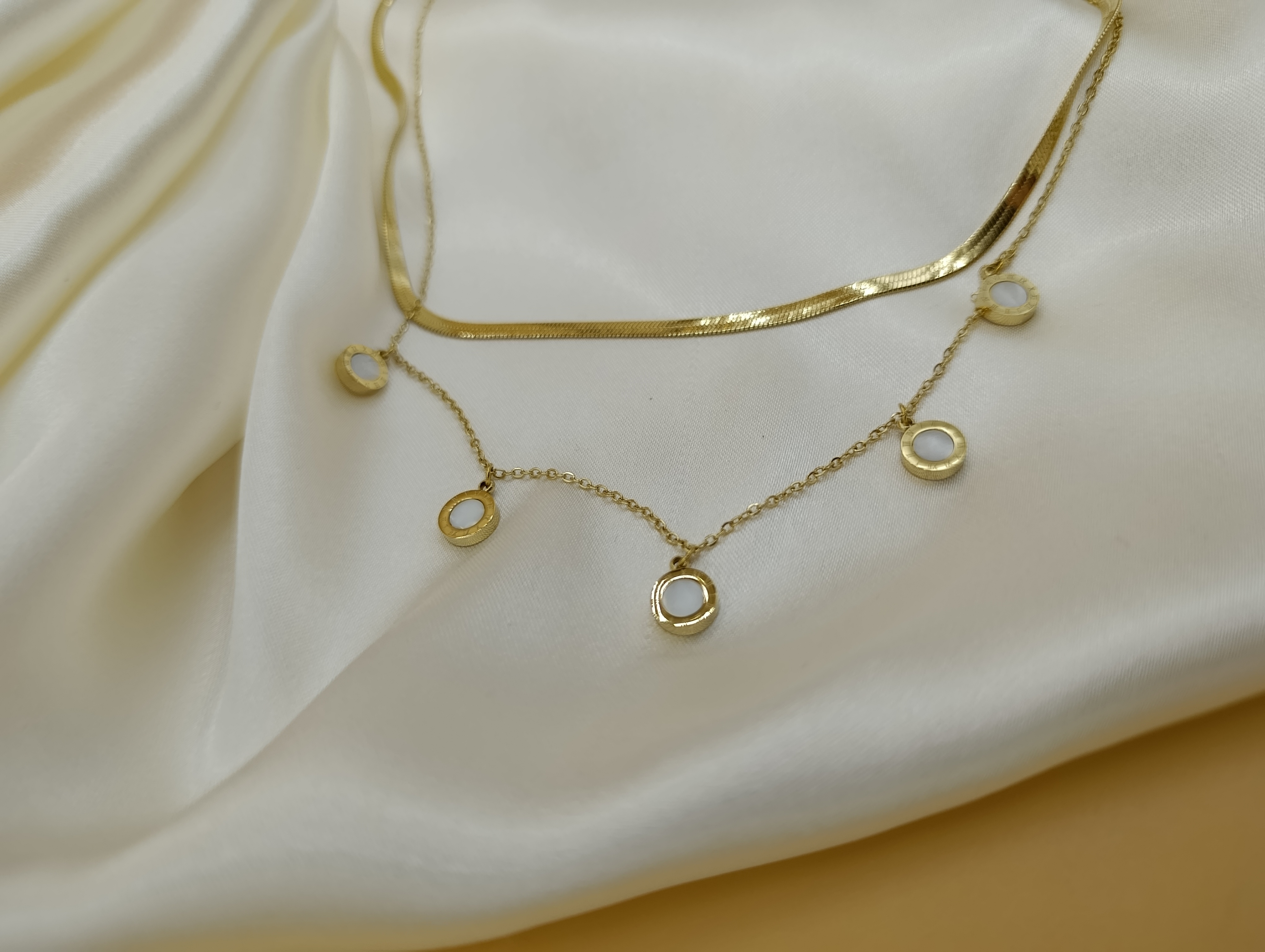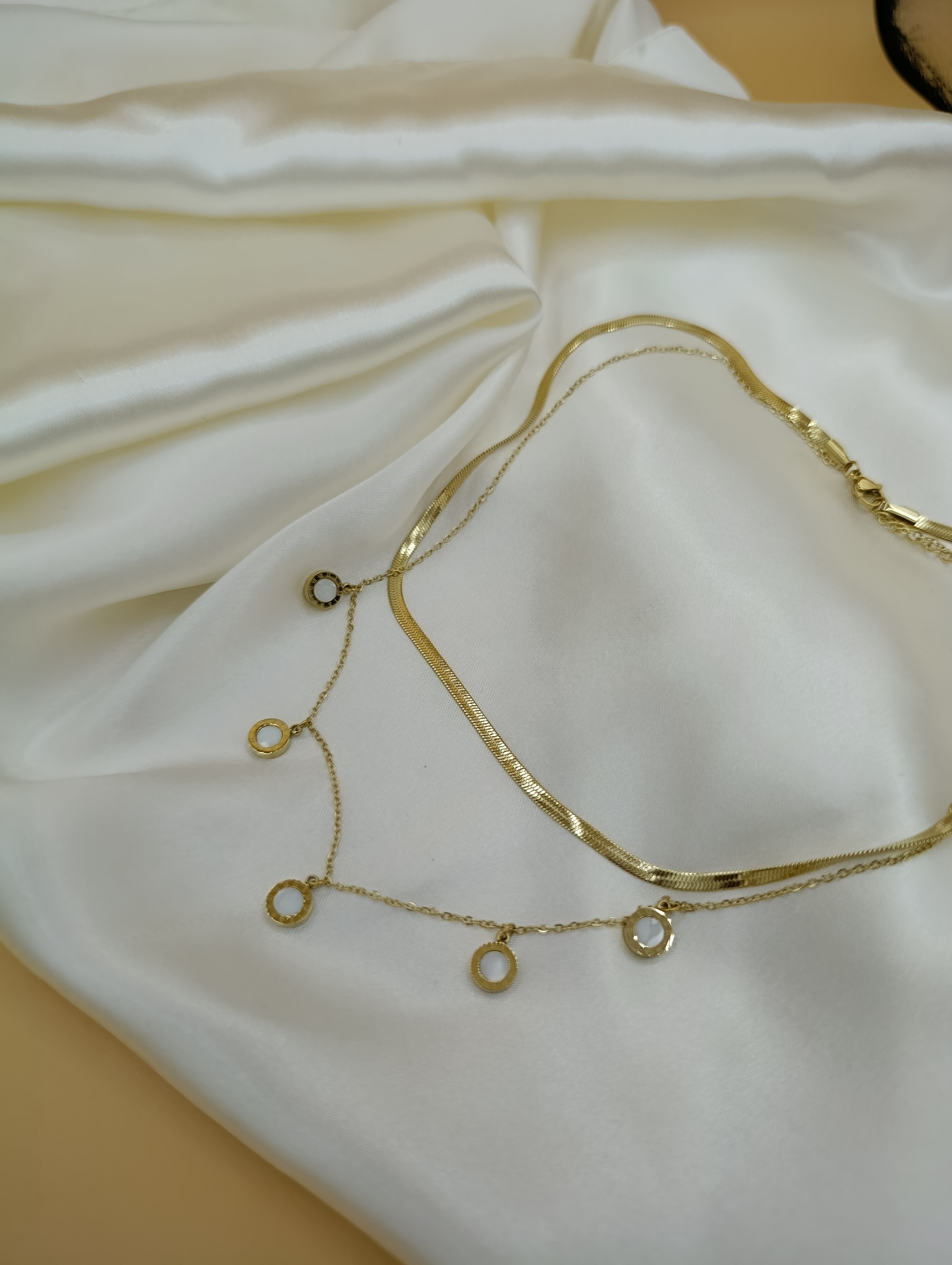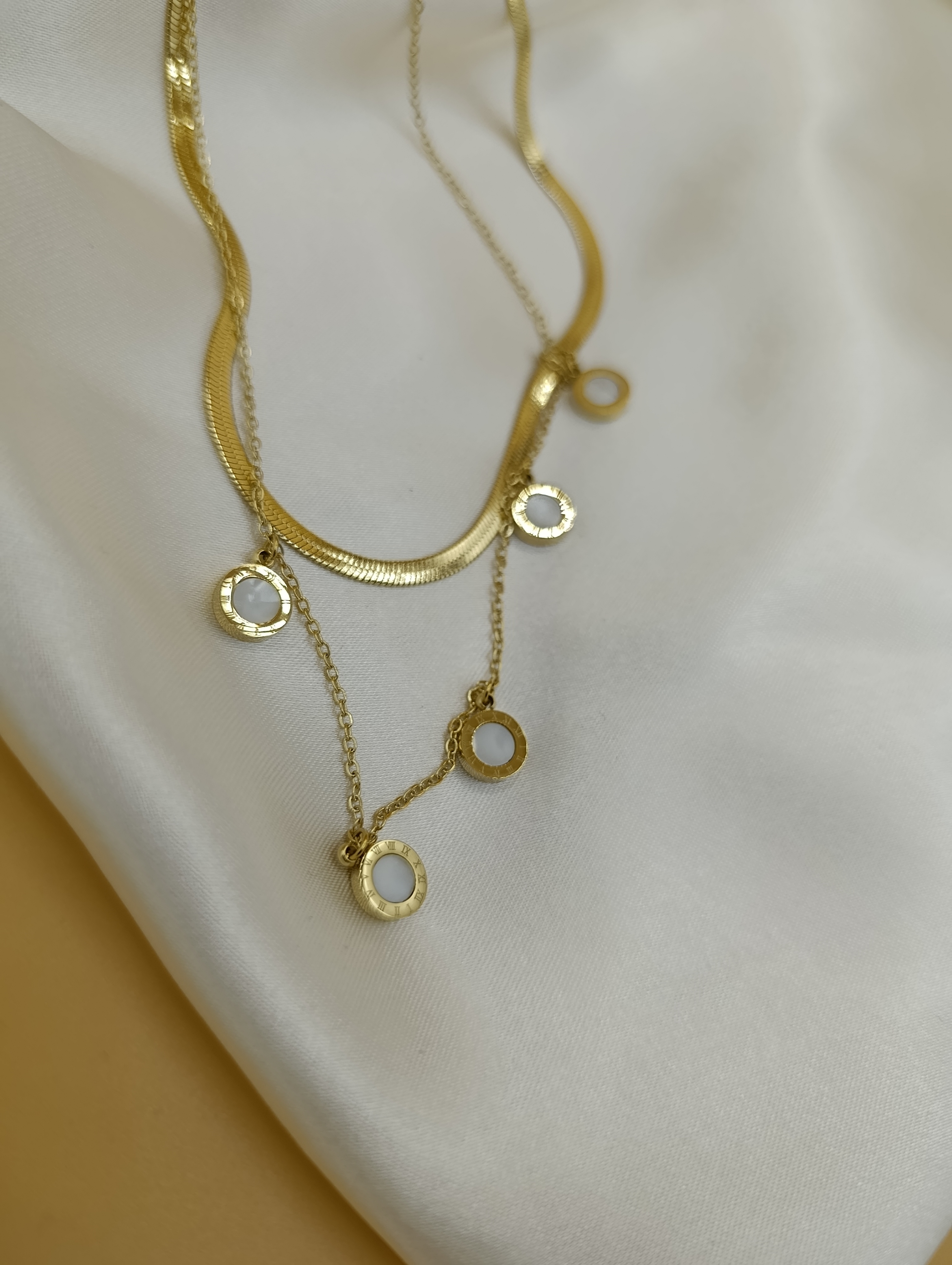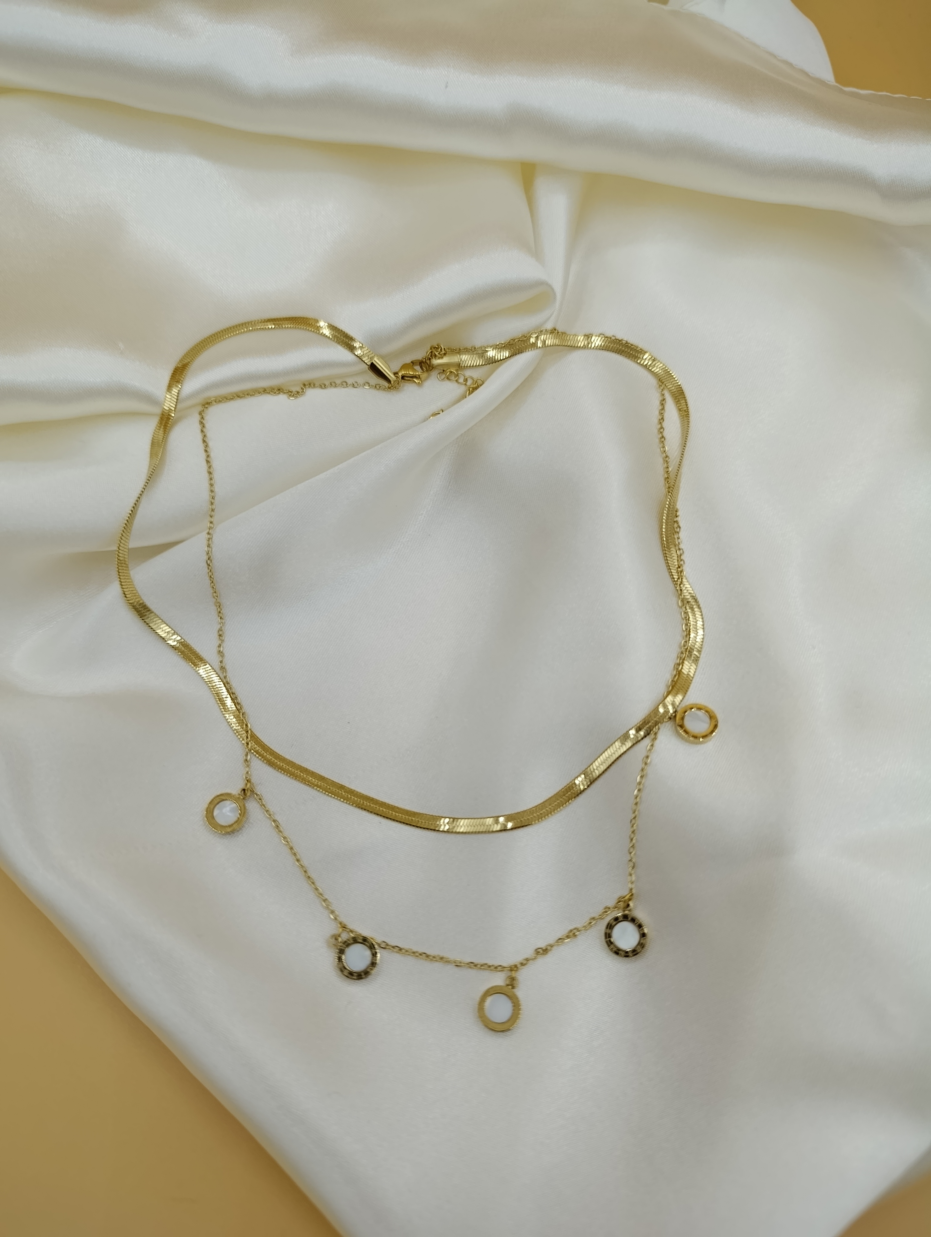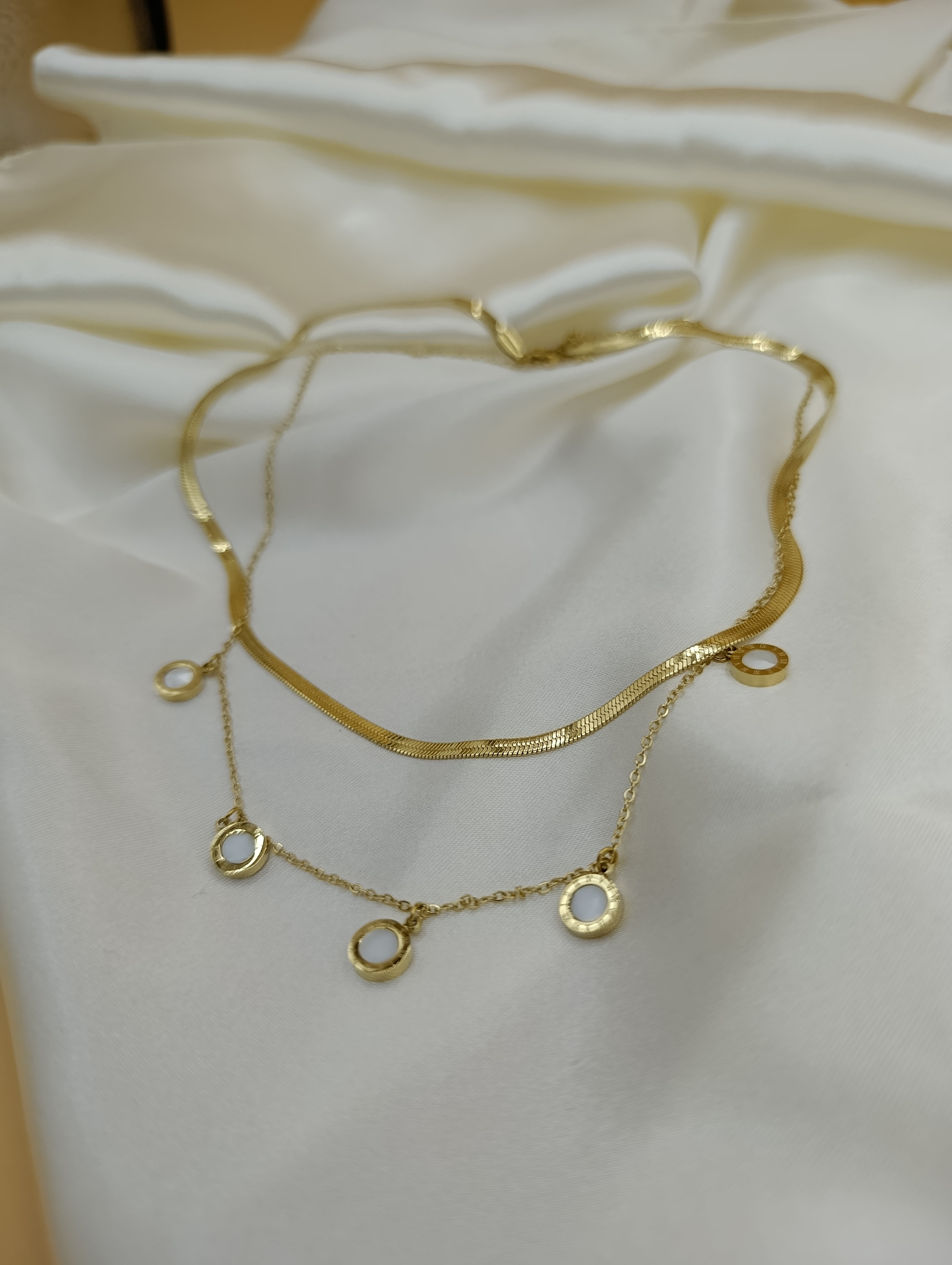 Sedef Taşlı Çoklu Bvlgari Çelik İtalyan Zincir Kolye