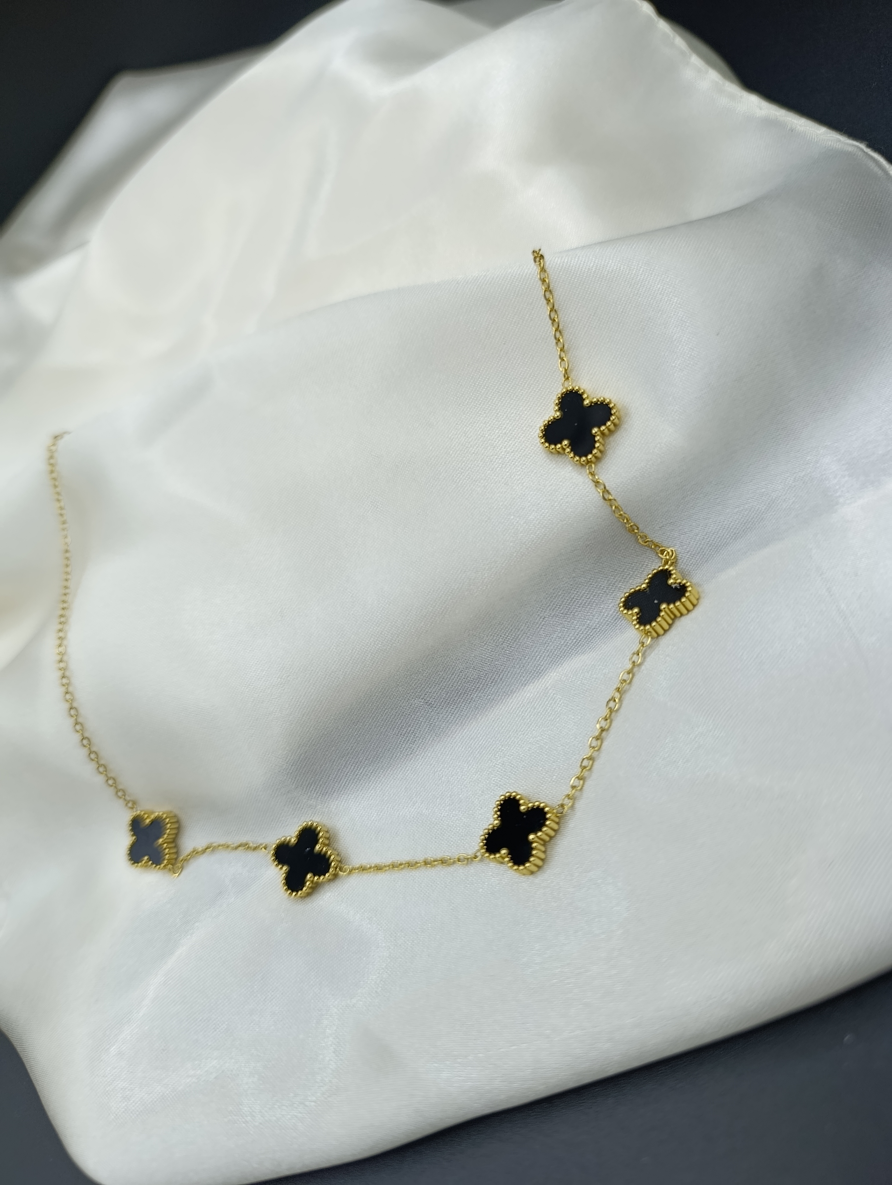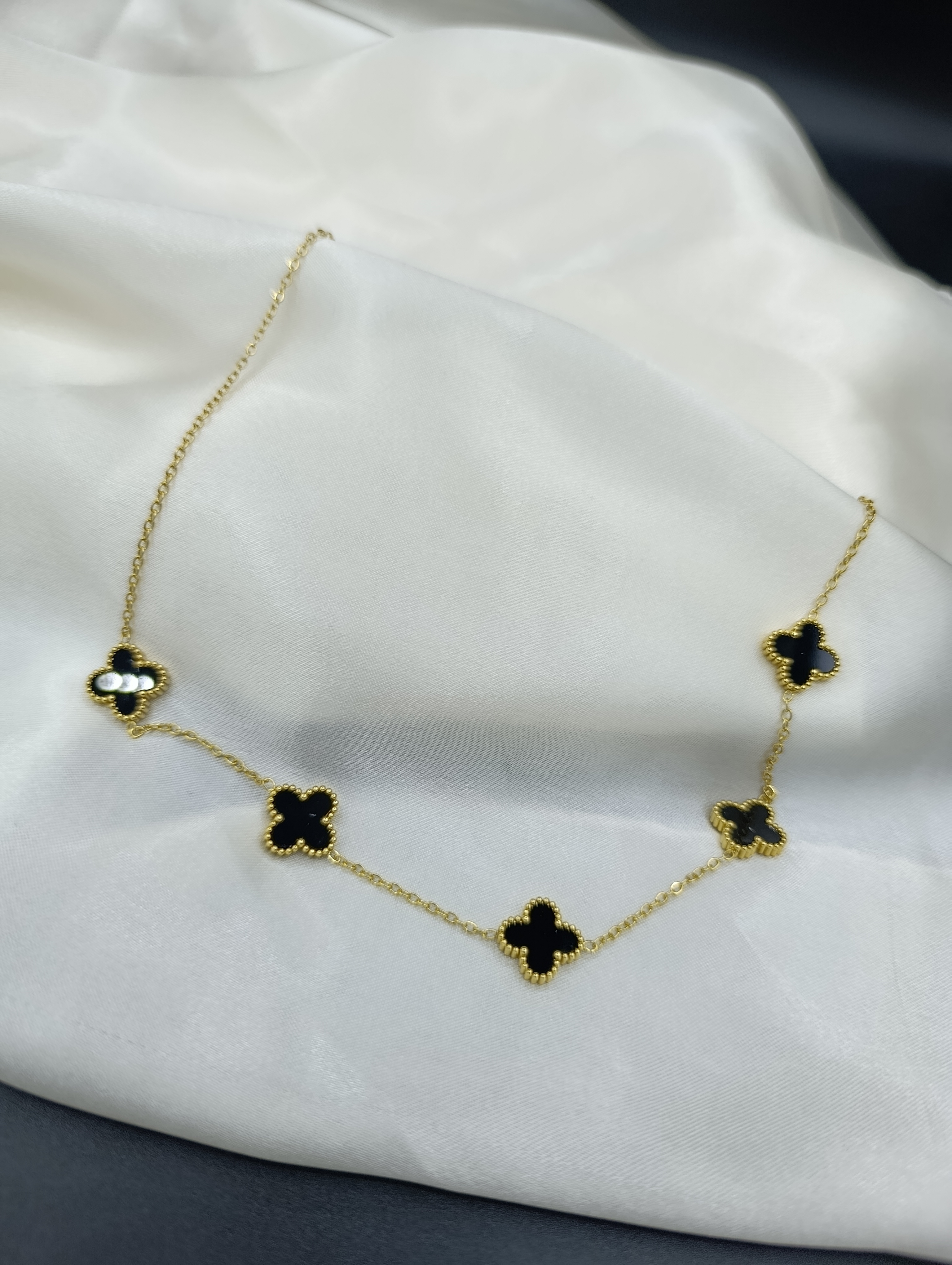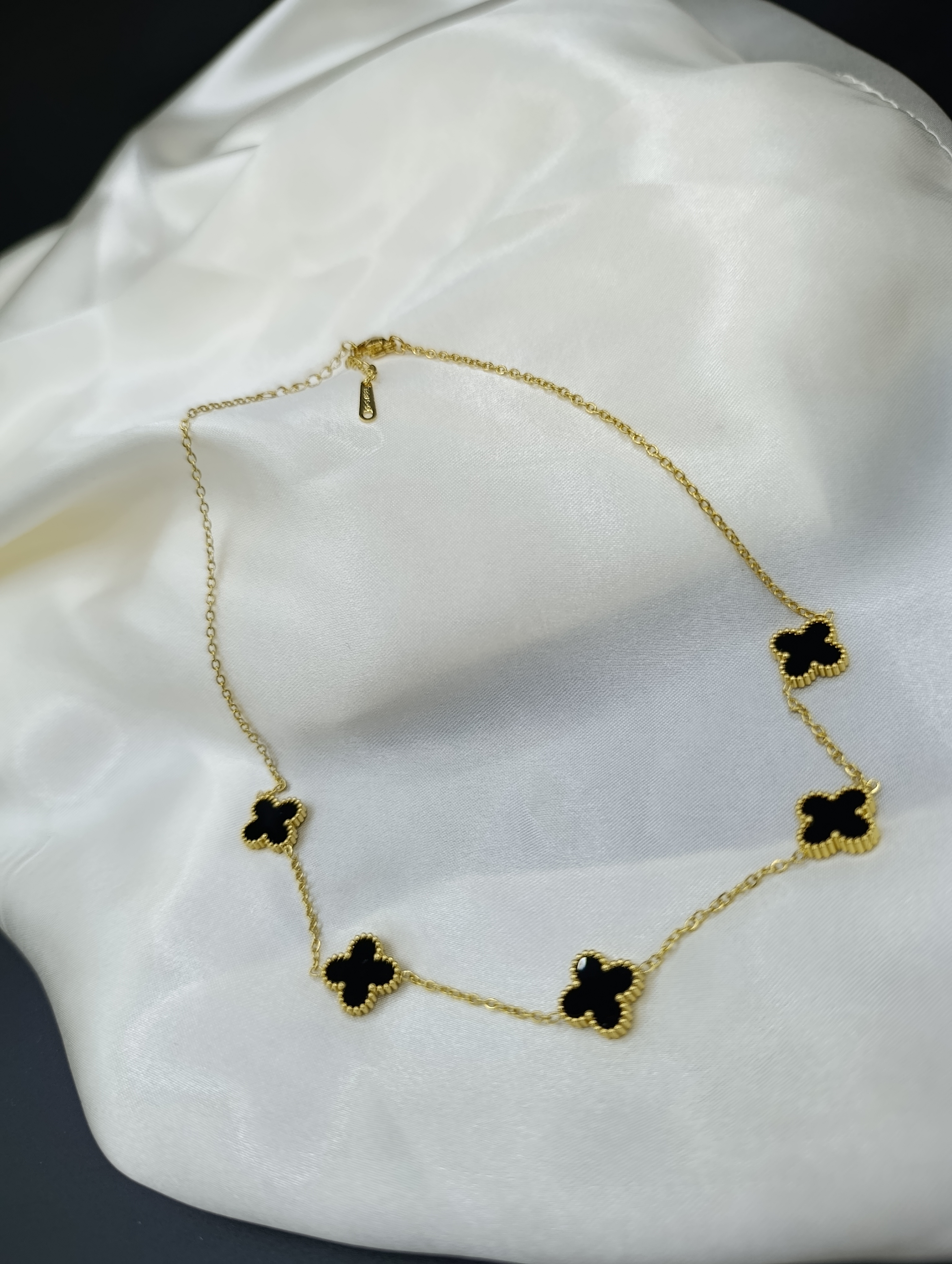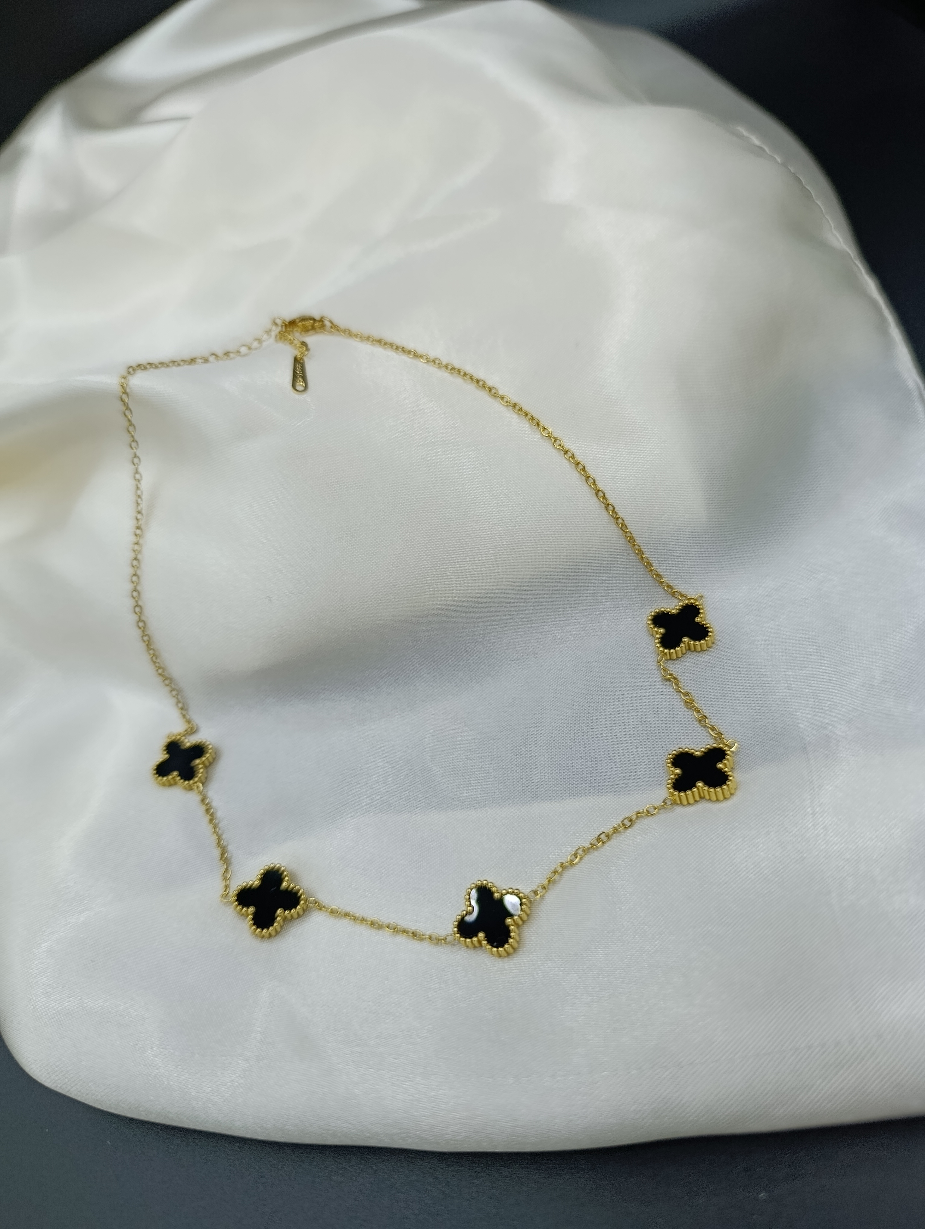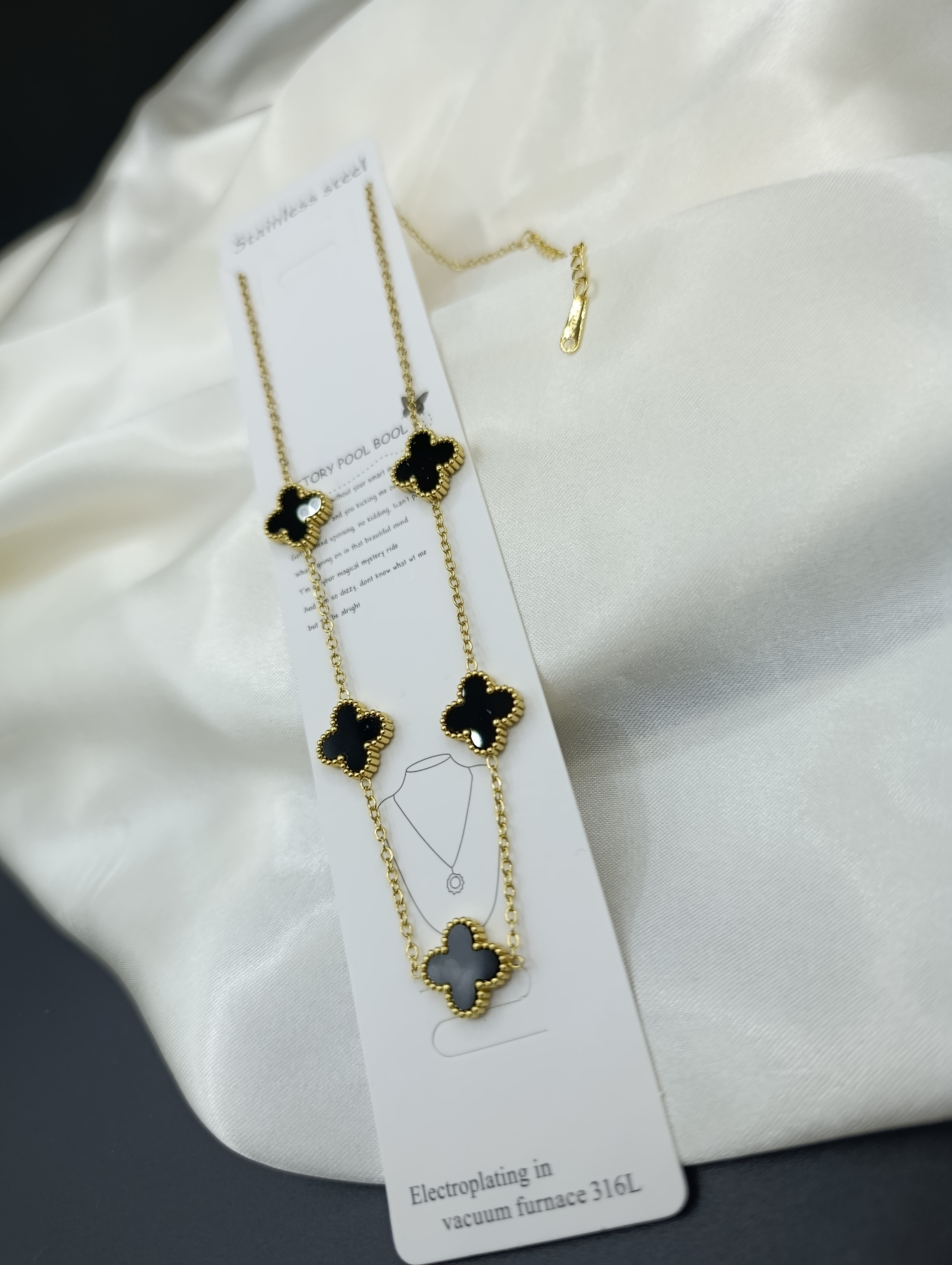Siyah Van Cleef Yonca Model Çelik Kolye -2