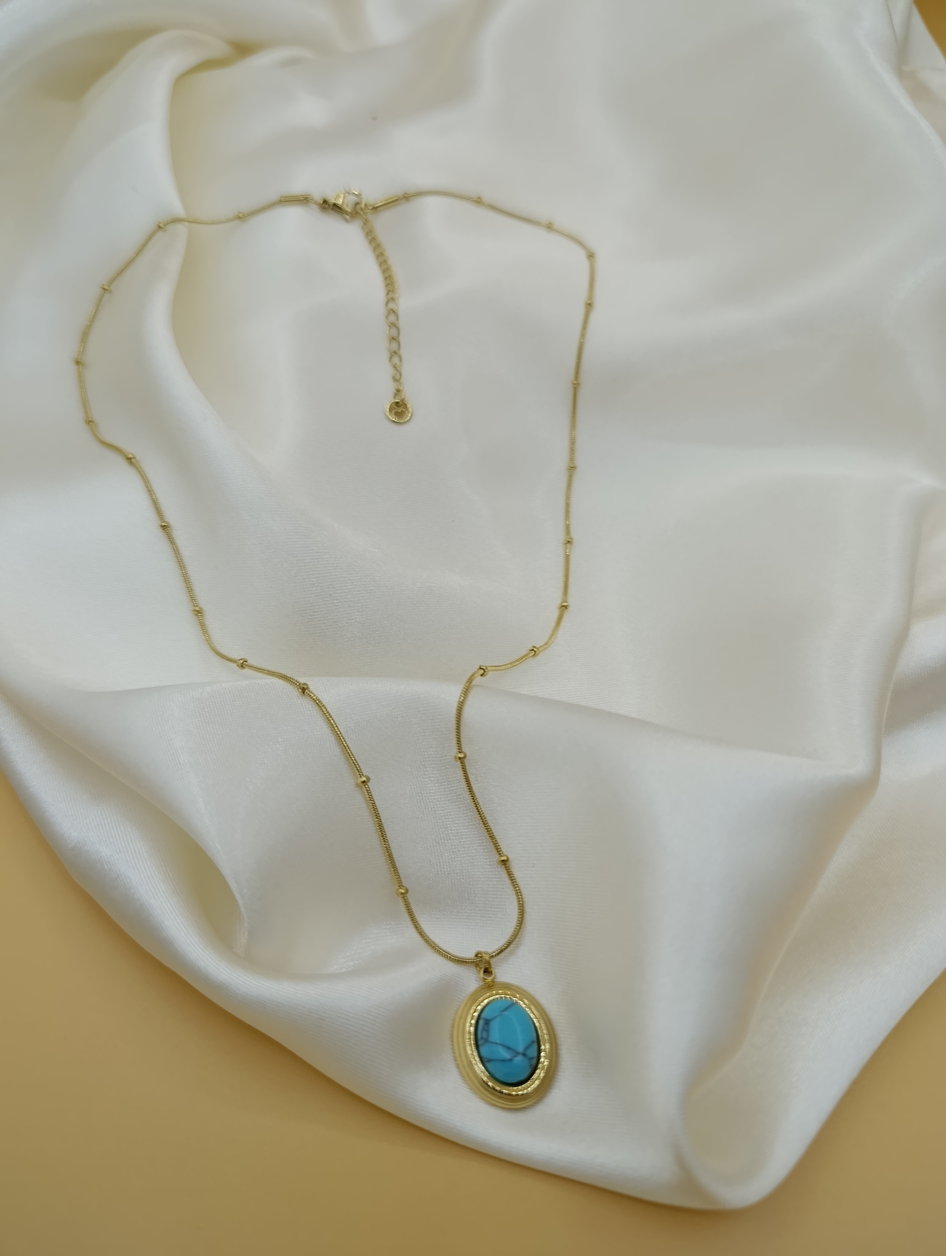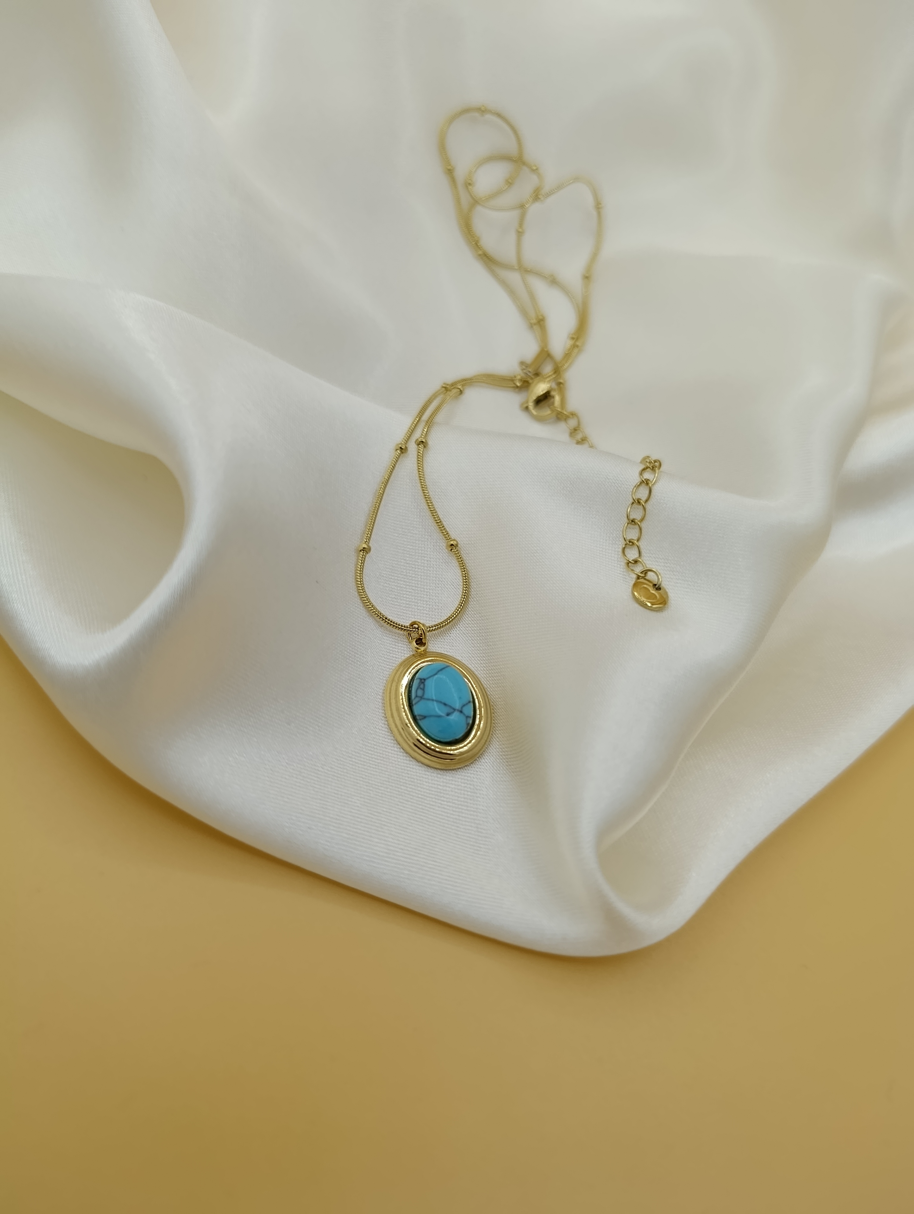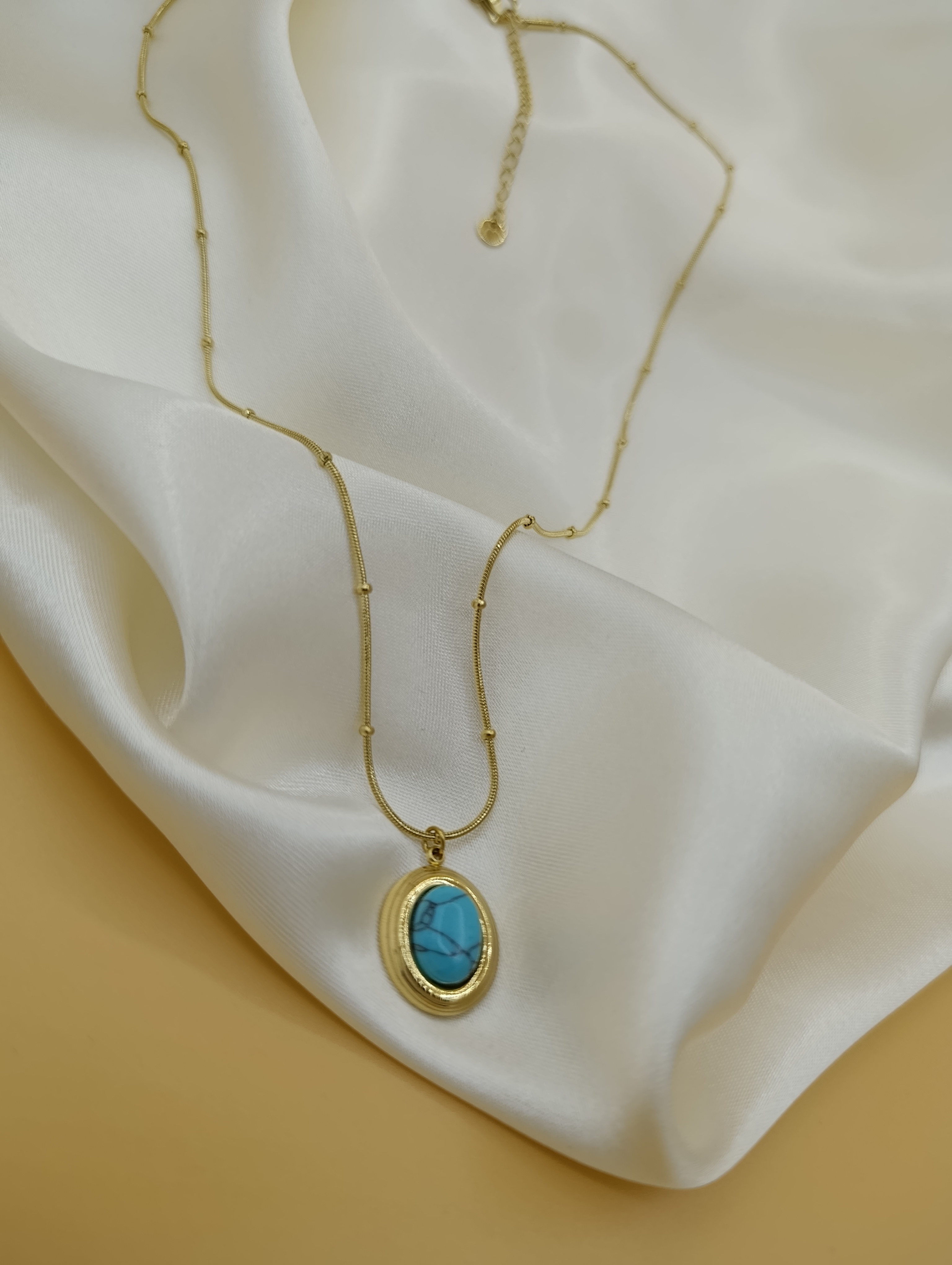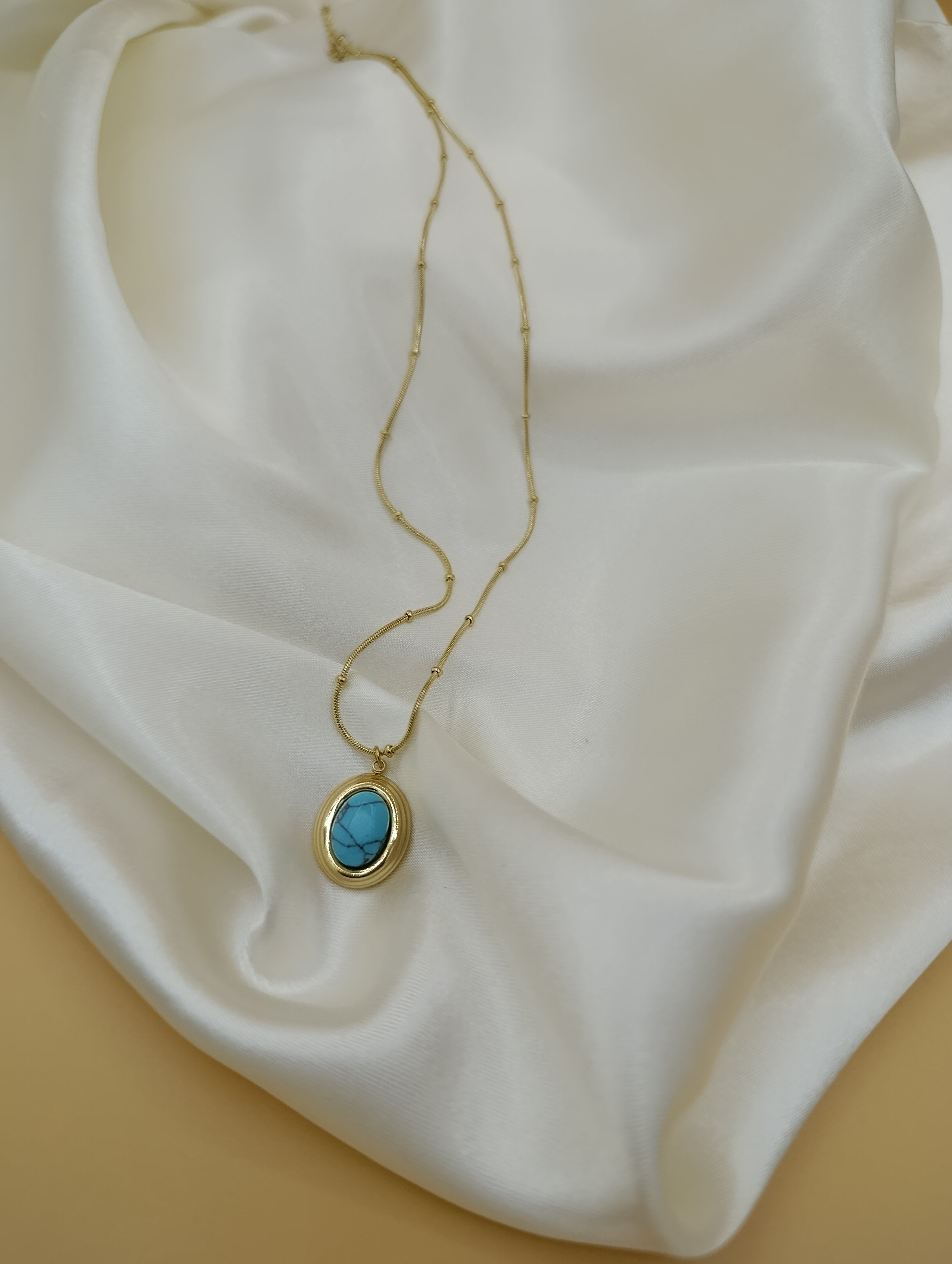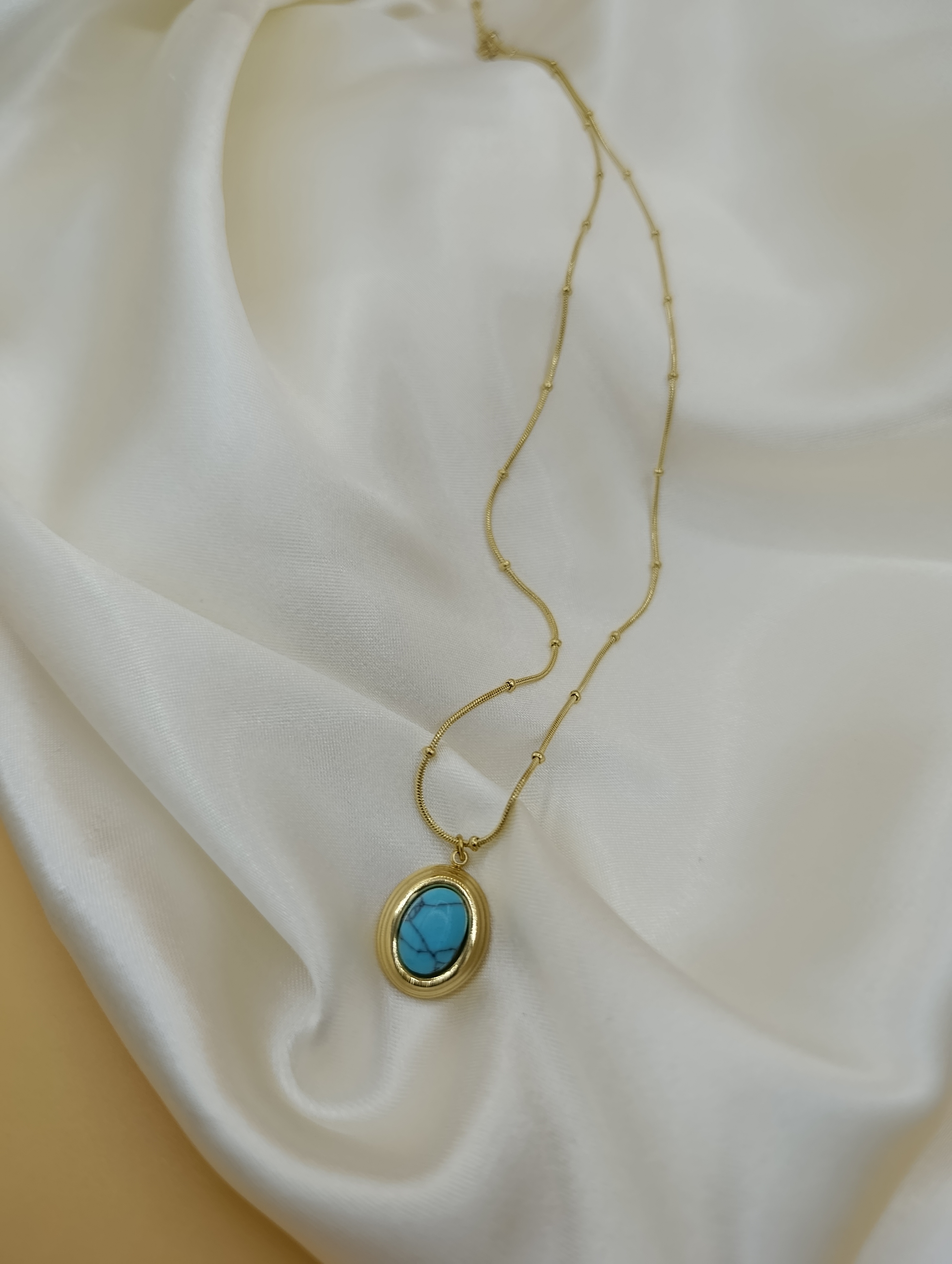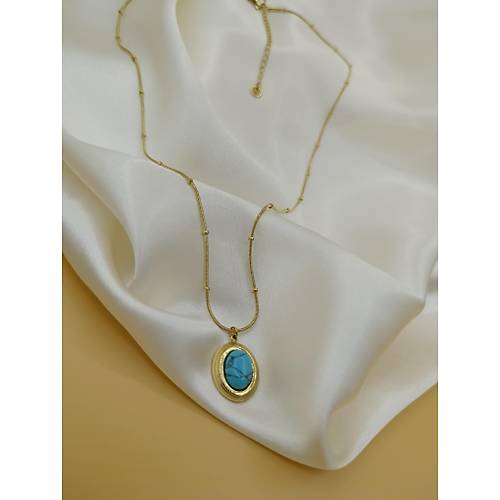 Turkuaz Firuze Taş Çelik Topçuk Zincirli Kolye