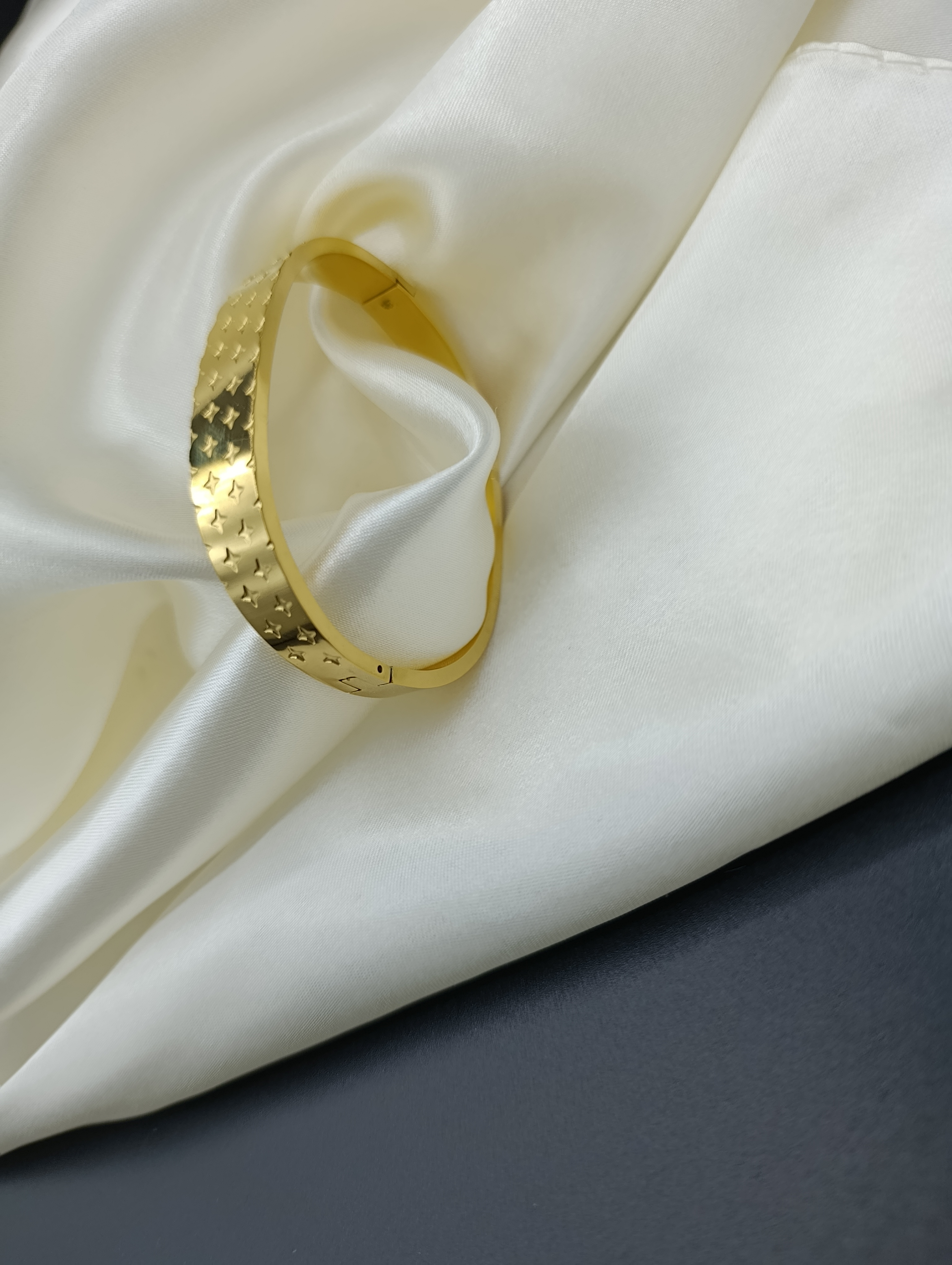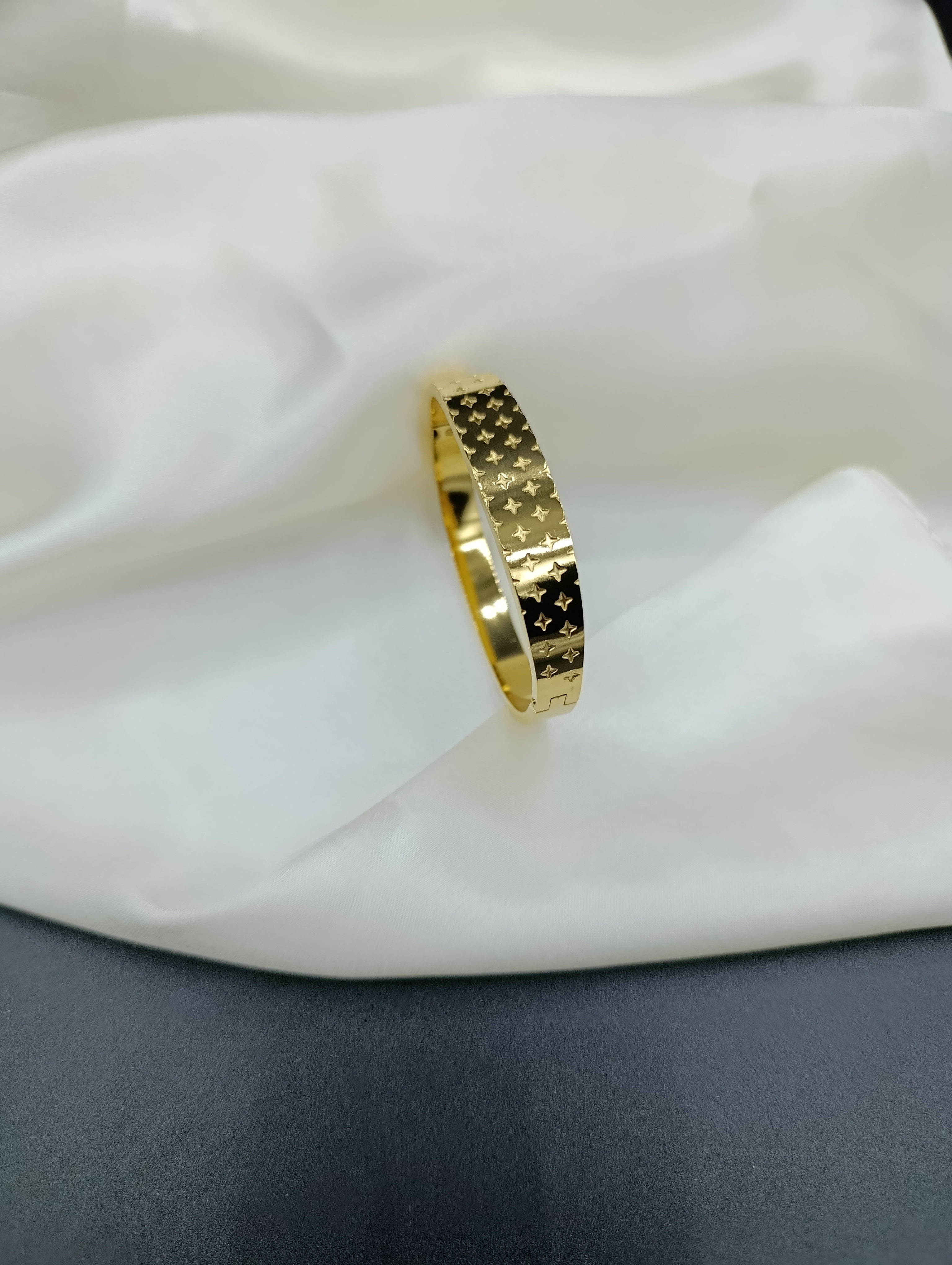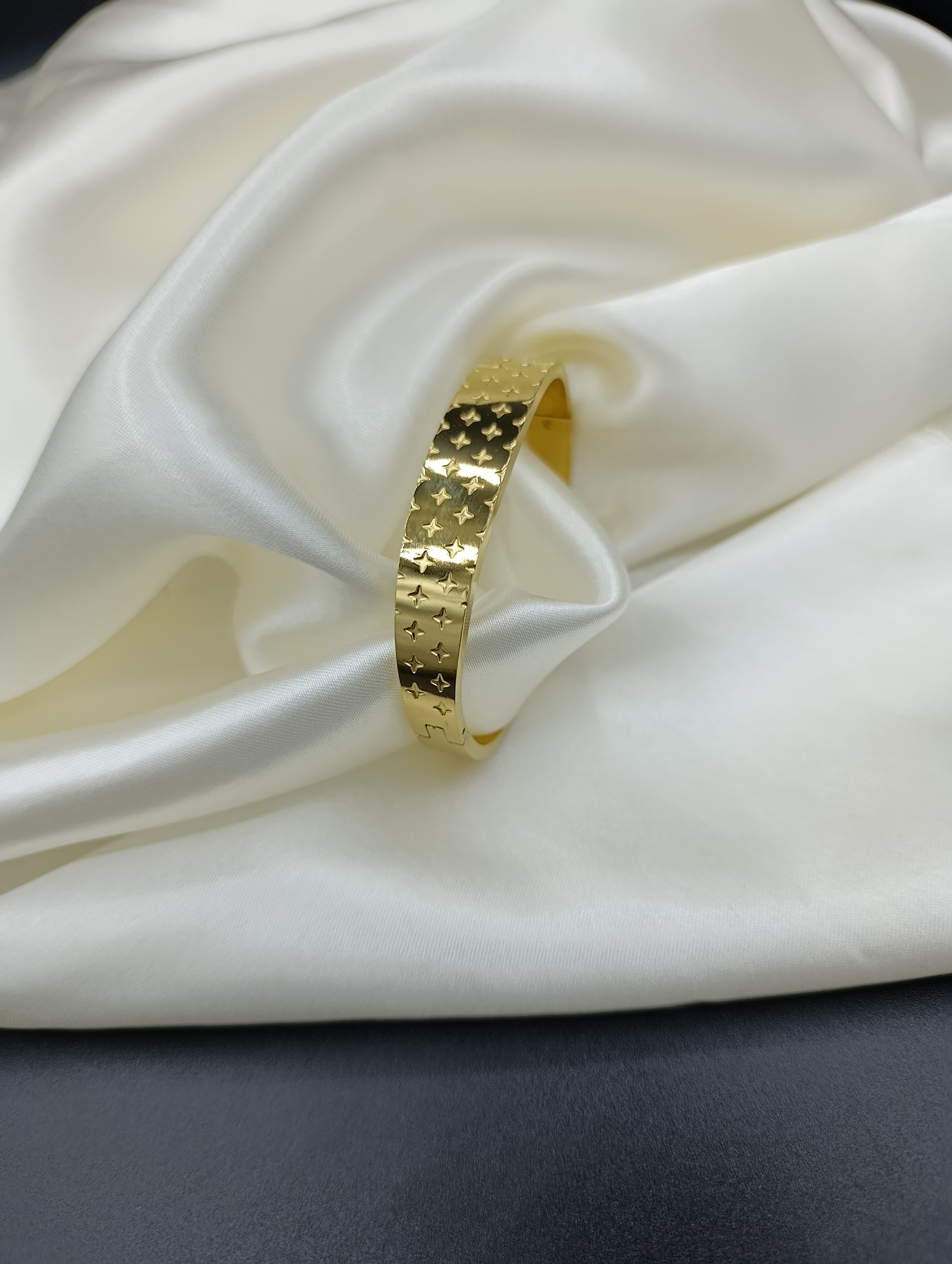 Yonca Desenli Çelik Kelepçe Bileklik-2