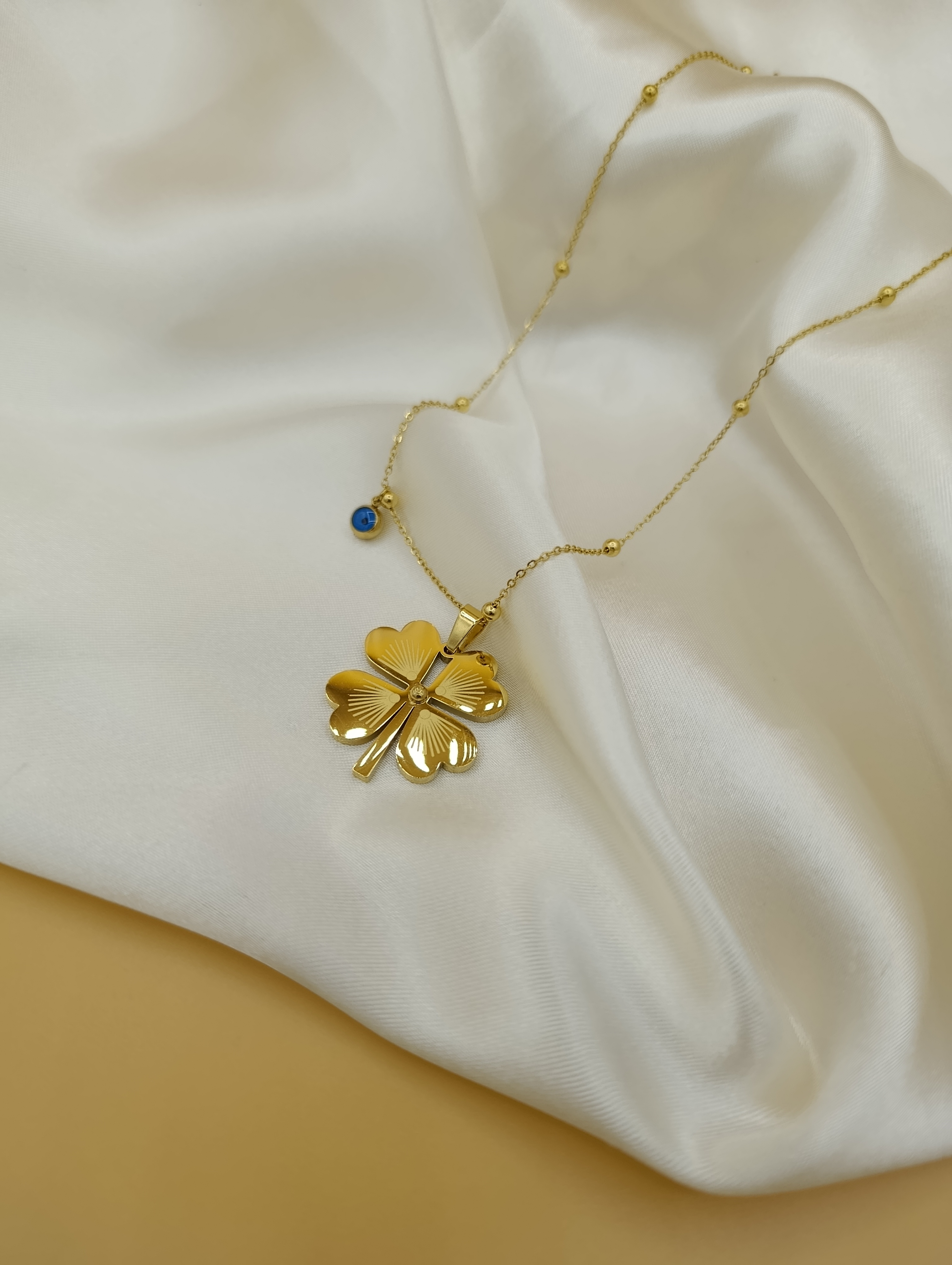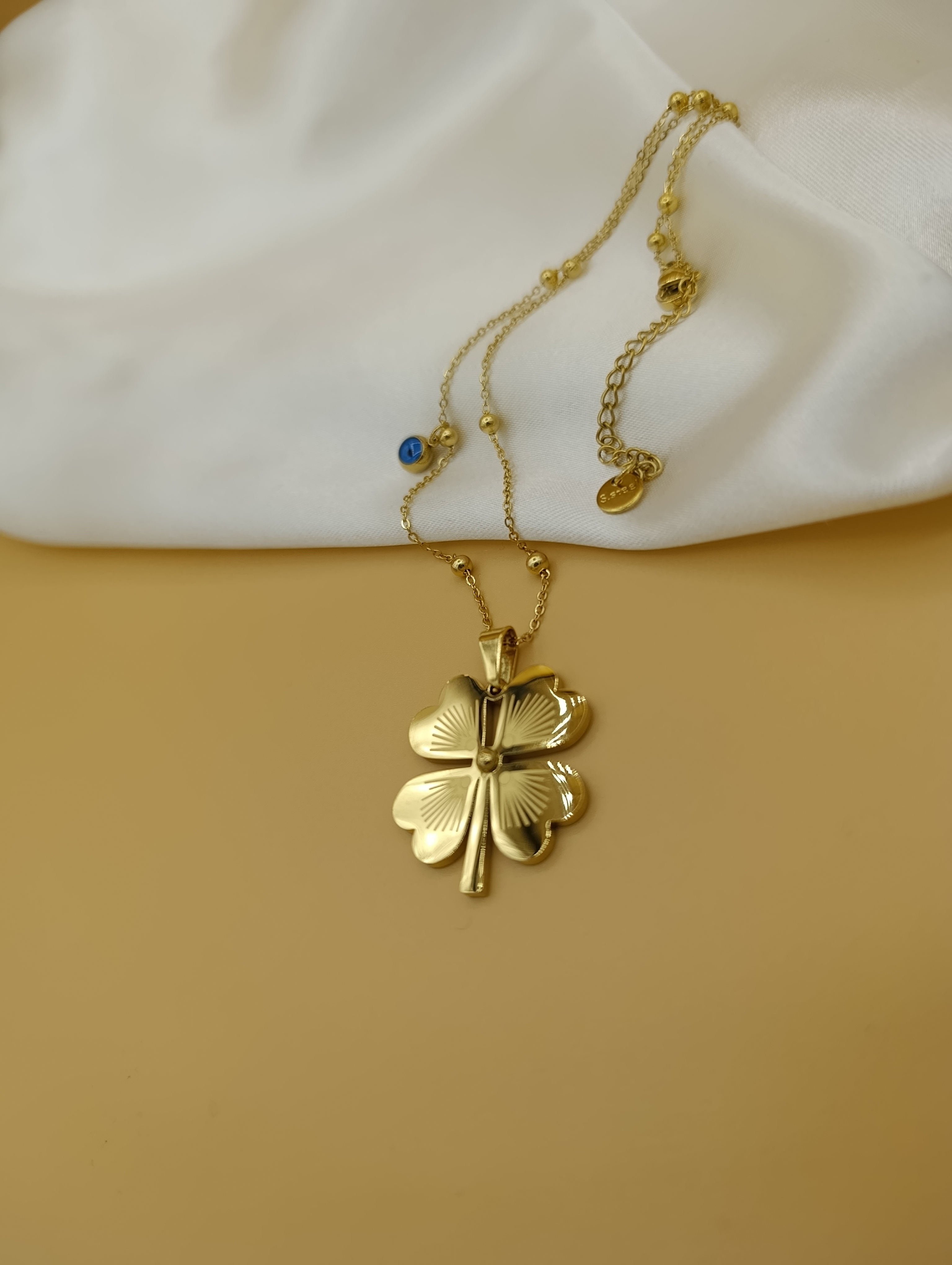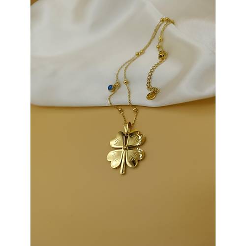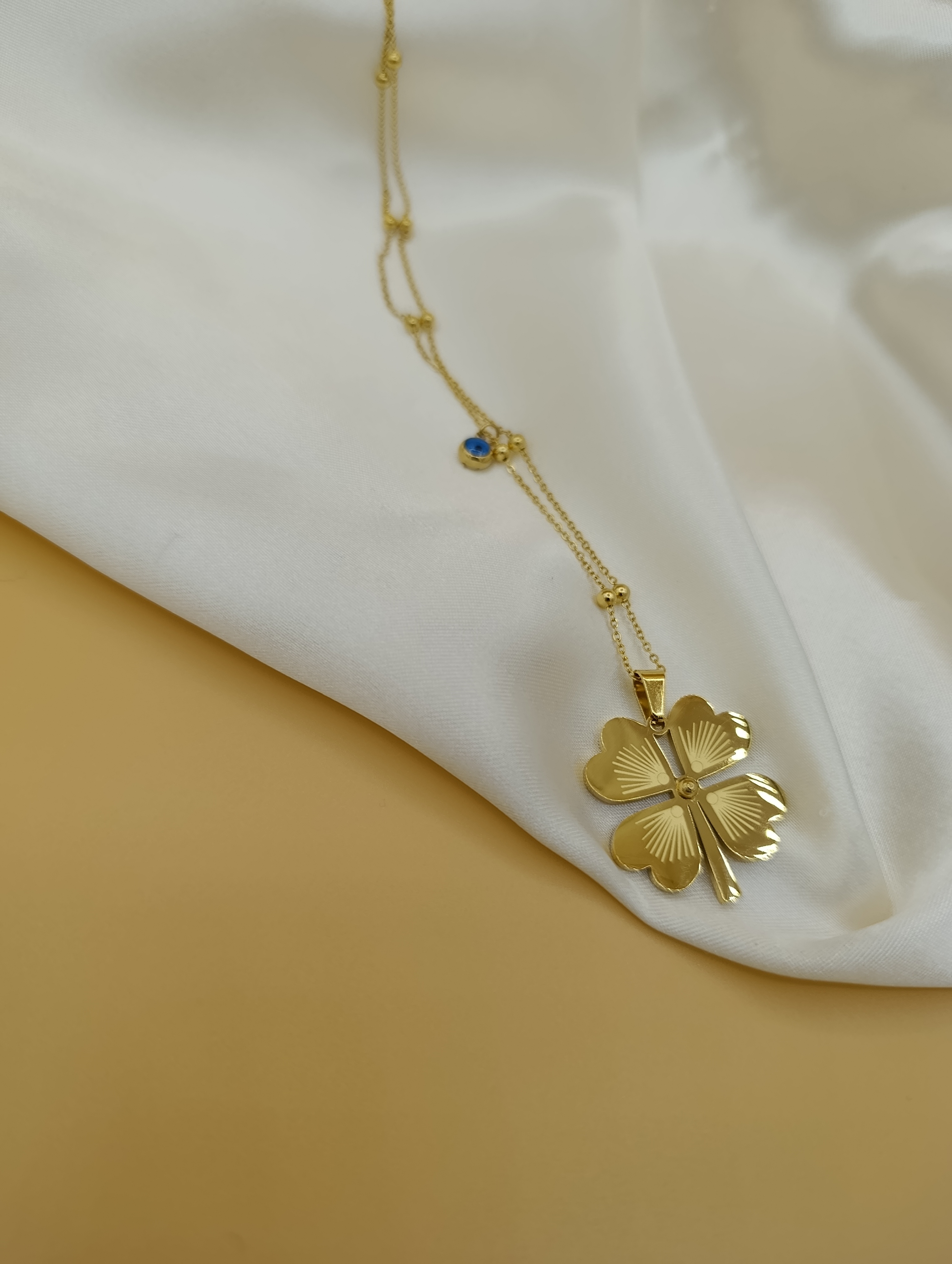 Yonca Firgürlü Mavi Boncuklu Çelik Dorika Zincir Kolye