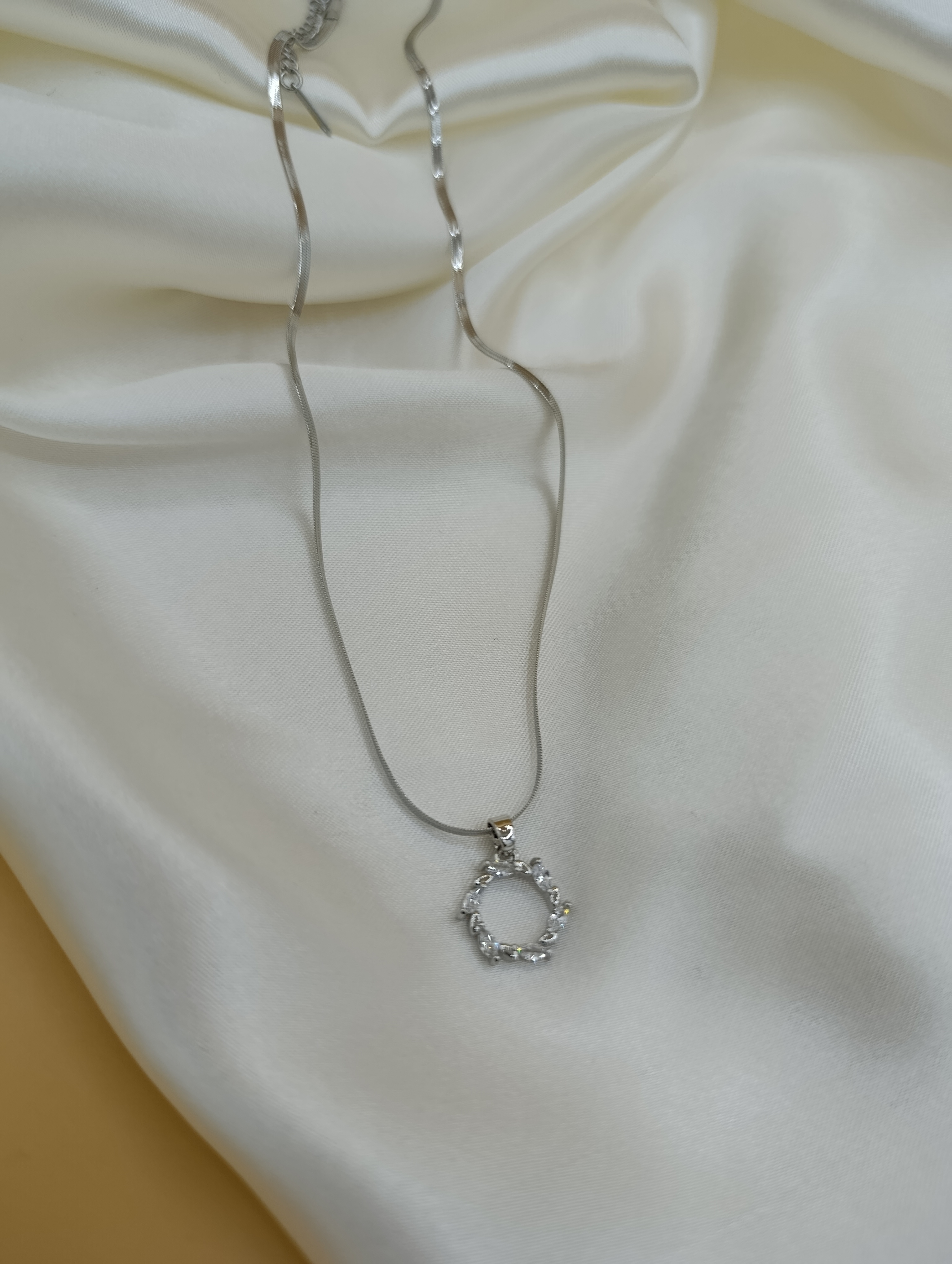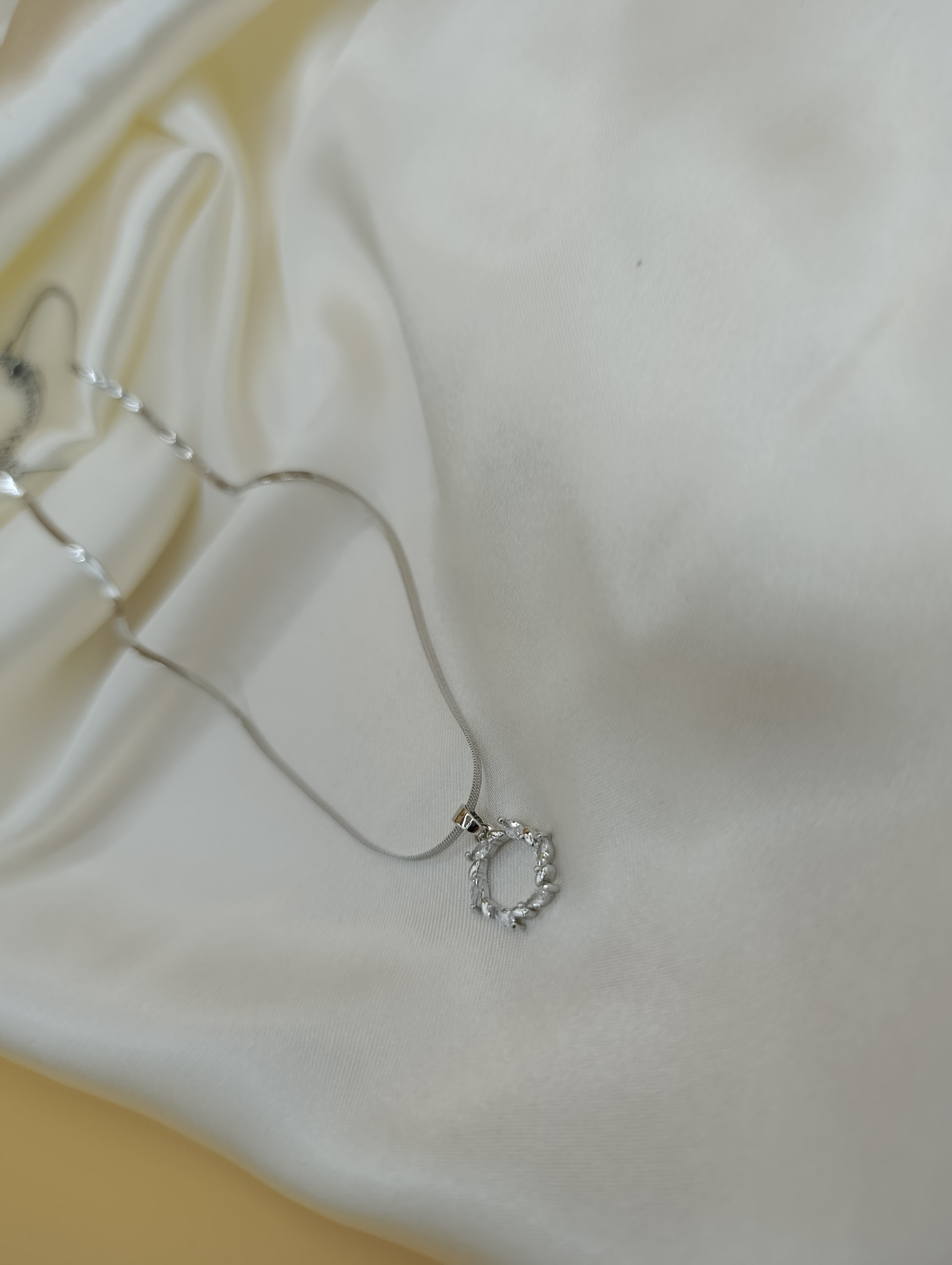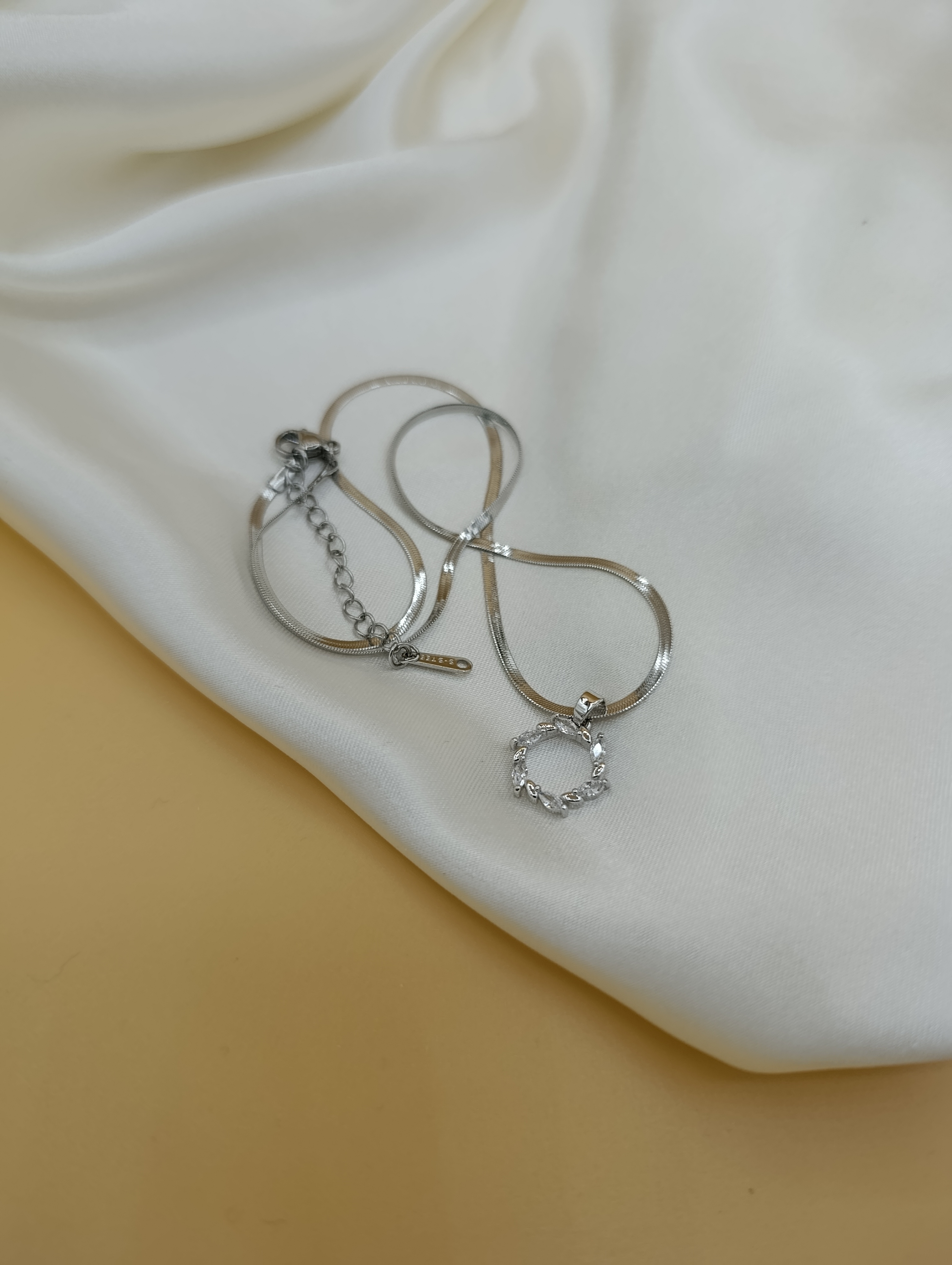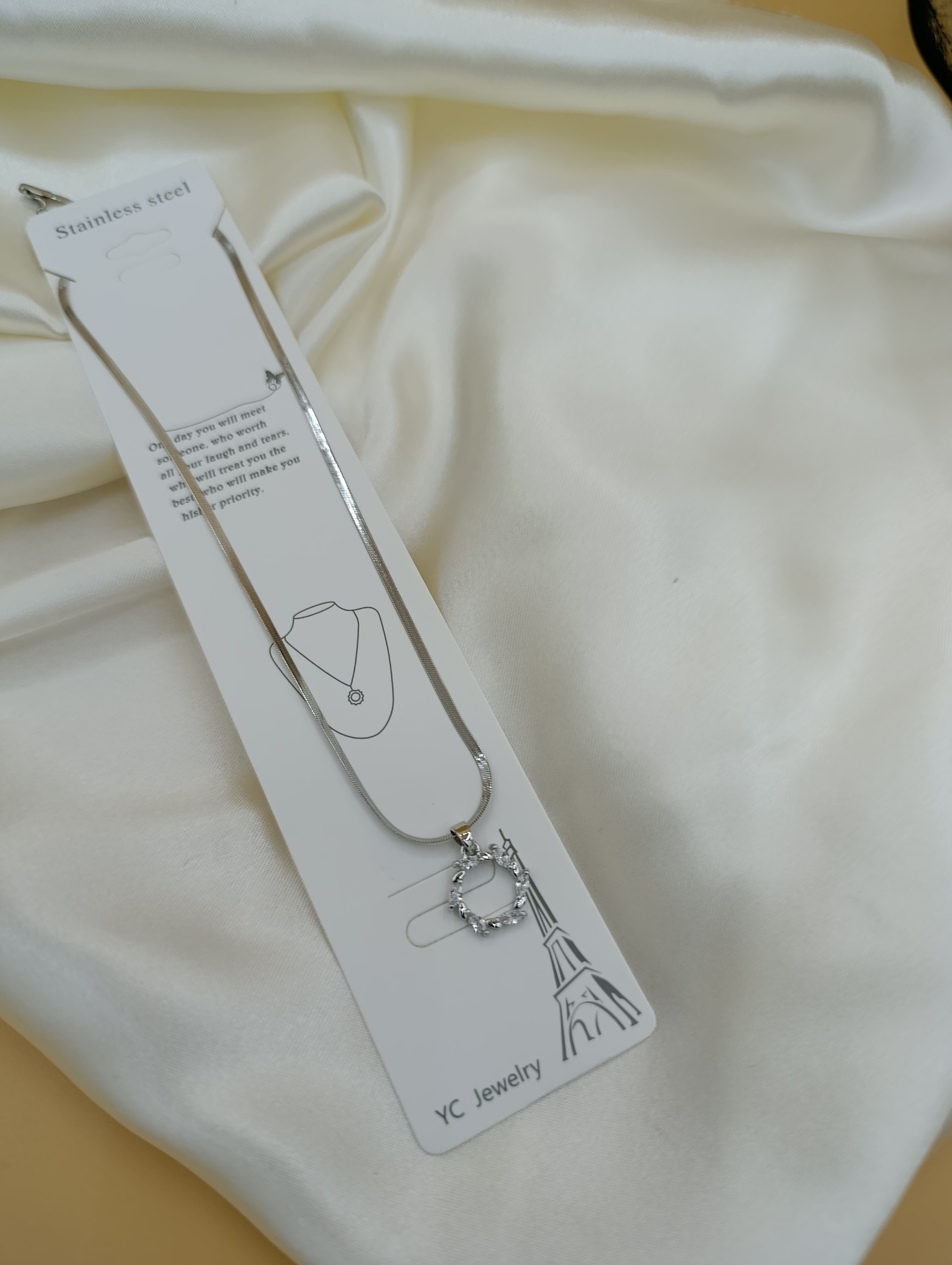 Zirkon Baget Taşlı Çember Figürlü Çelik İtalyan Zincir Kolye