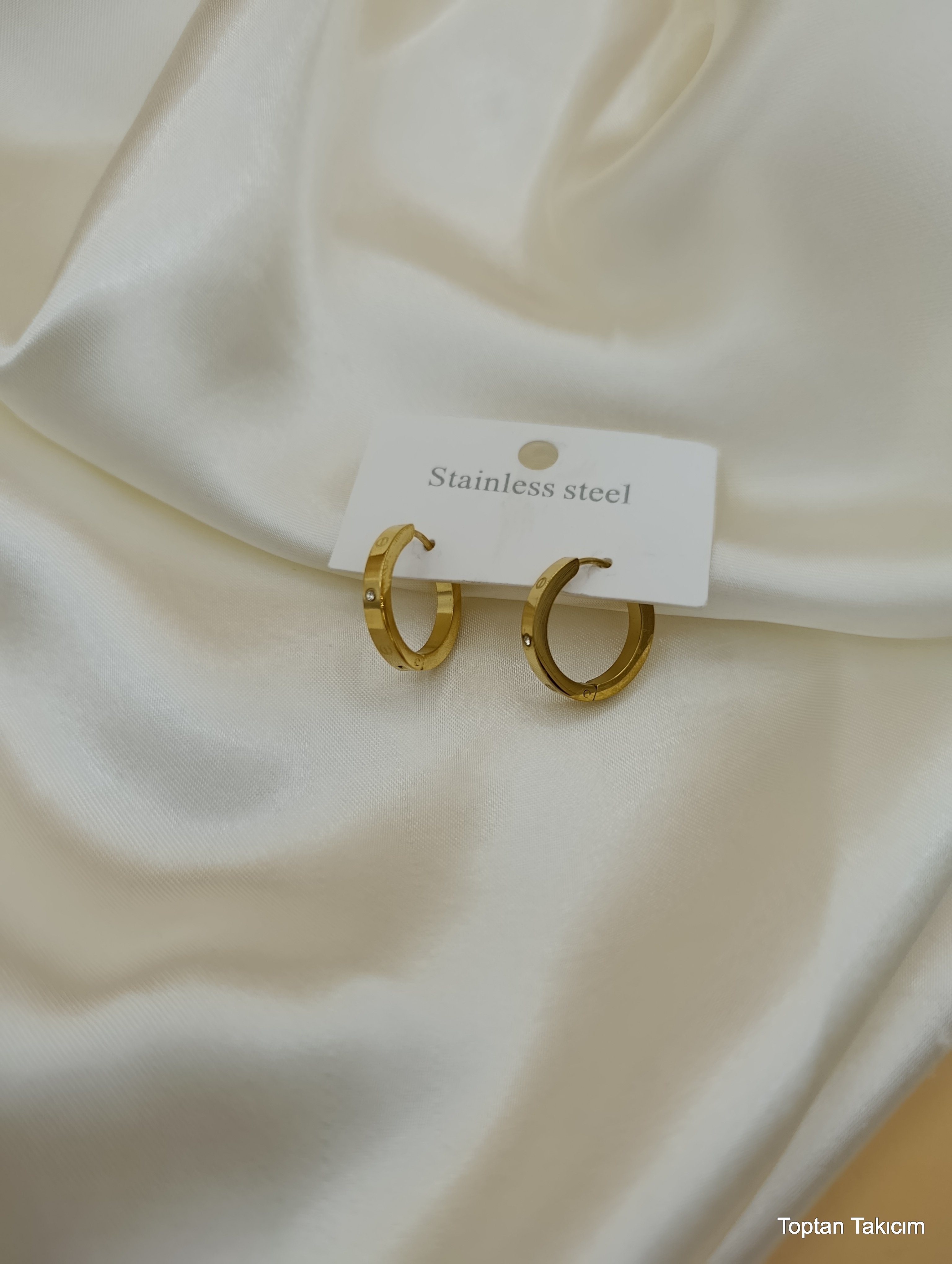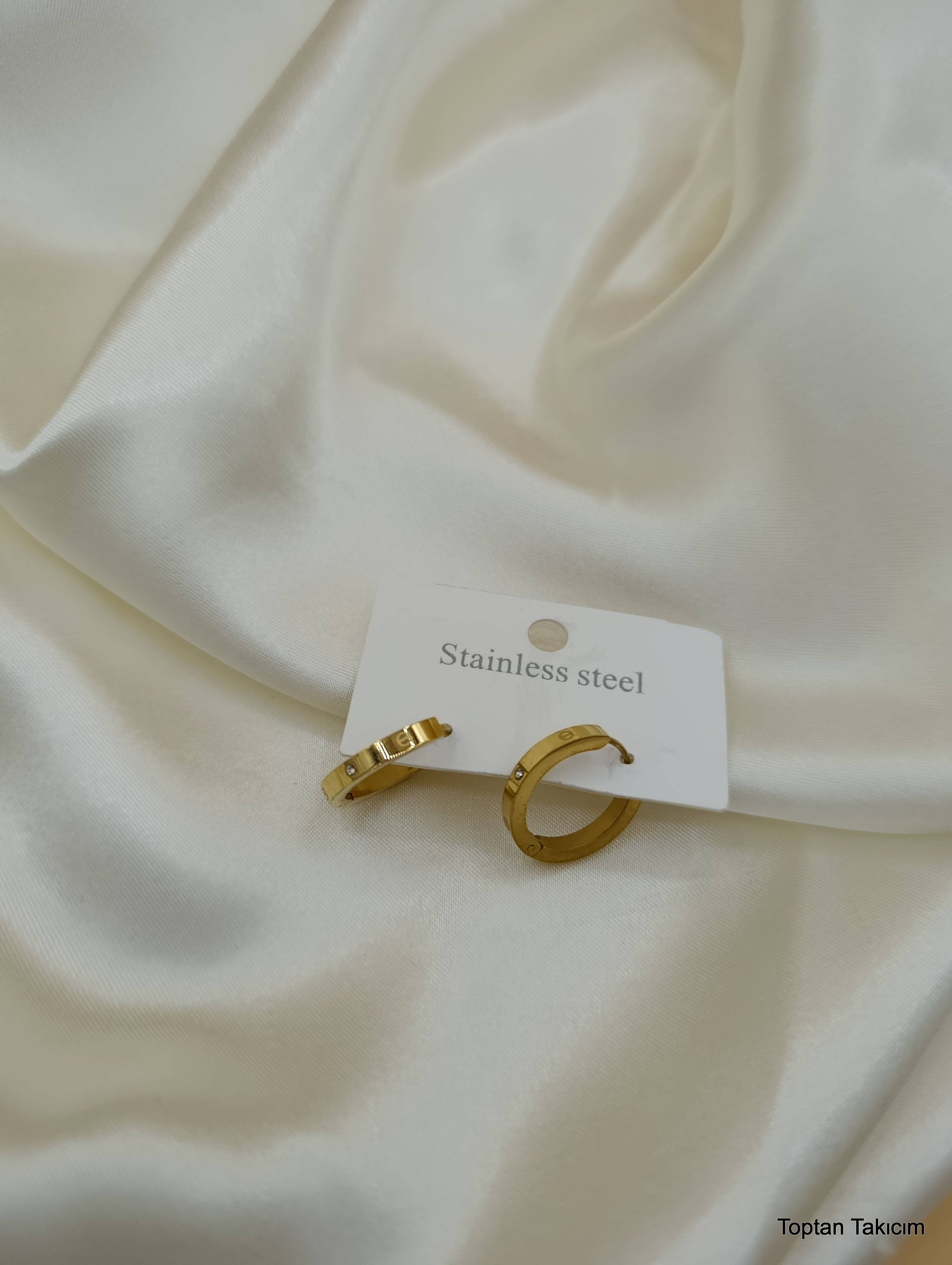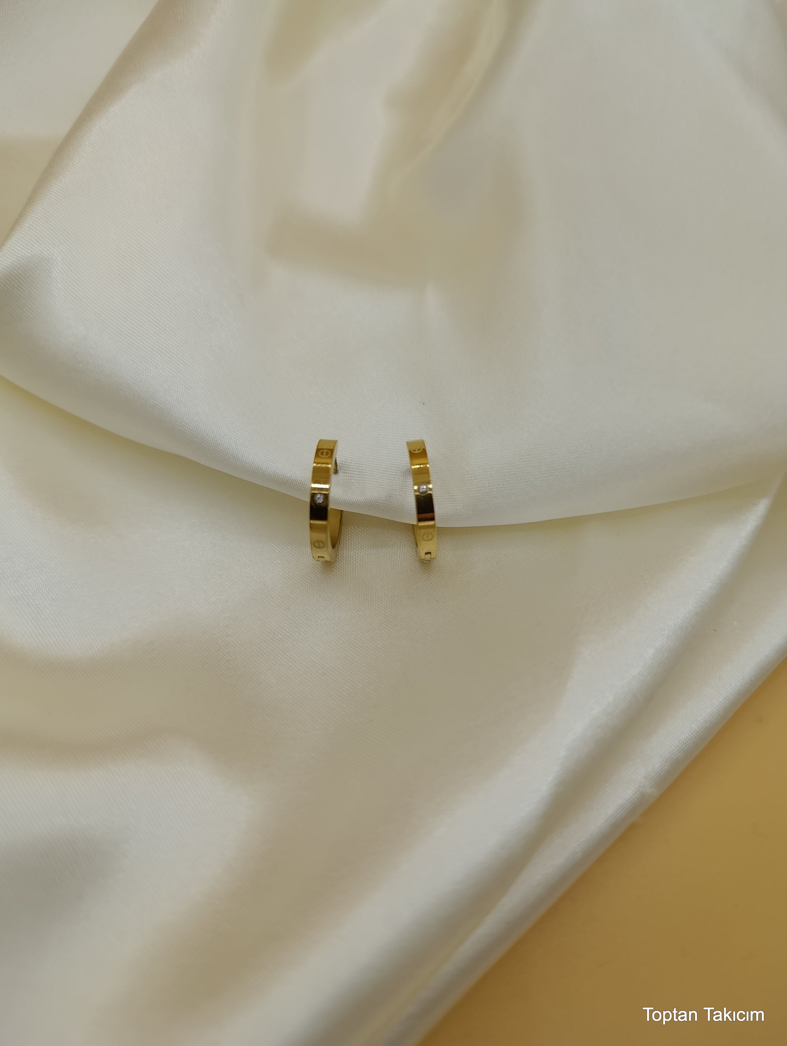 Zirkon Taşlı Çelik Cartier Halka Küpe-2
