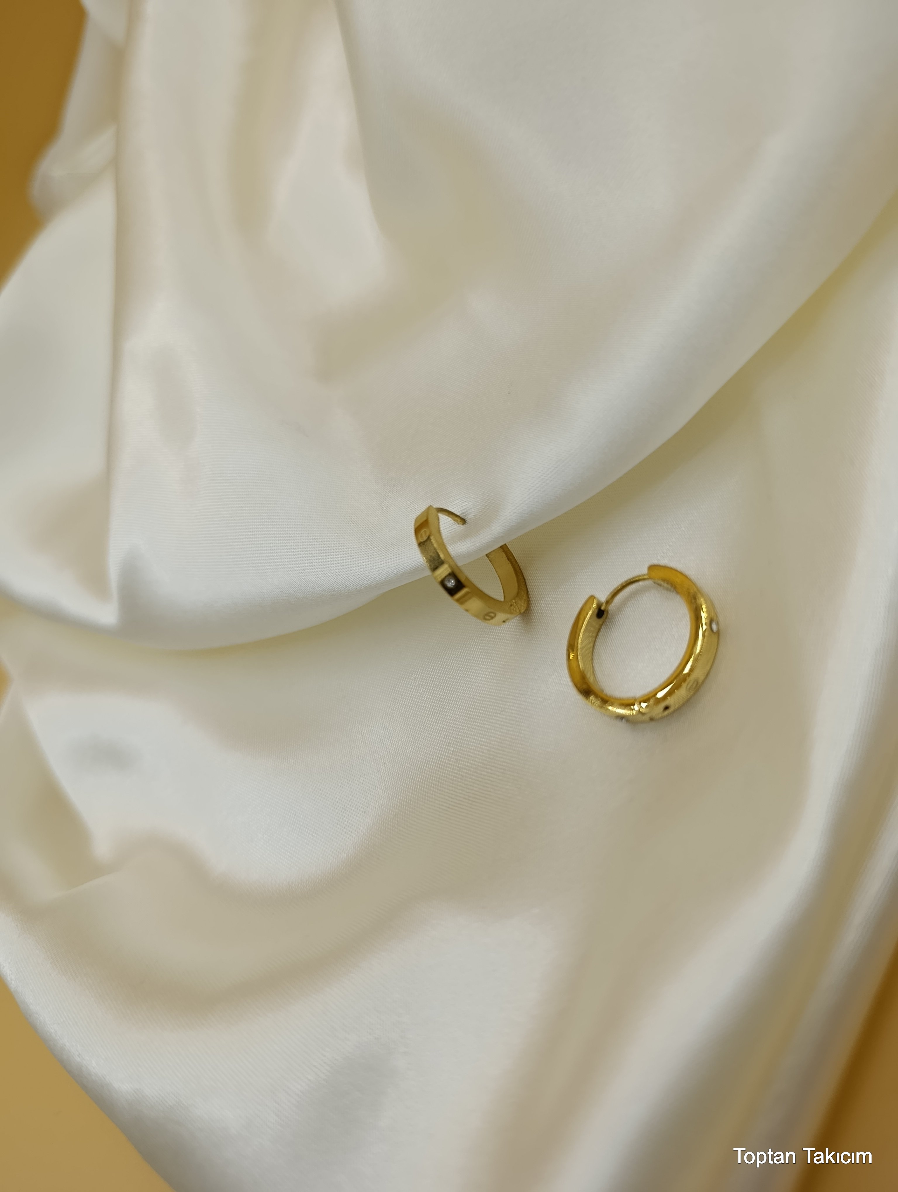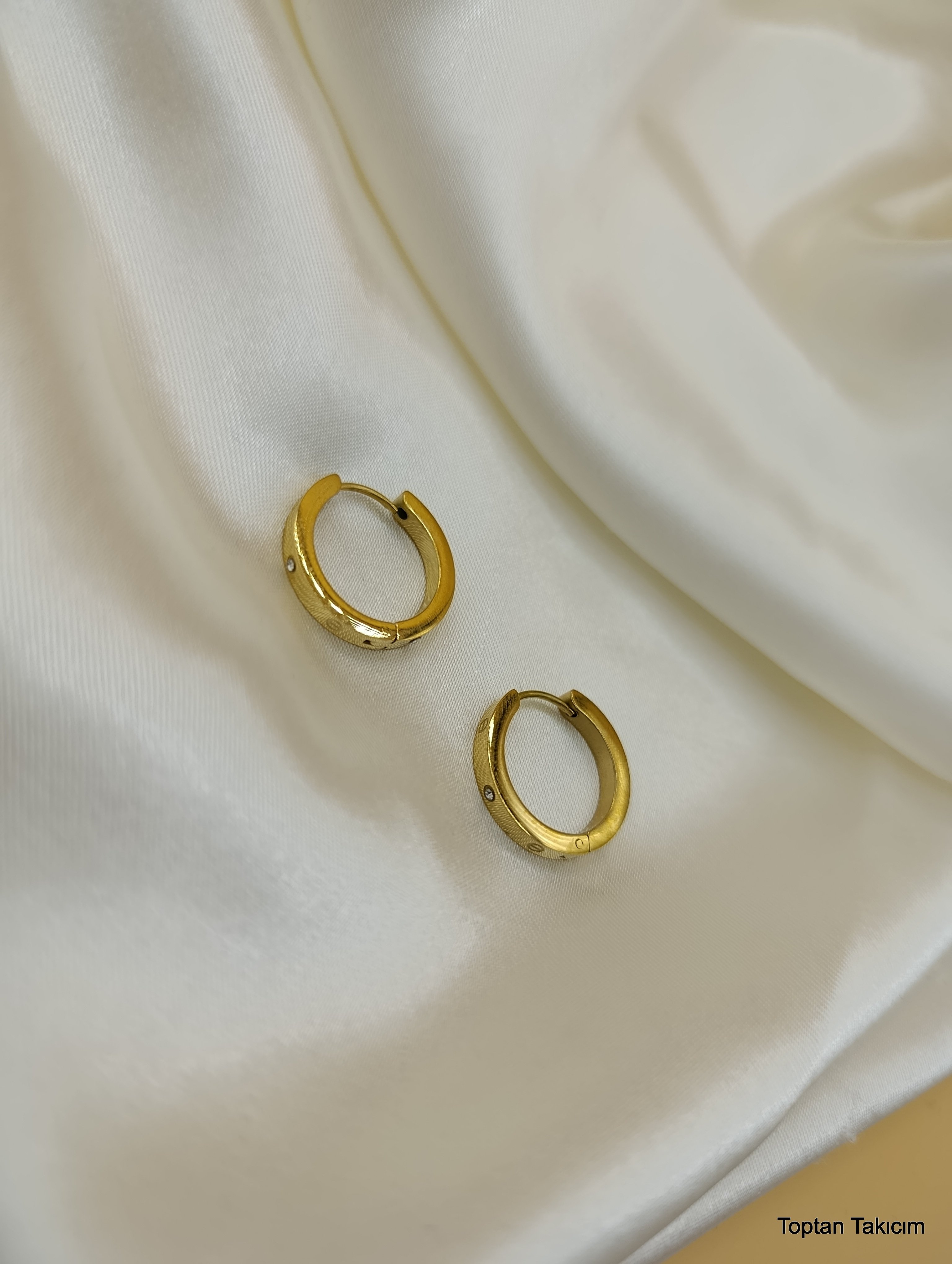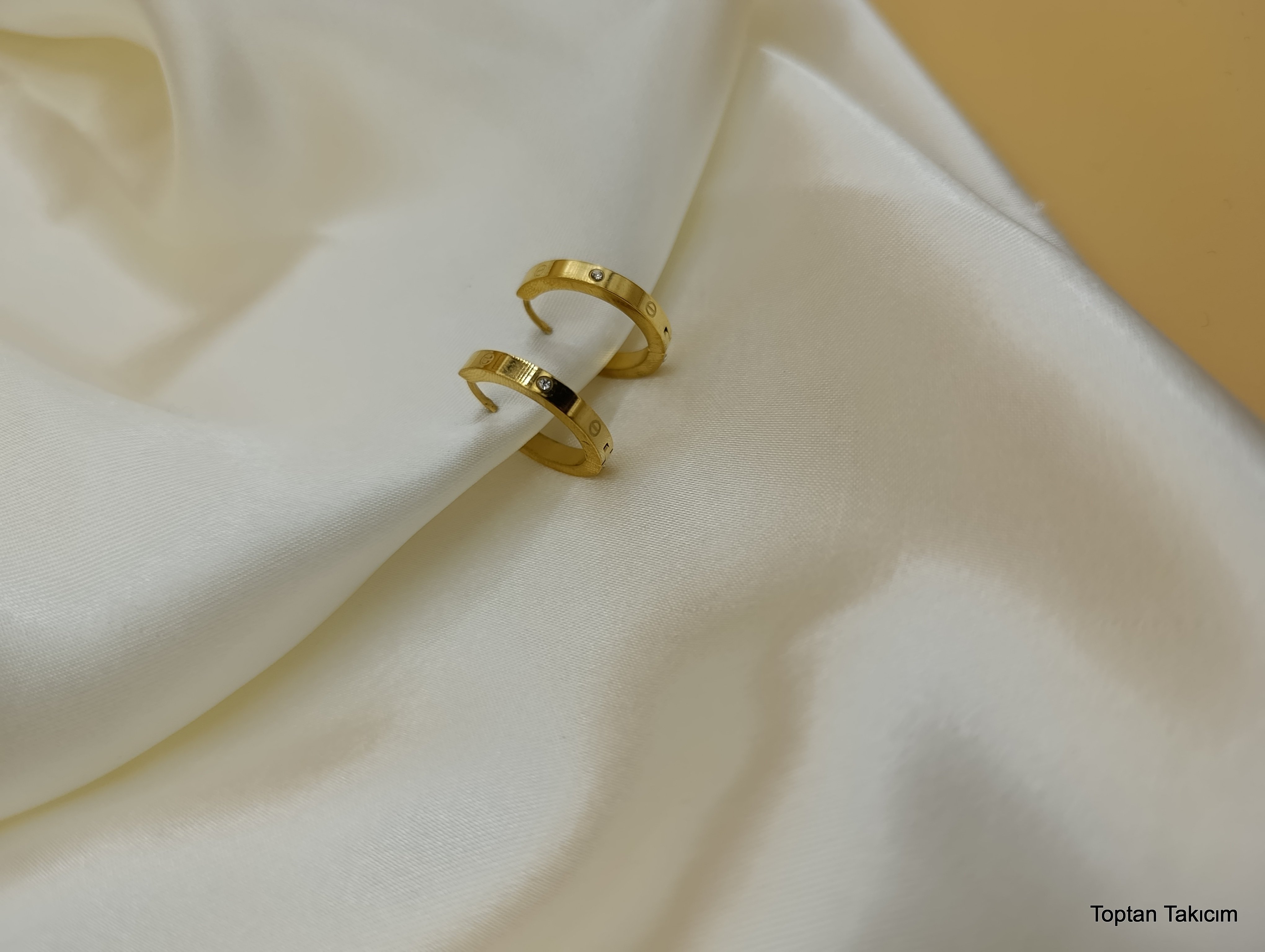 Zirkon Taşlı Çelik Cartier Halka Küpe-2