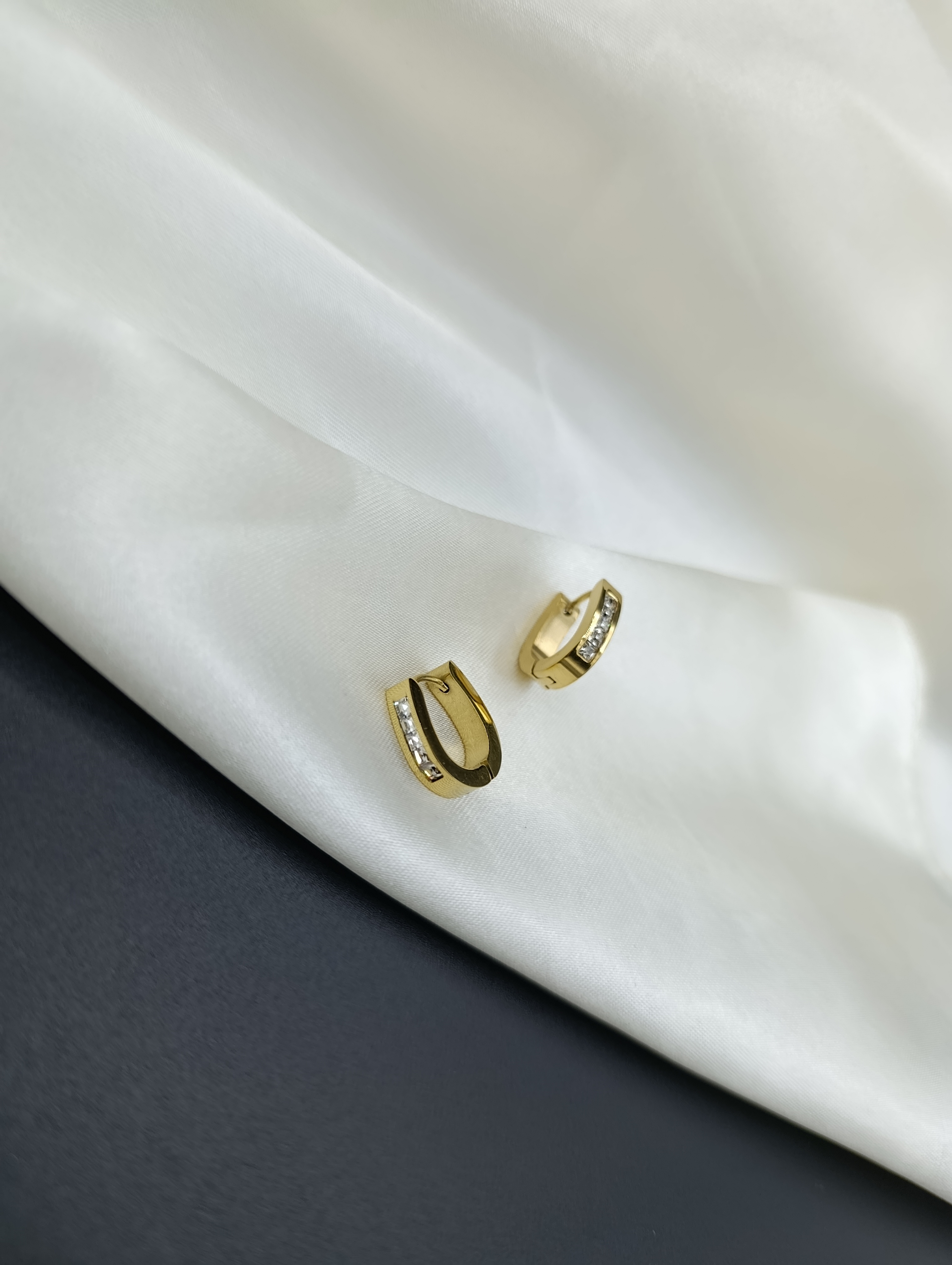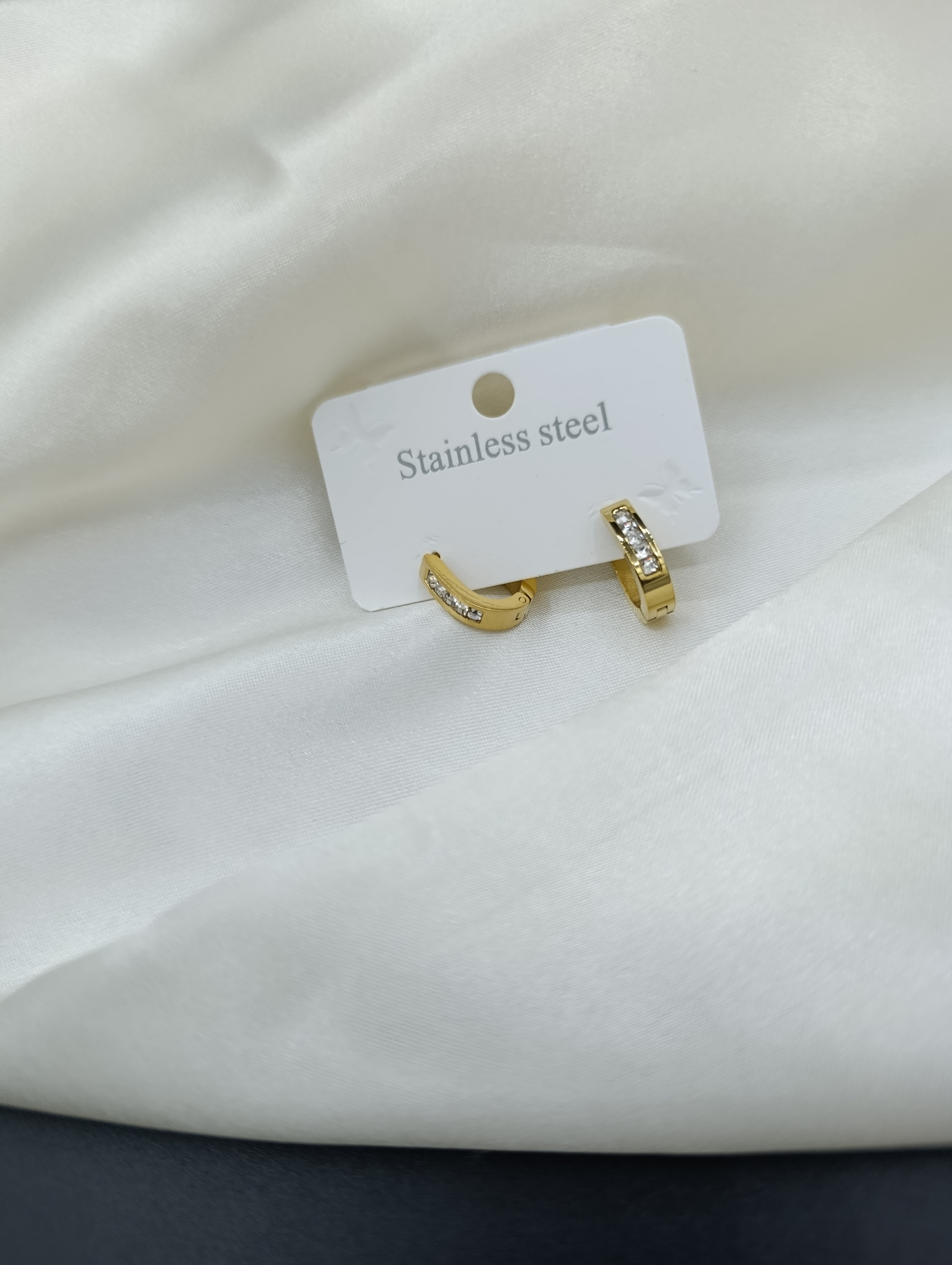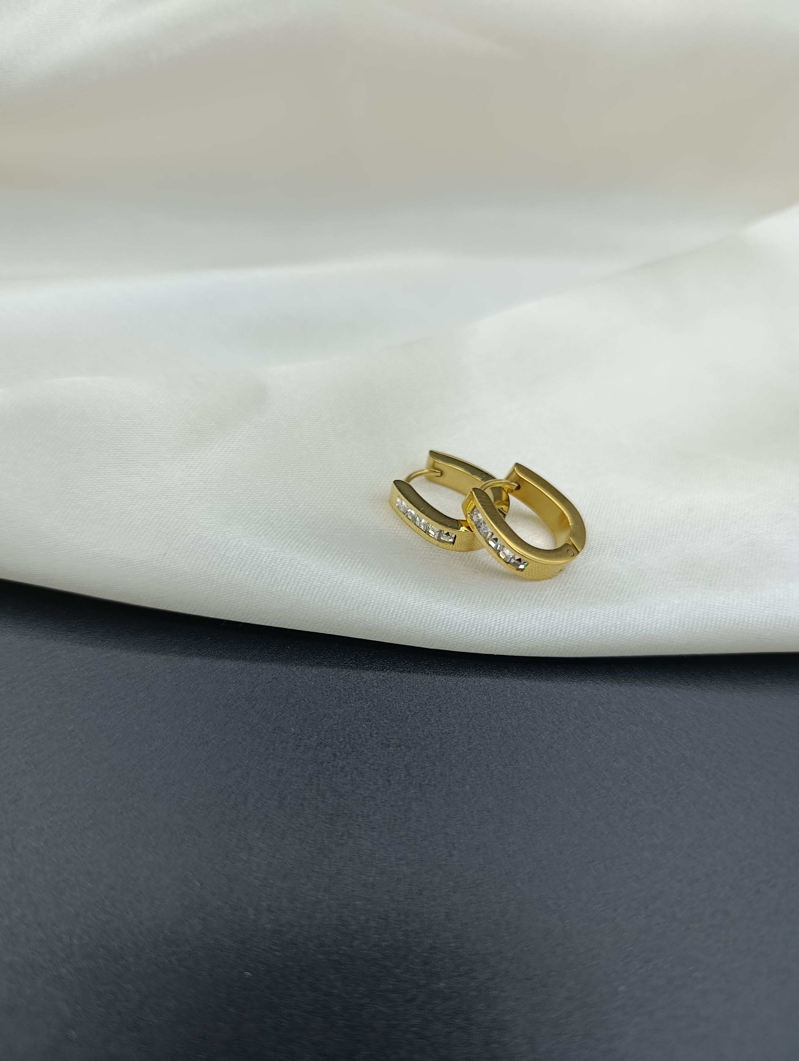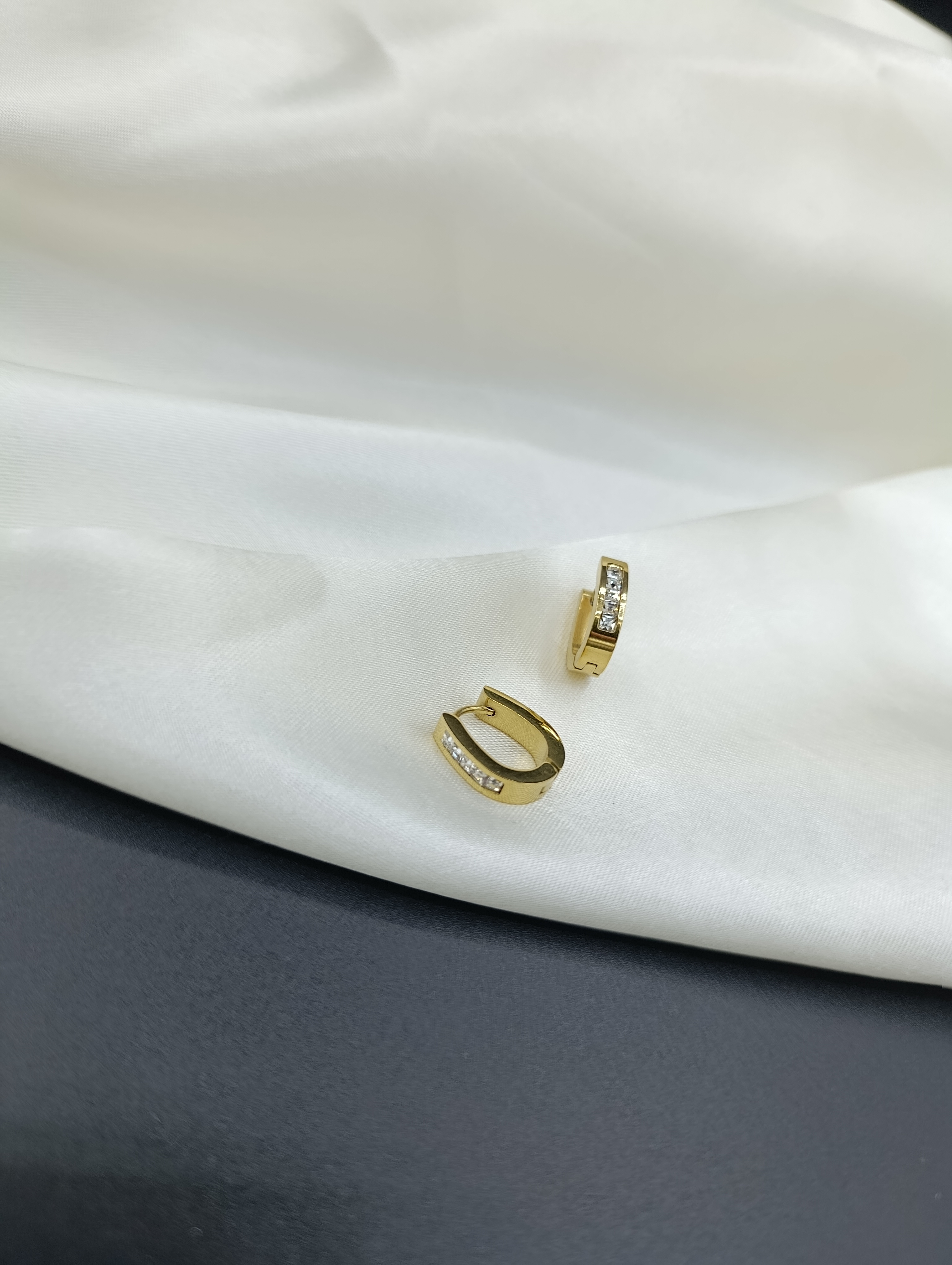 Zirkon Taşlı Çelik Oval Halka Küpe