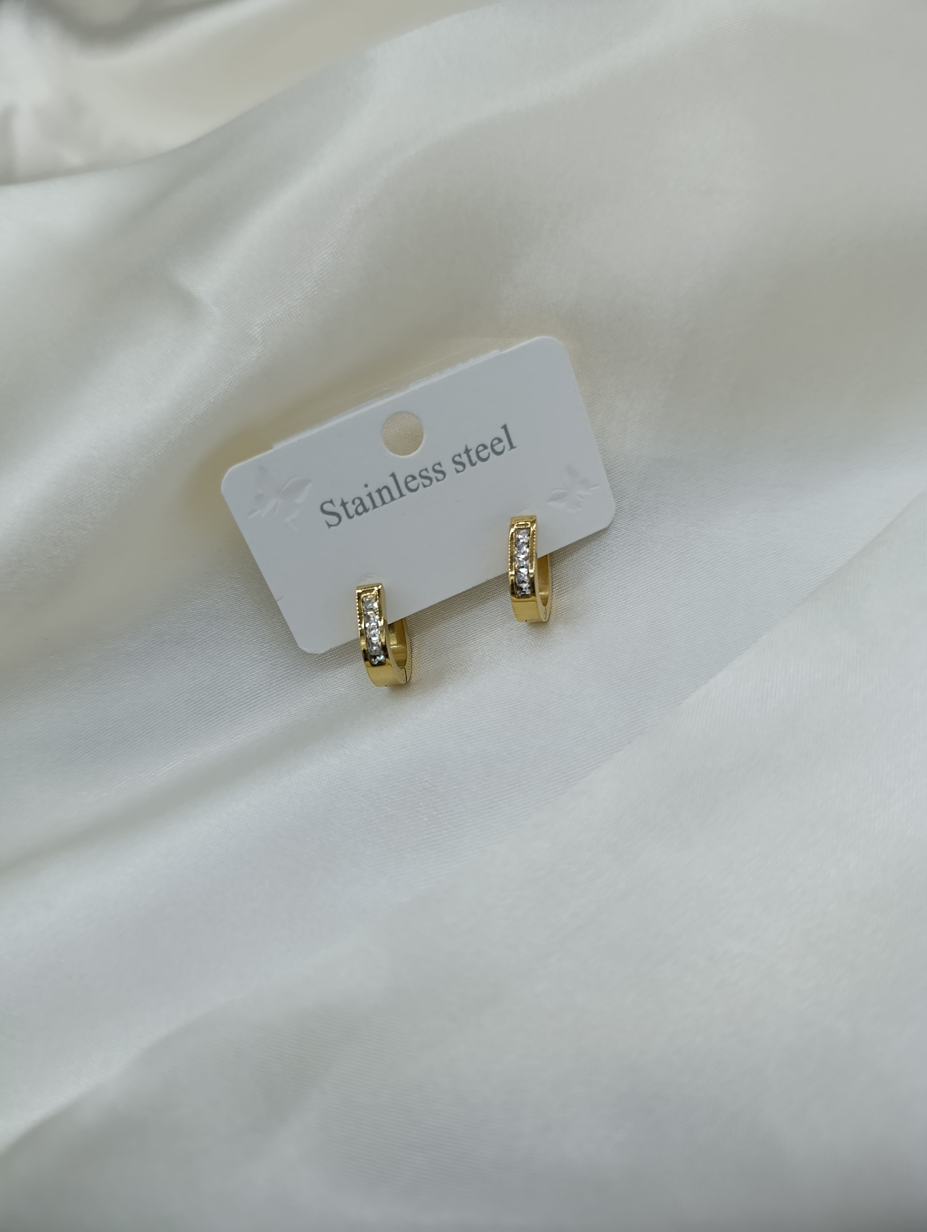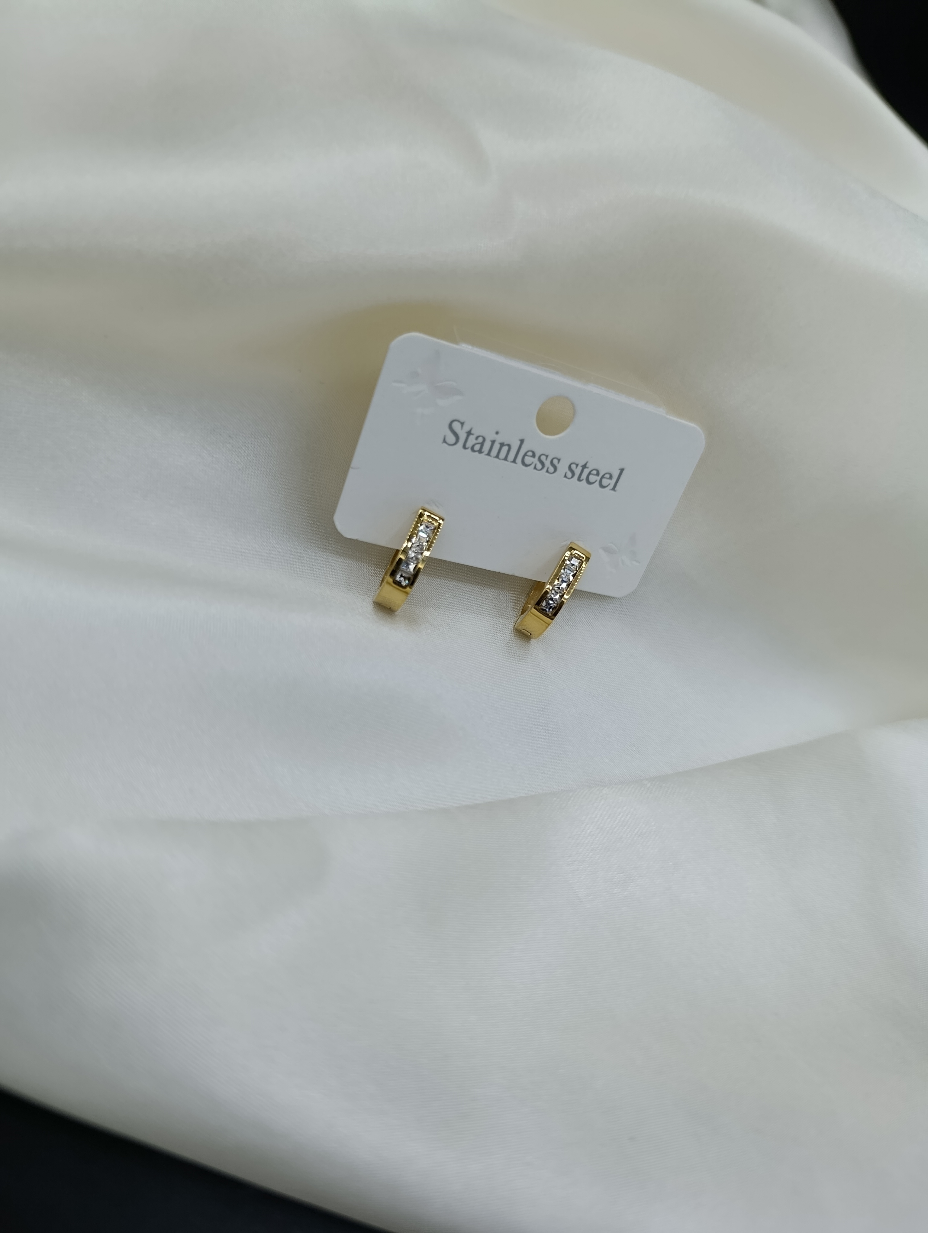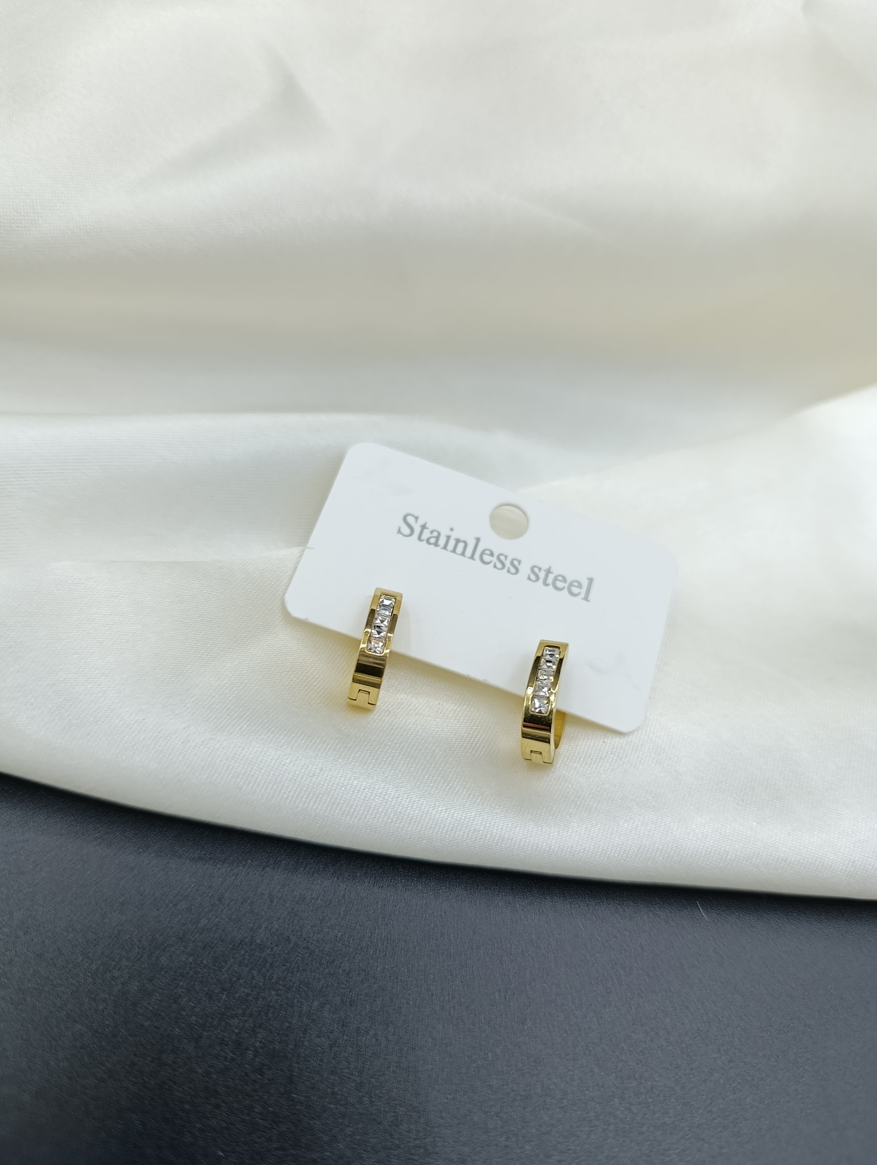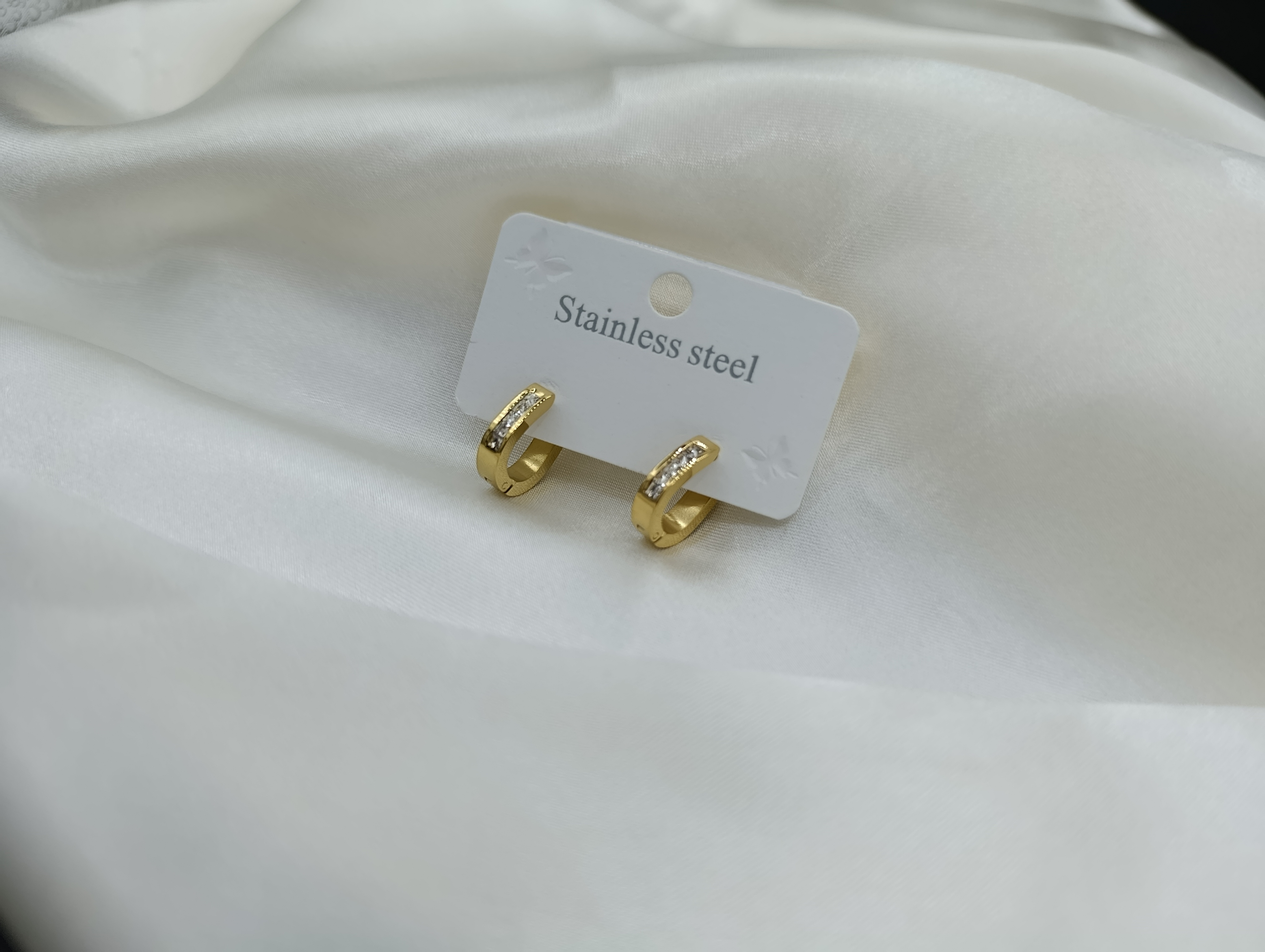 Zirkon Taşlı Çelik Oval Halka Küpe