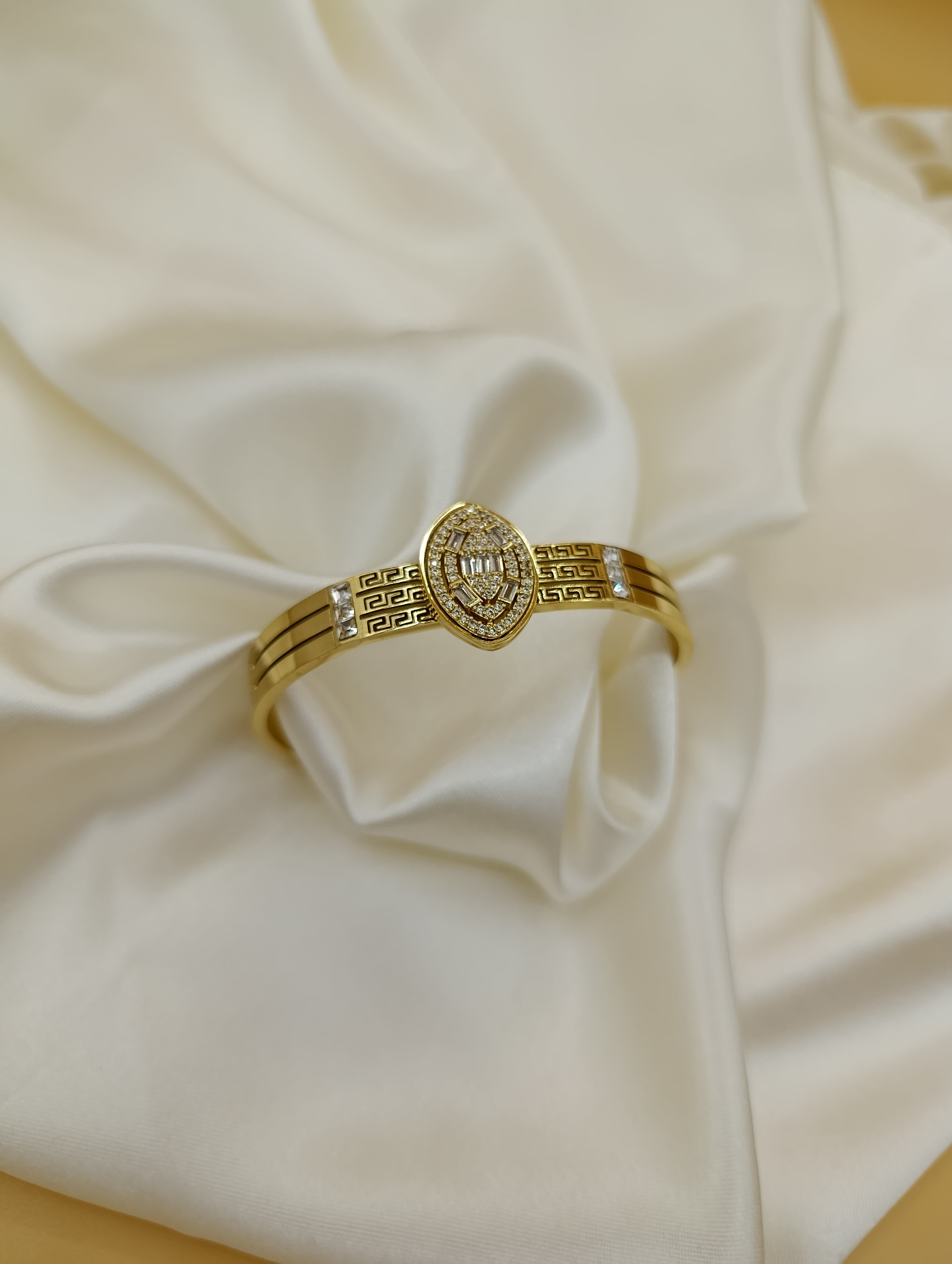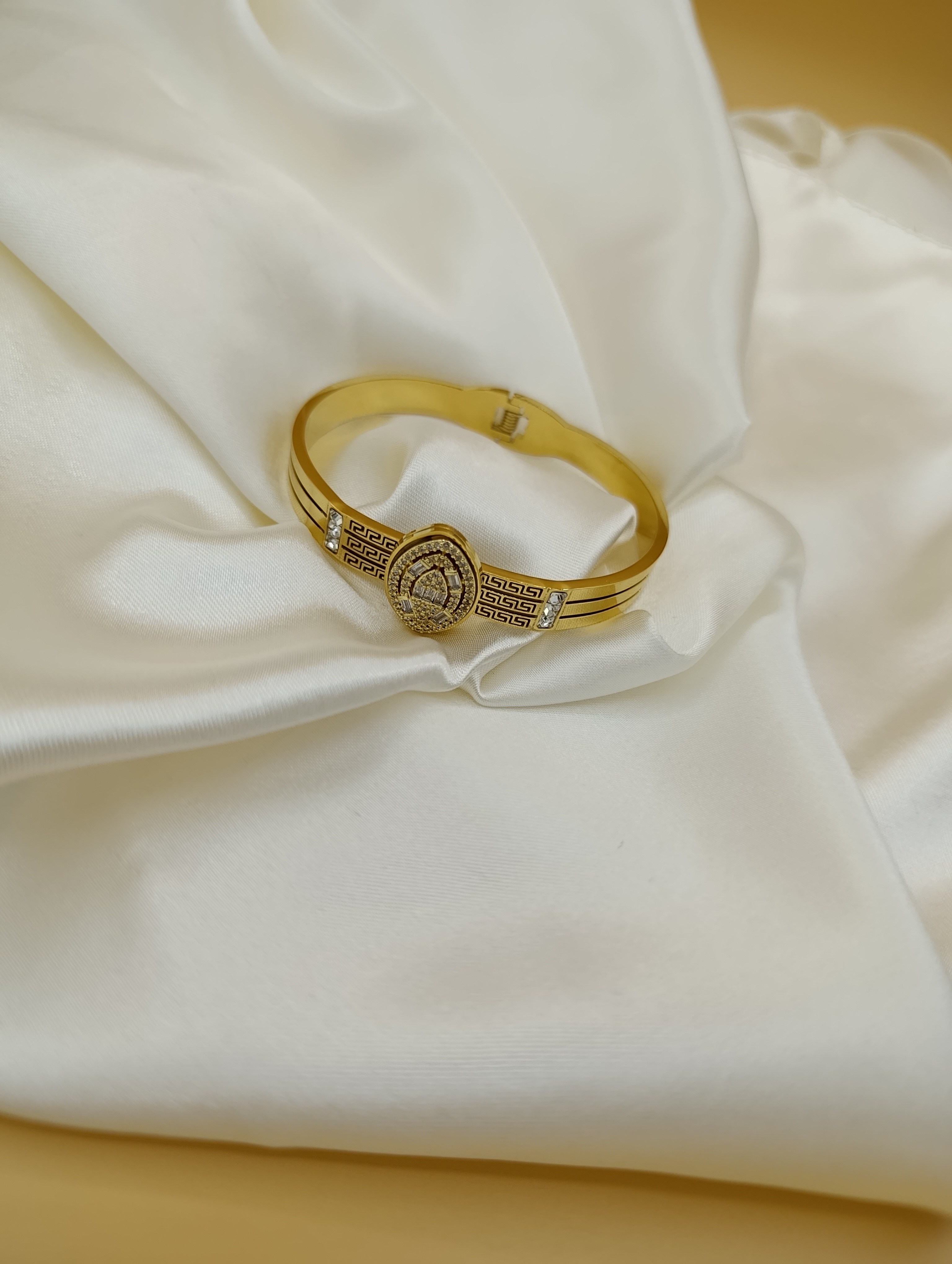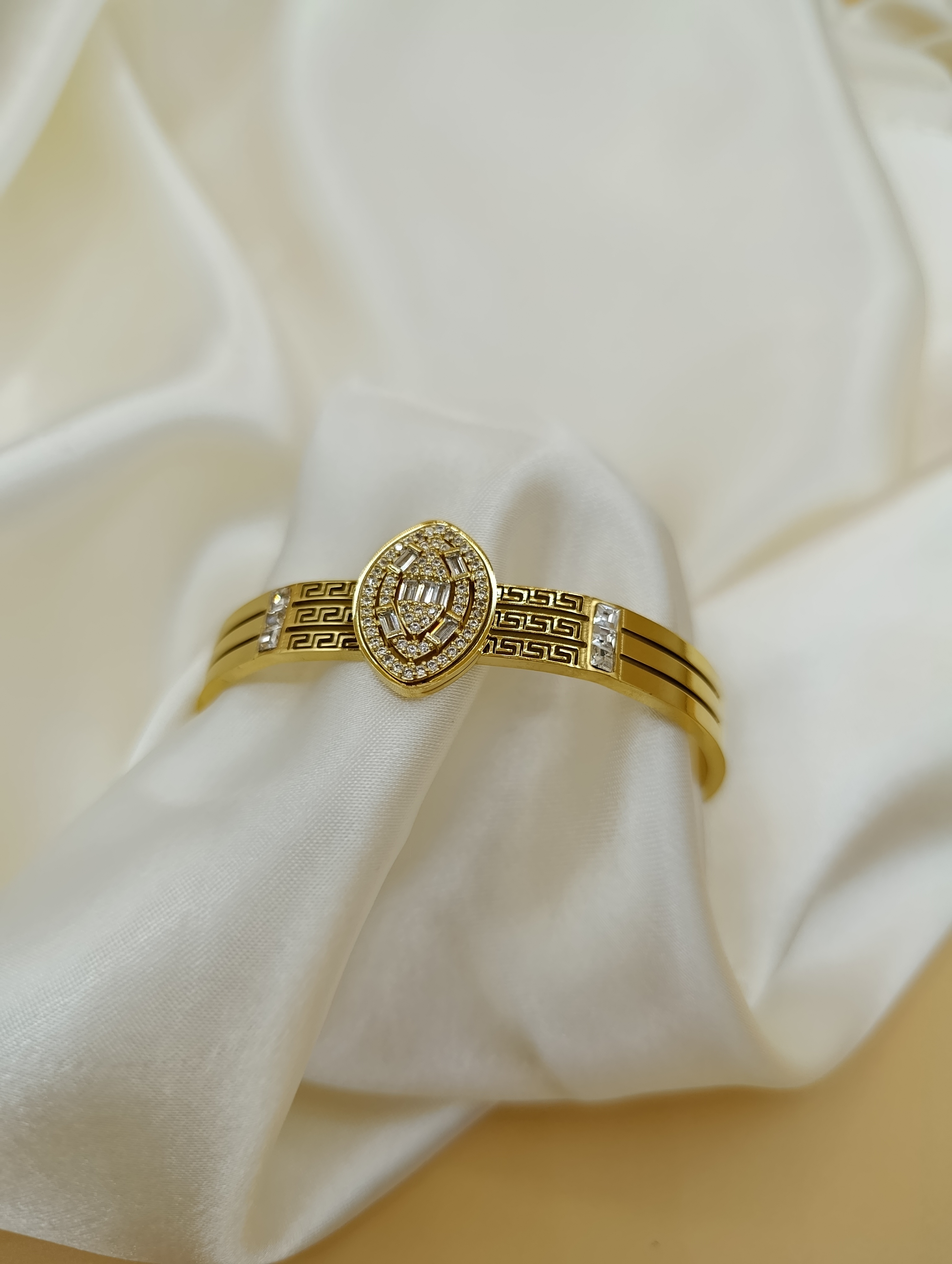 Zirkon Taşlı Desenli Sultan Model Çelik Kelepçe Bileklik