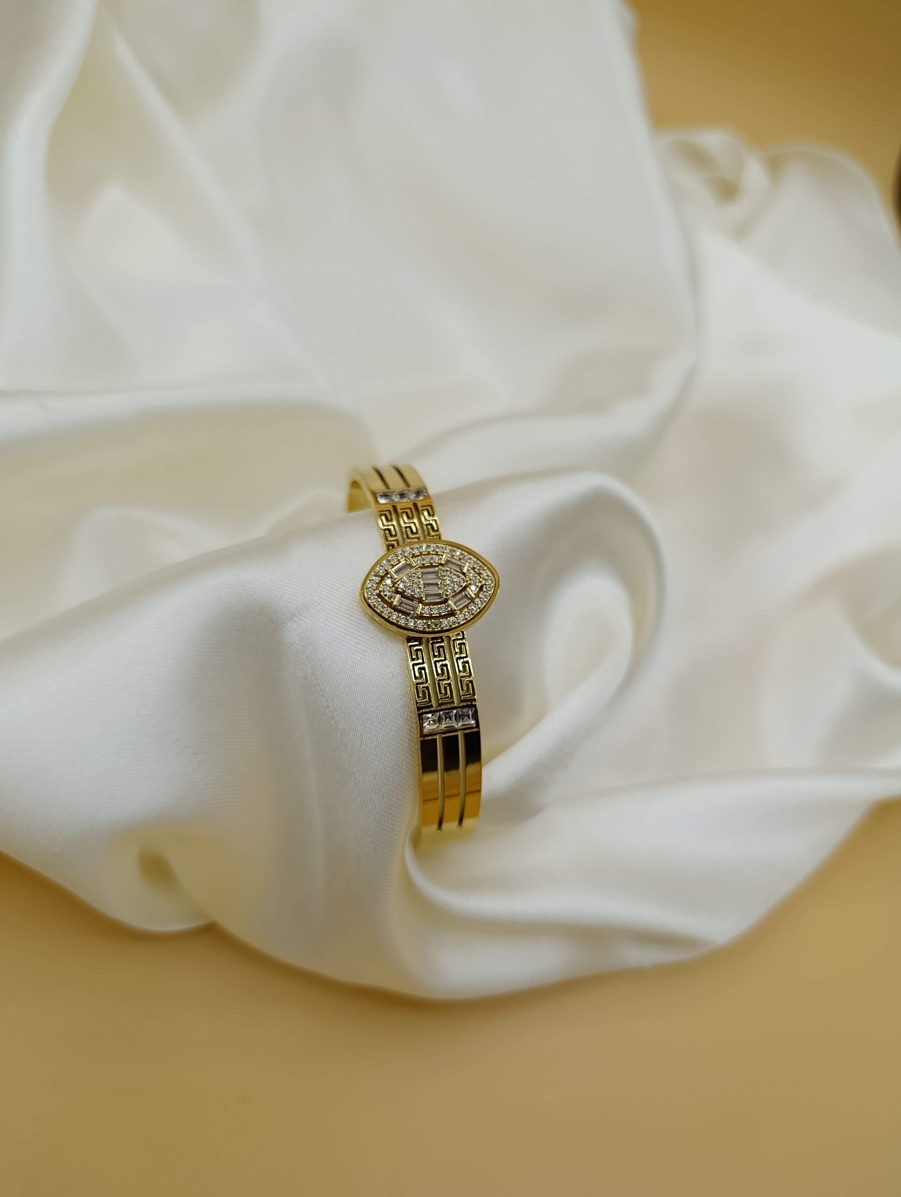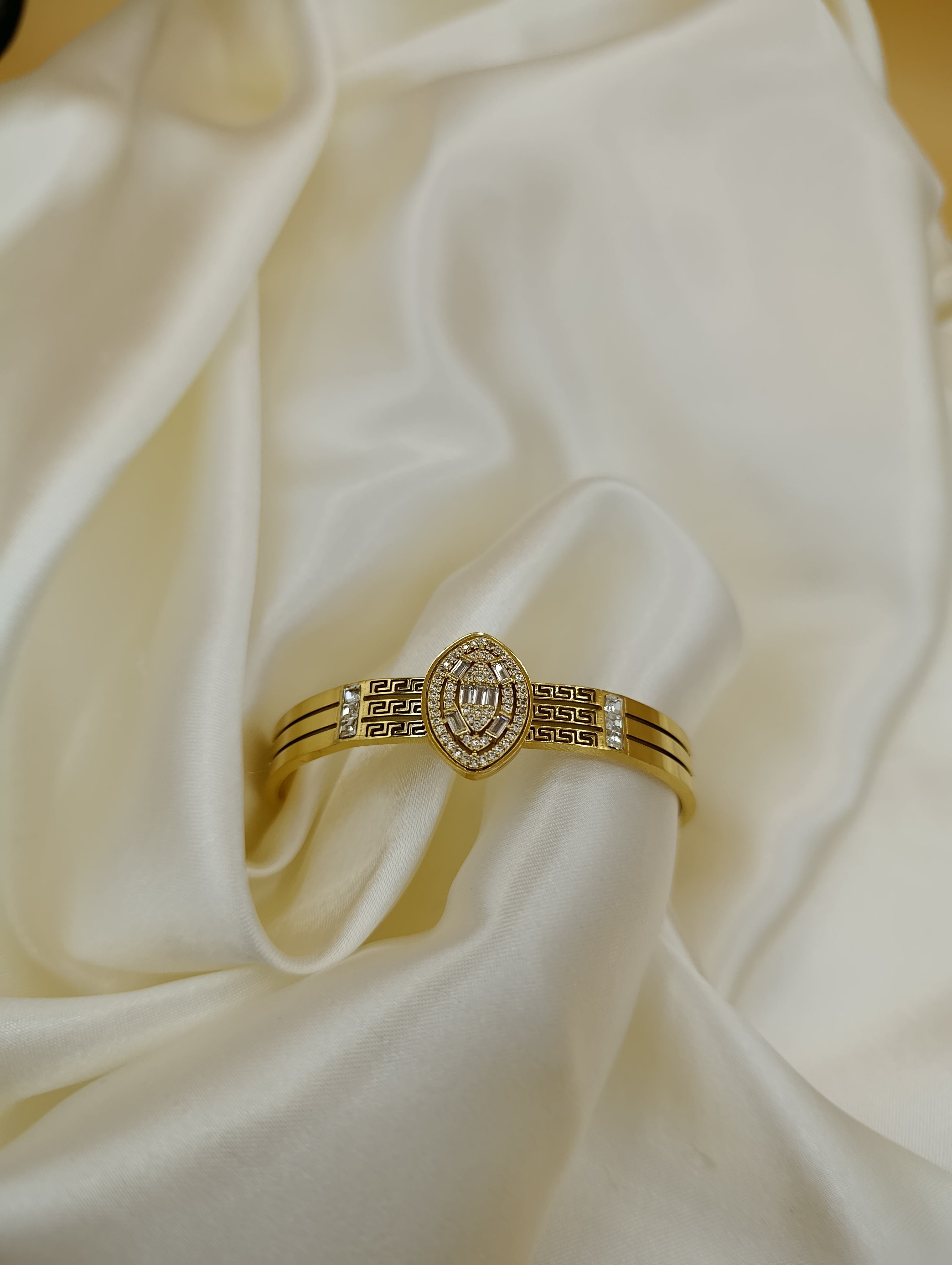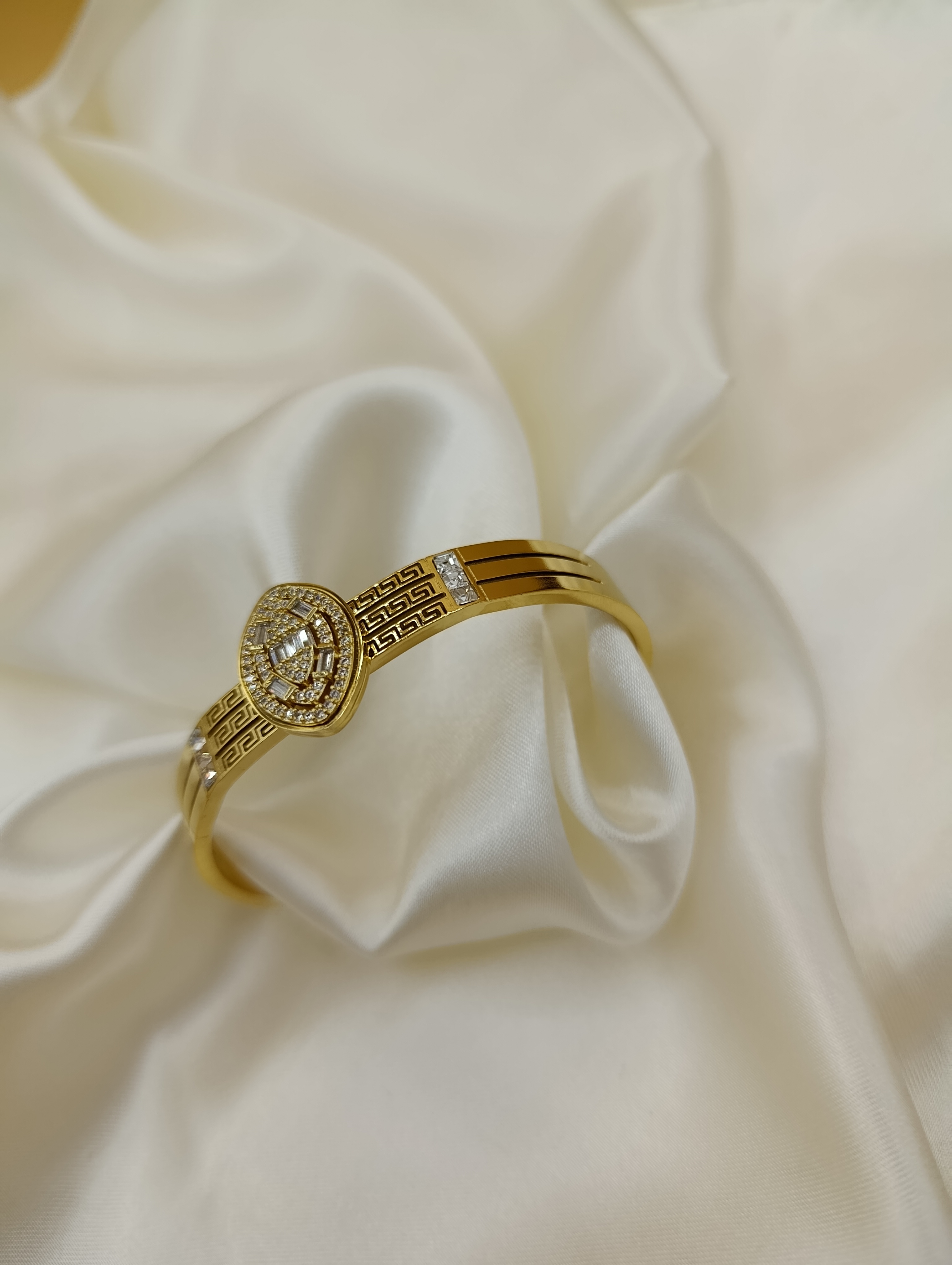Zirkon Taşlı Desenli Sultan Model Çelik Kelepçe Bileklik