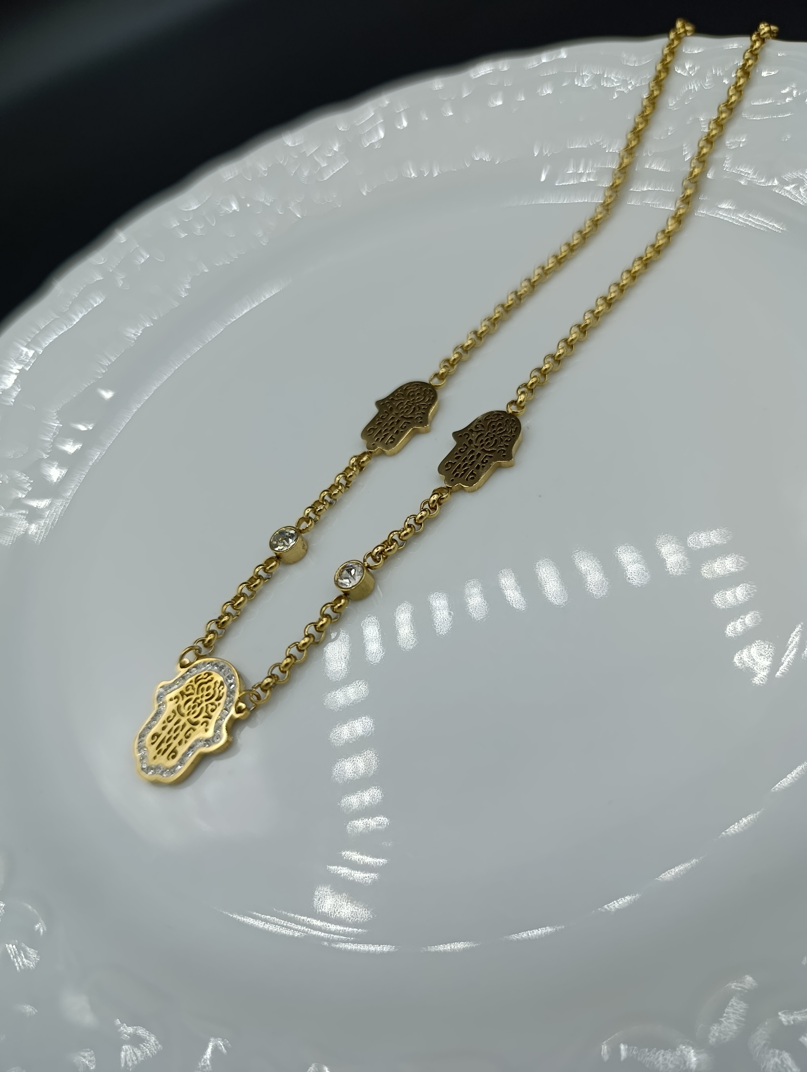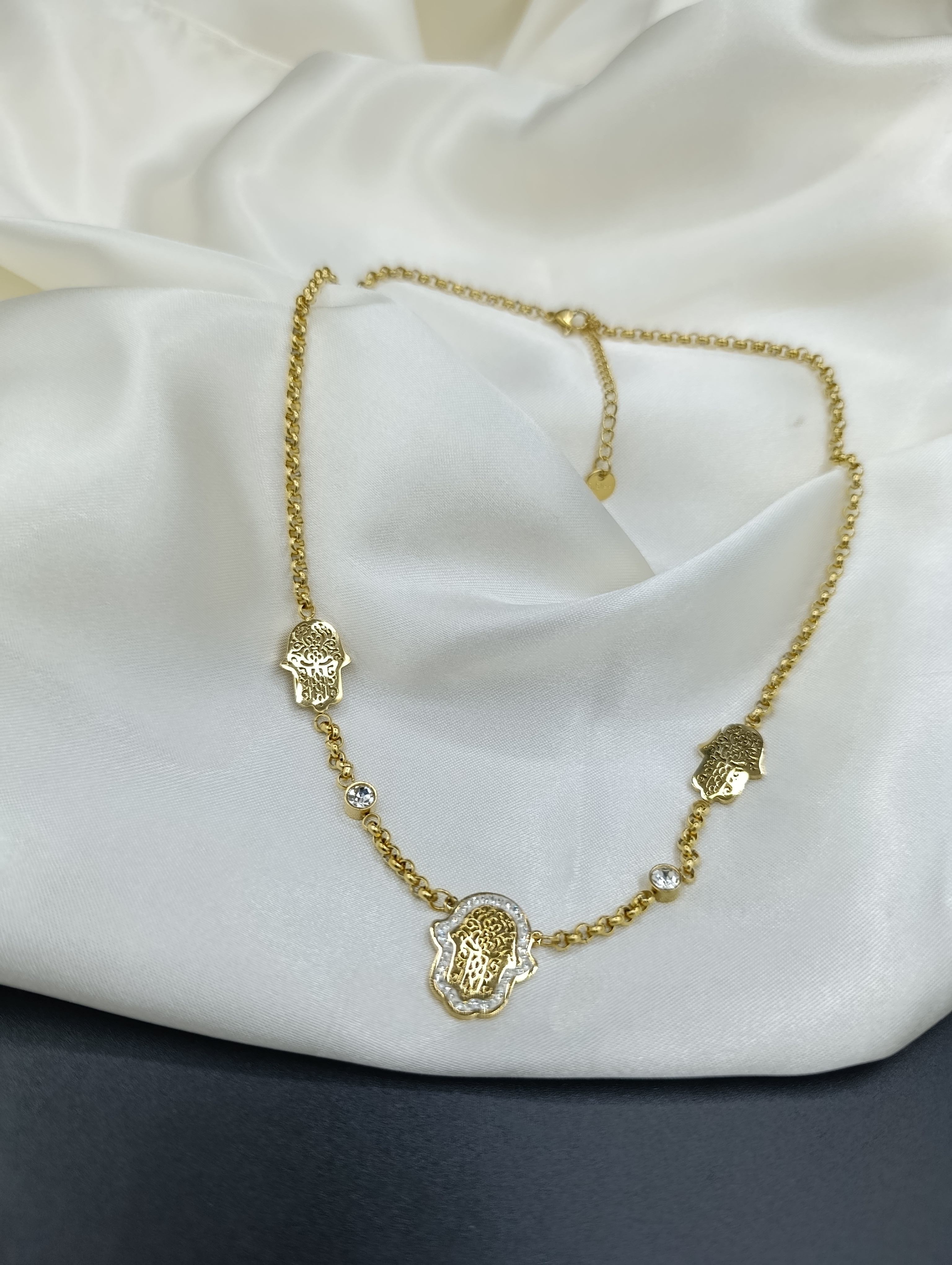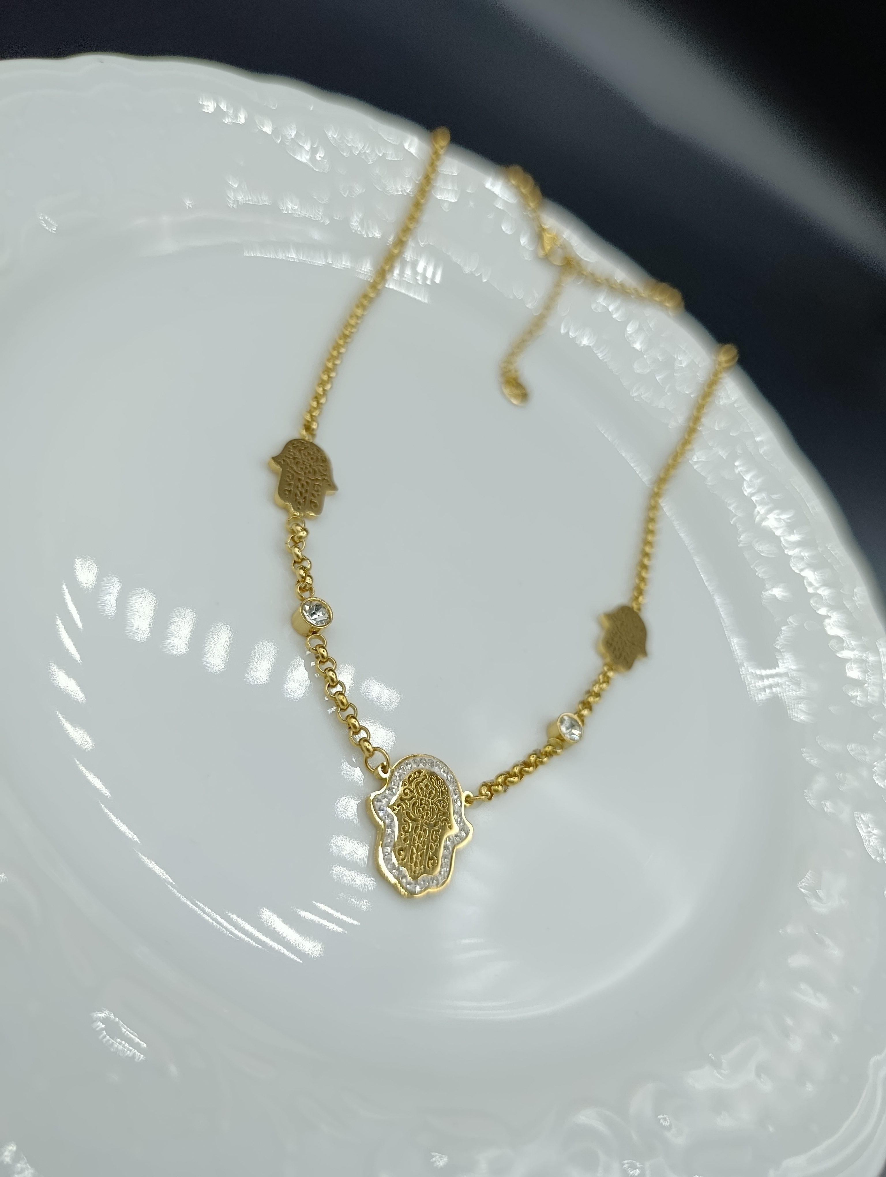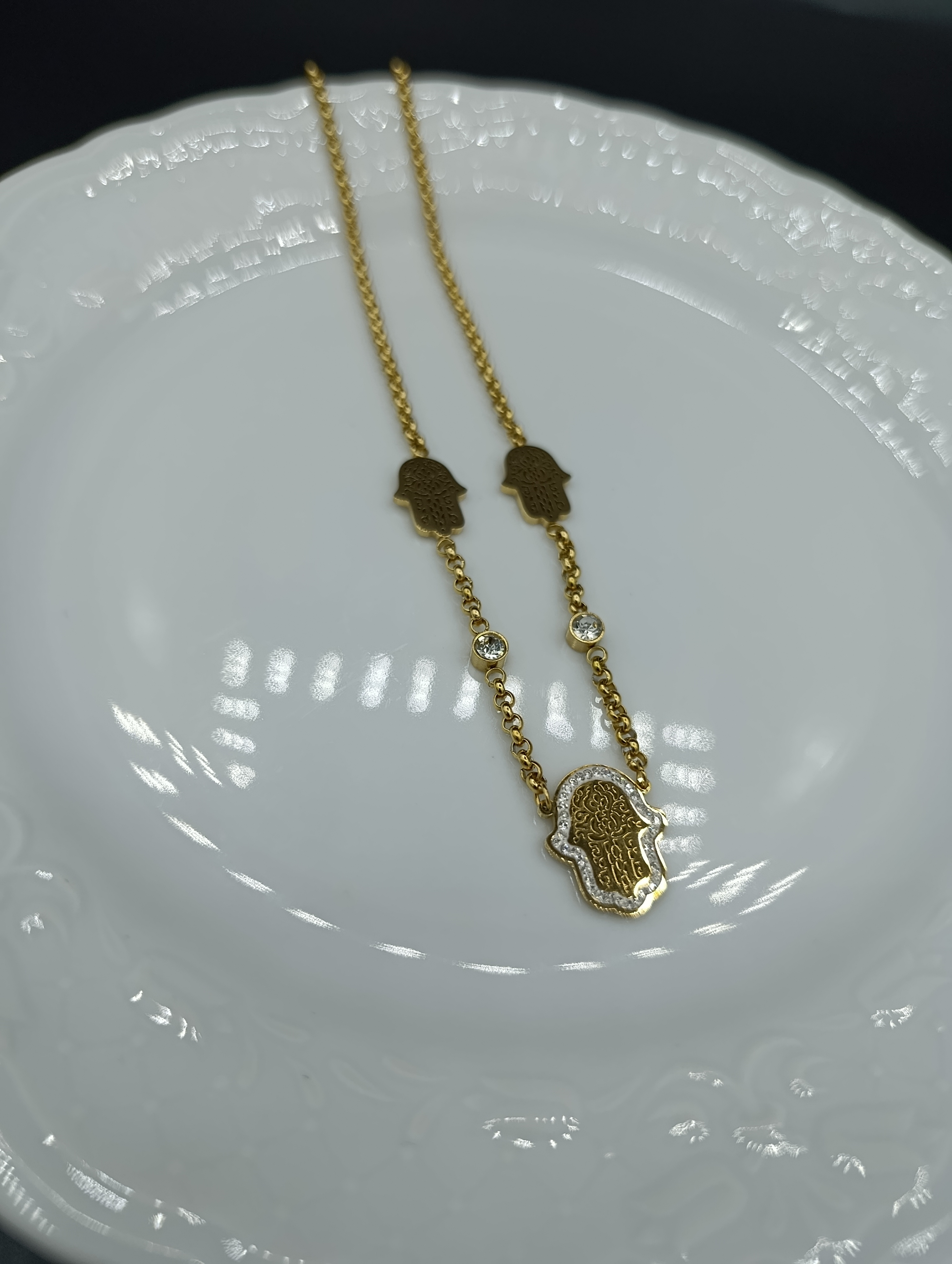 Zirkon Taşlı Fatma Ana Eli Çelik Kolye