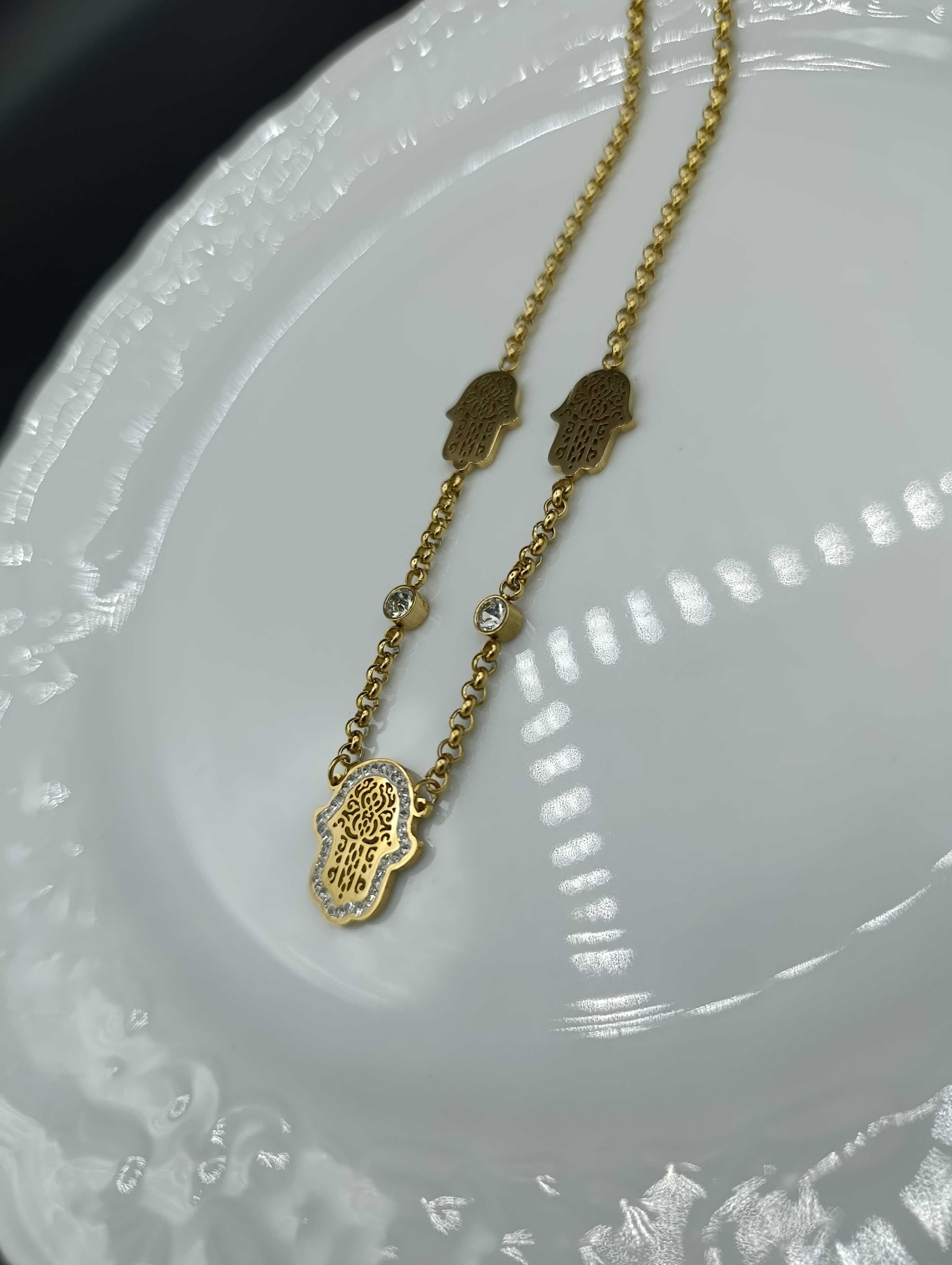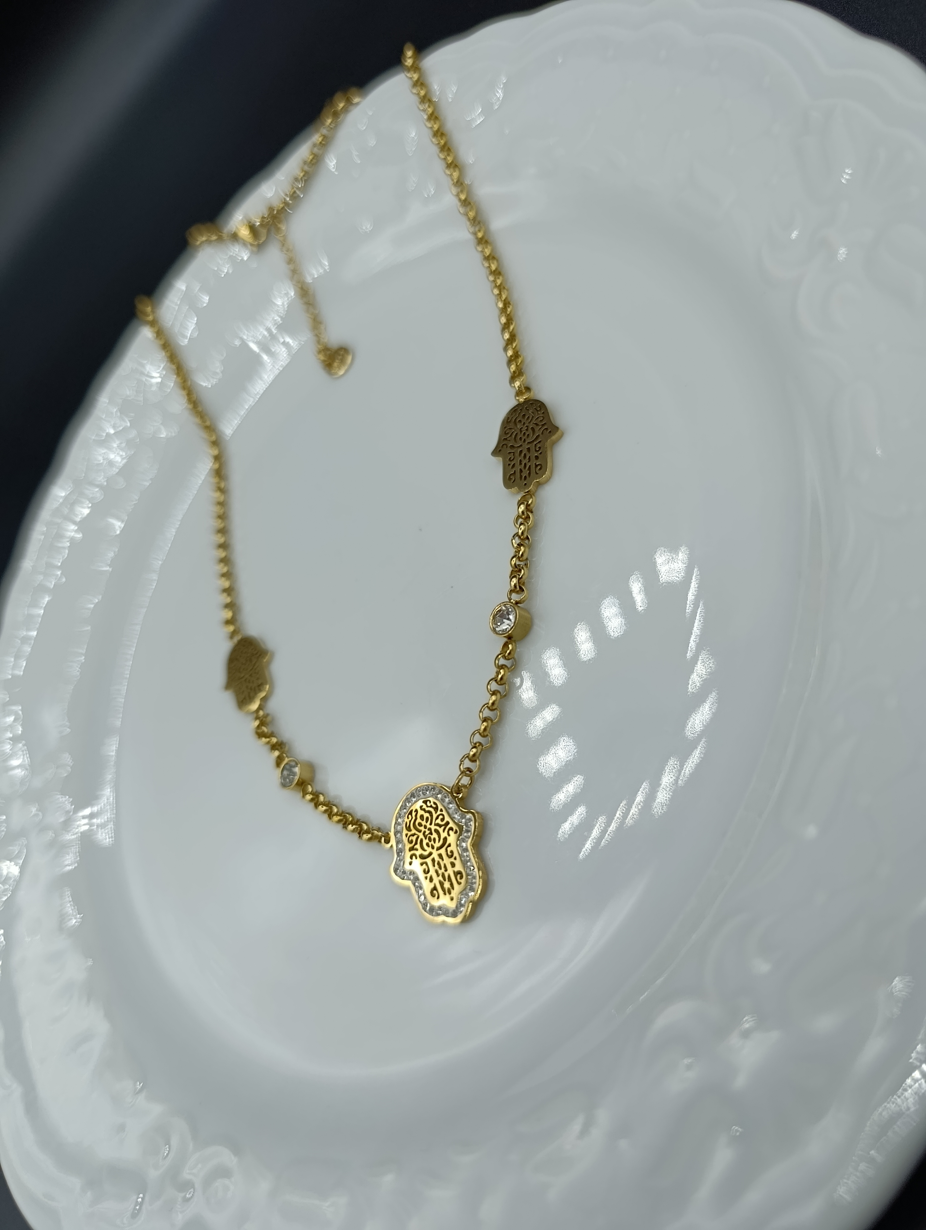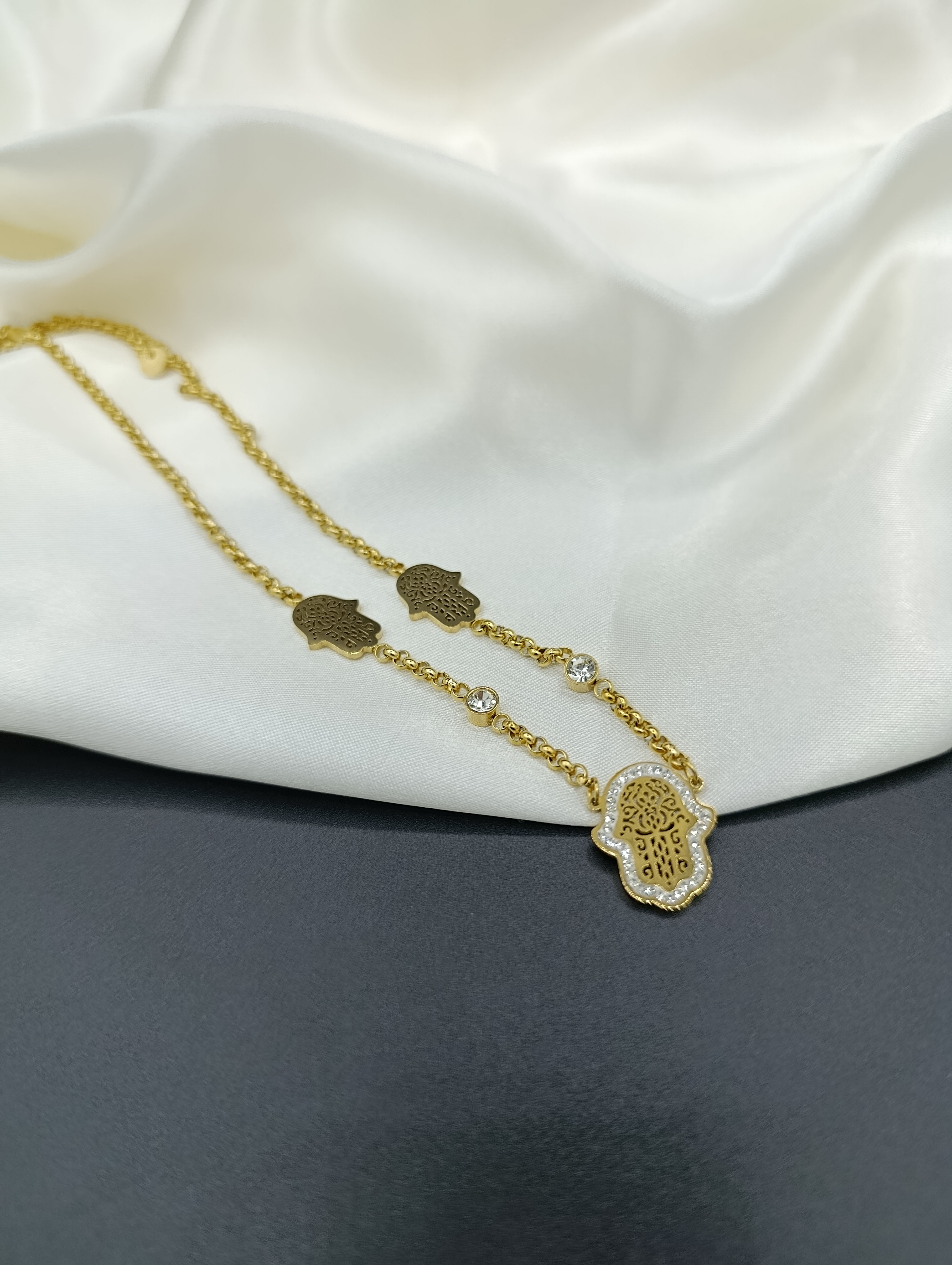Zirkon Taşlı Fatma Ana Eli Çelik Kolye