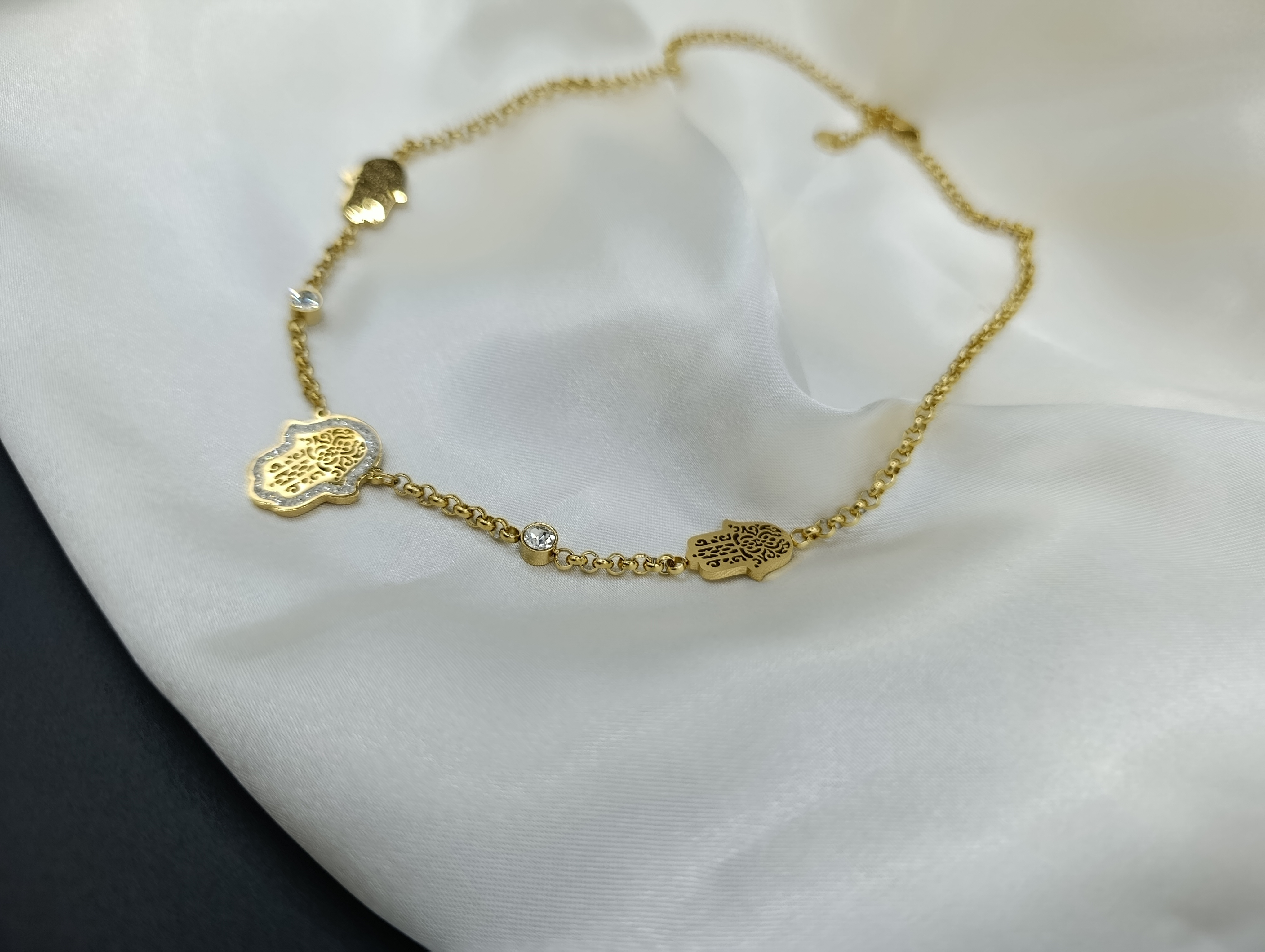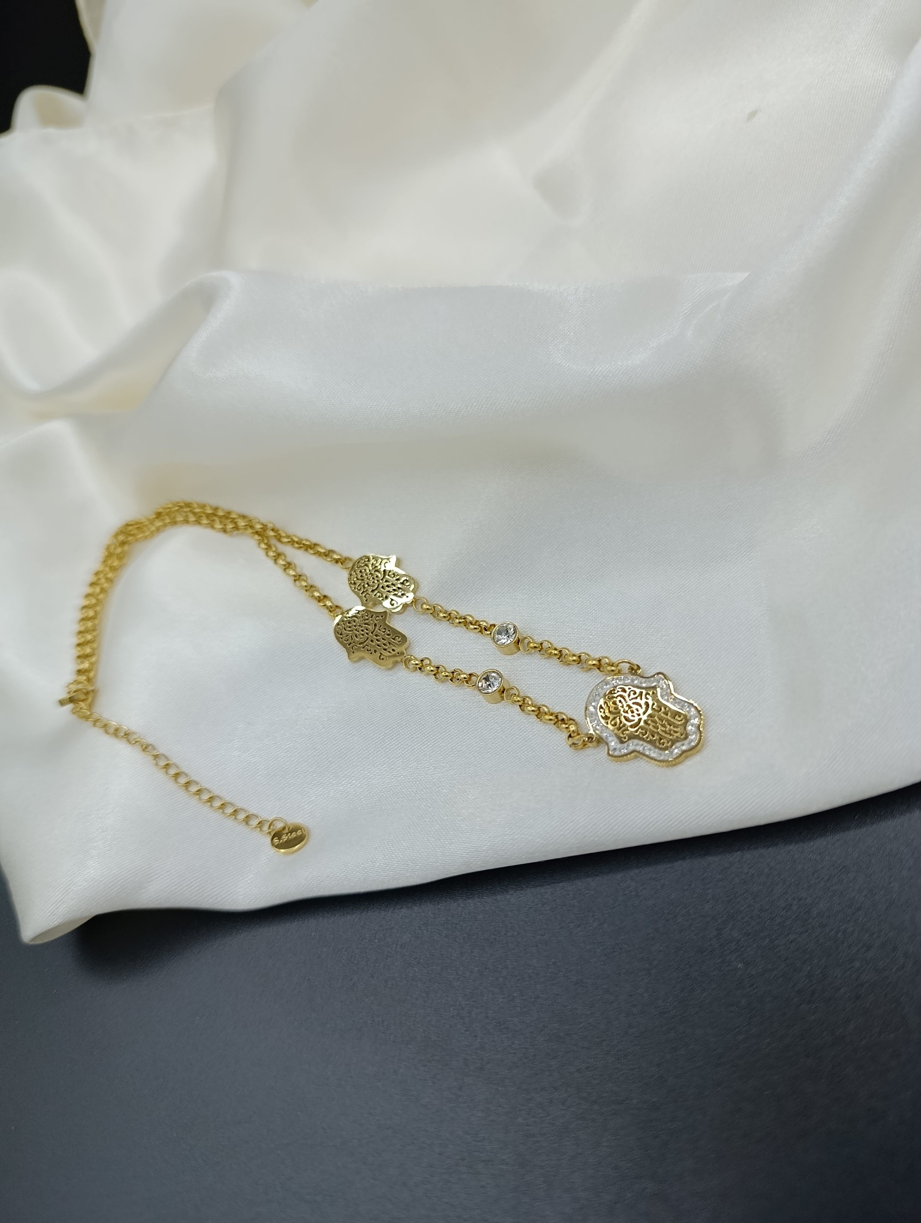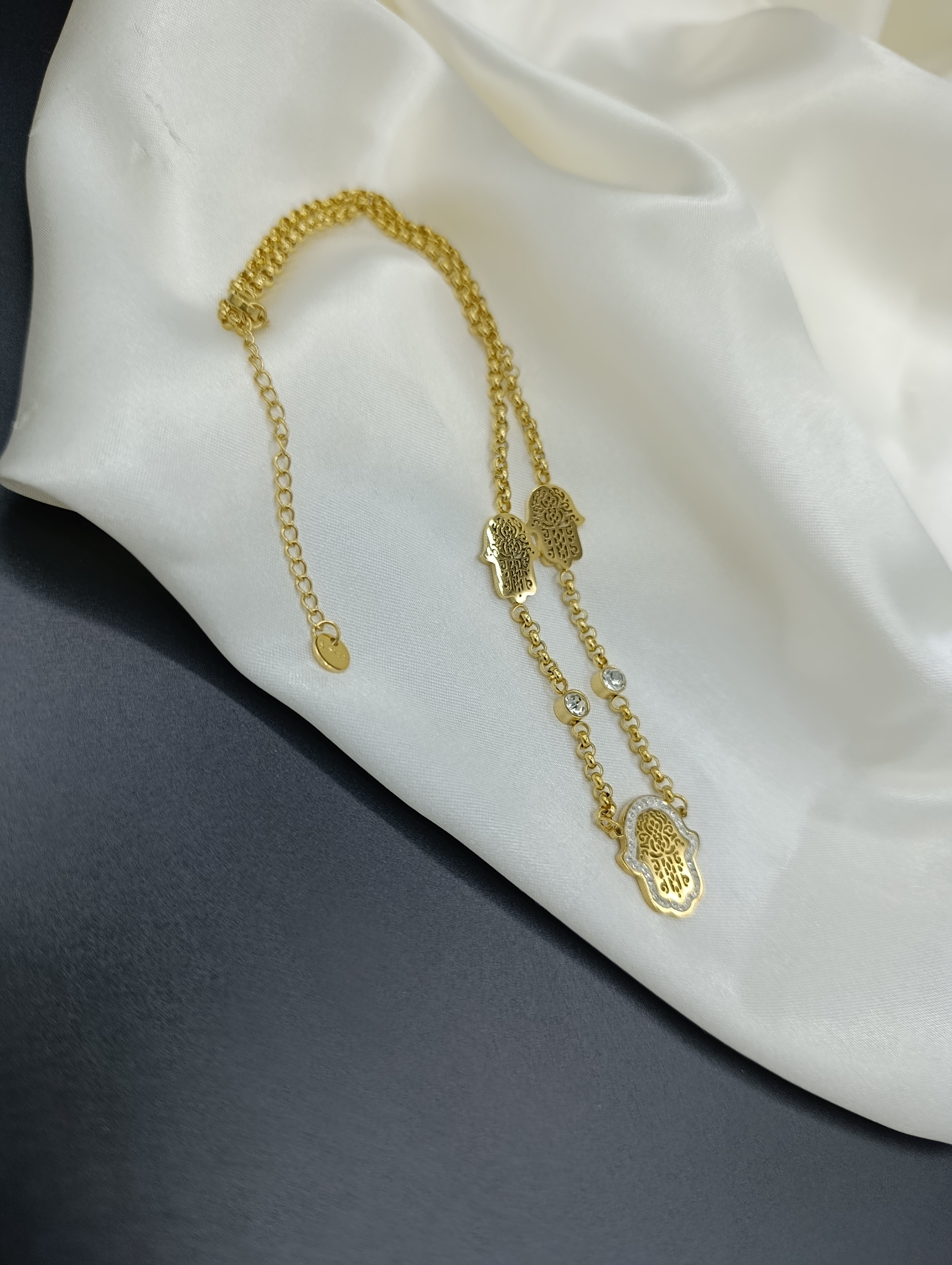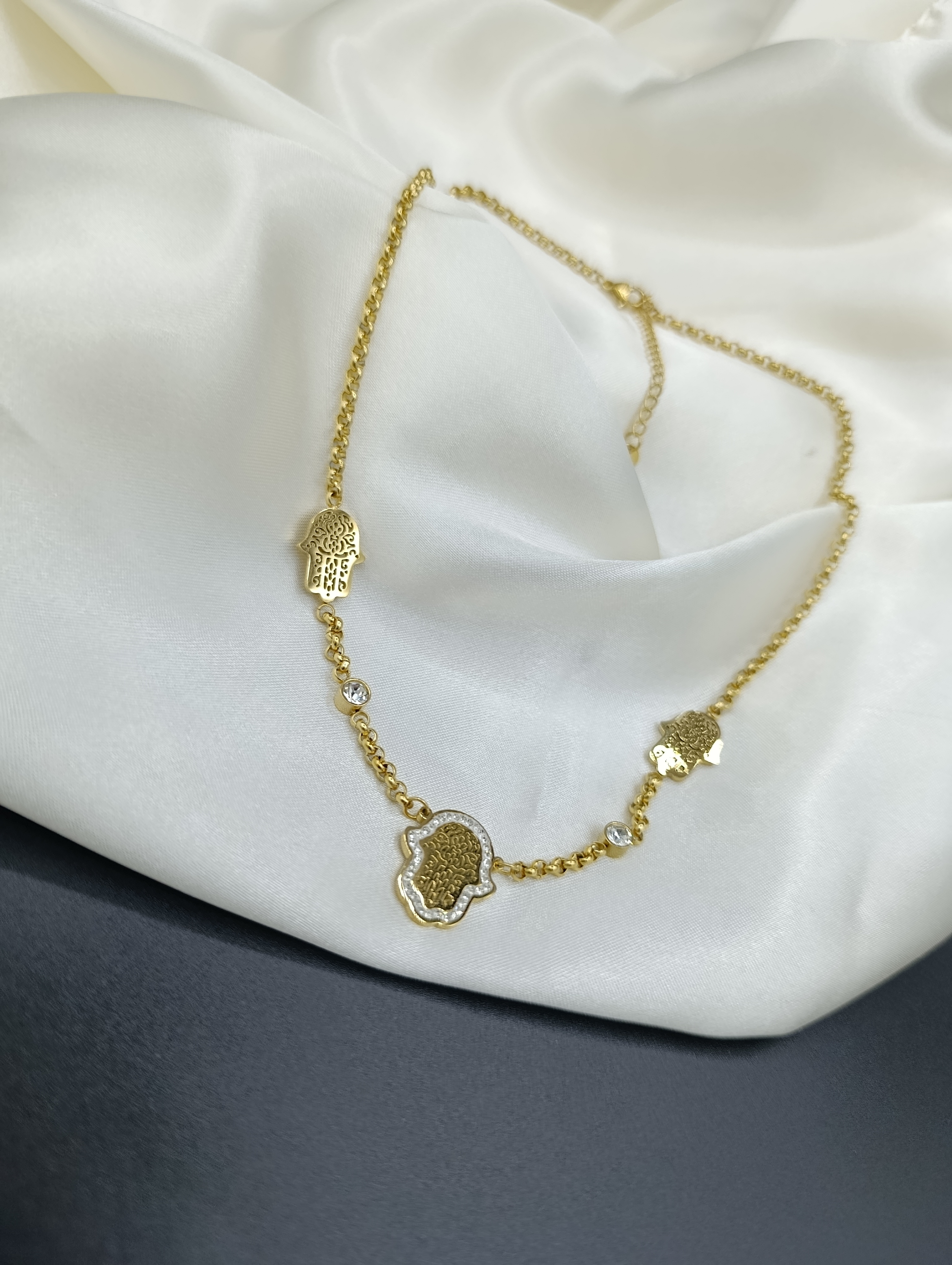 Zirkon Taşlı Fatma Ana Eli Çelik Kolye