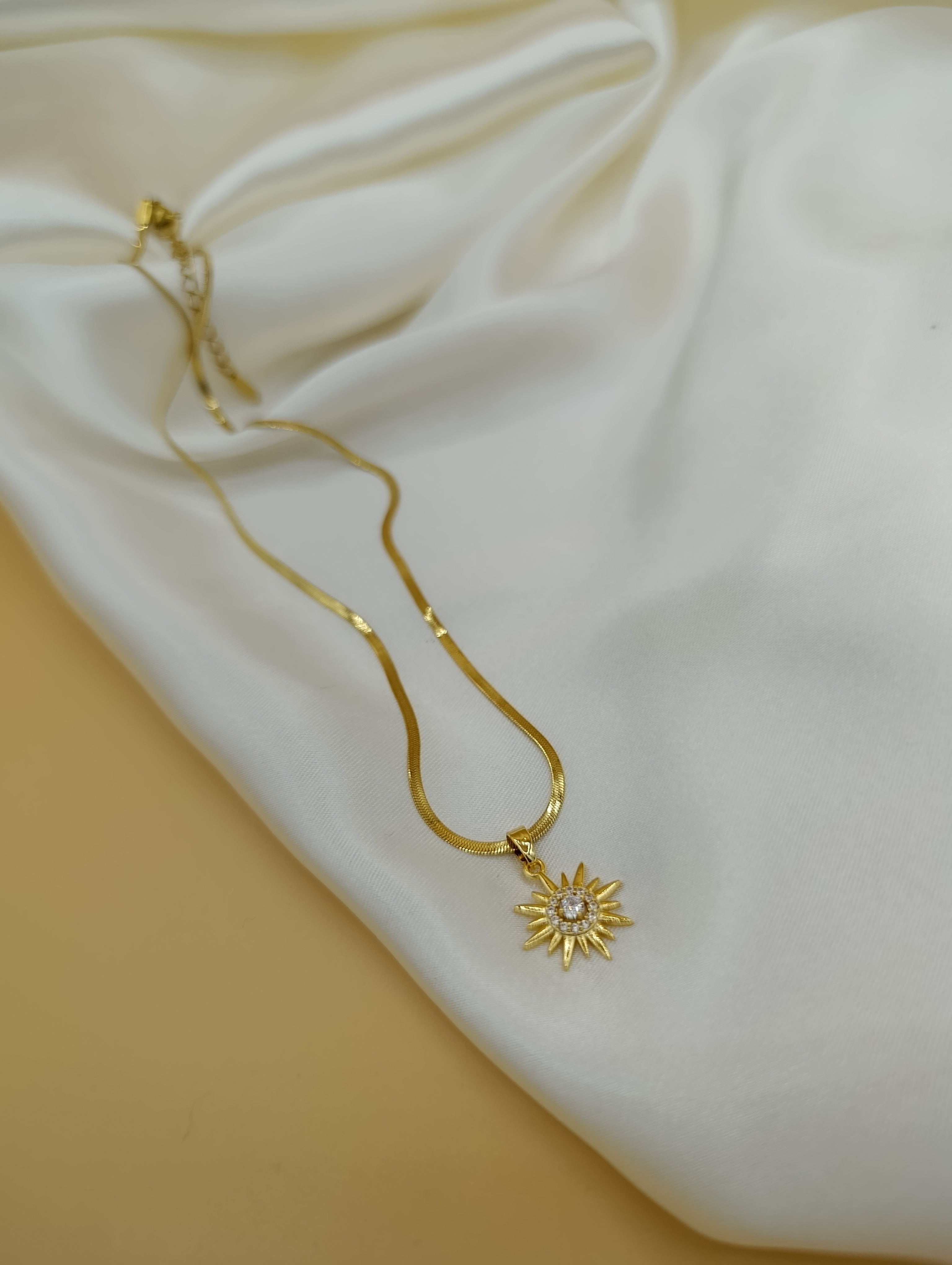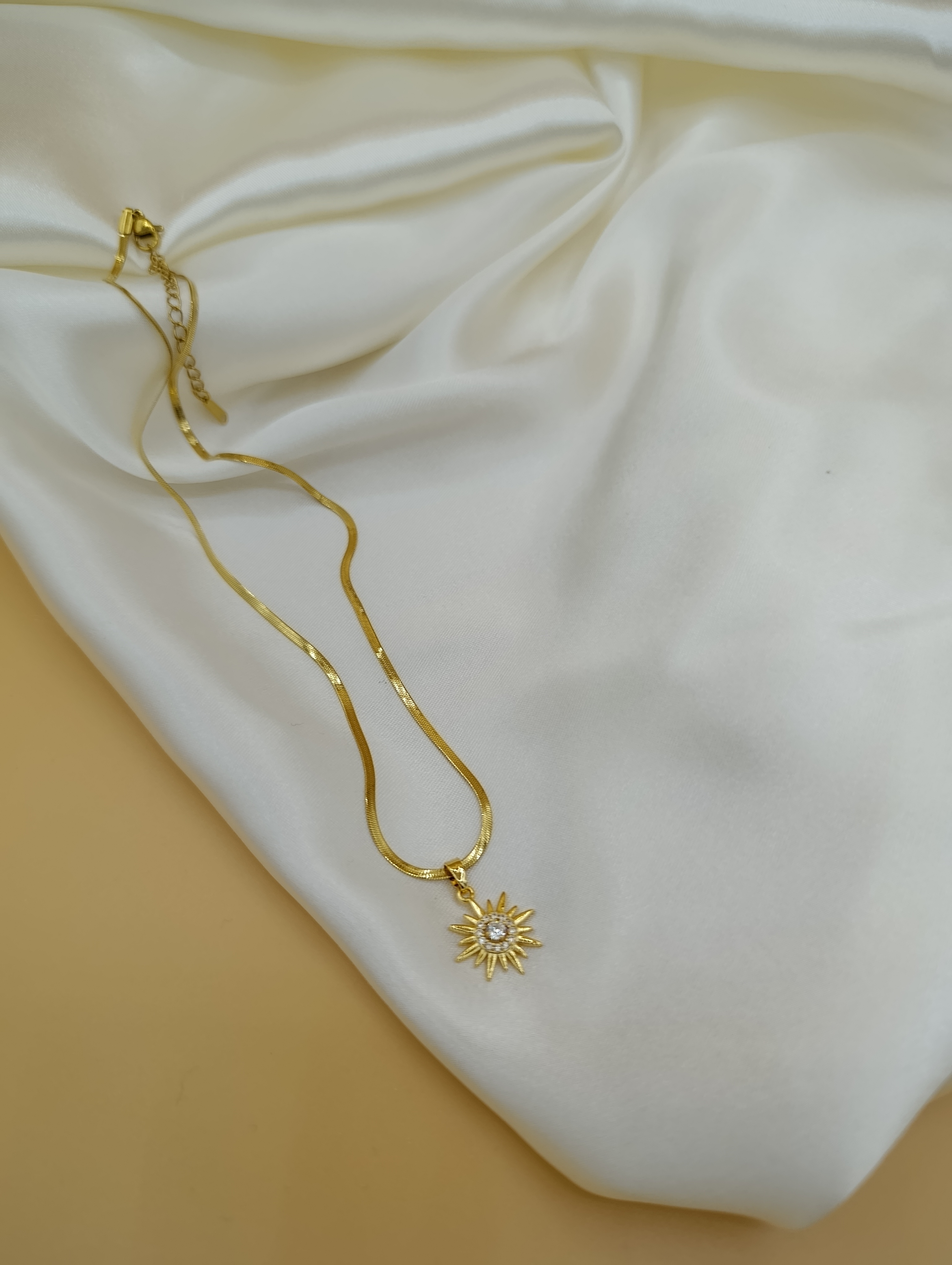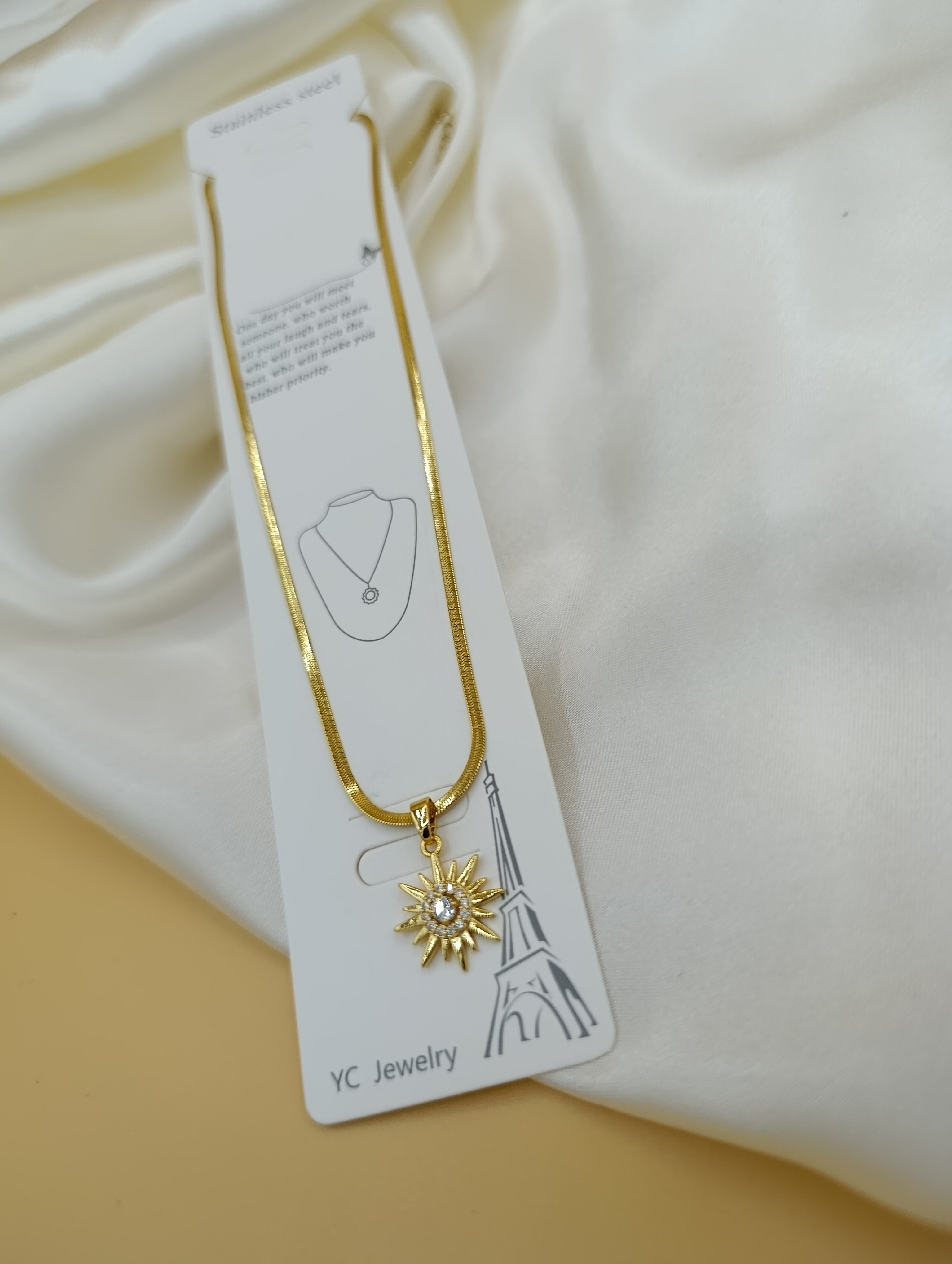 Zirkon Taşlı Güneş Figürlü Çelik İtalyan Zincir Kolye