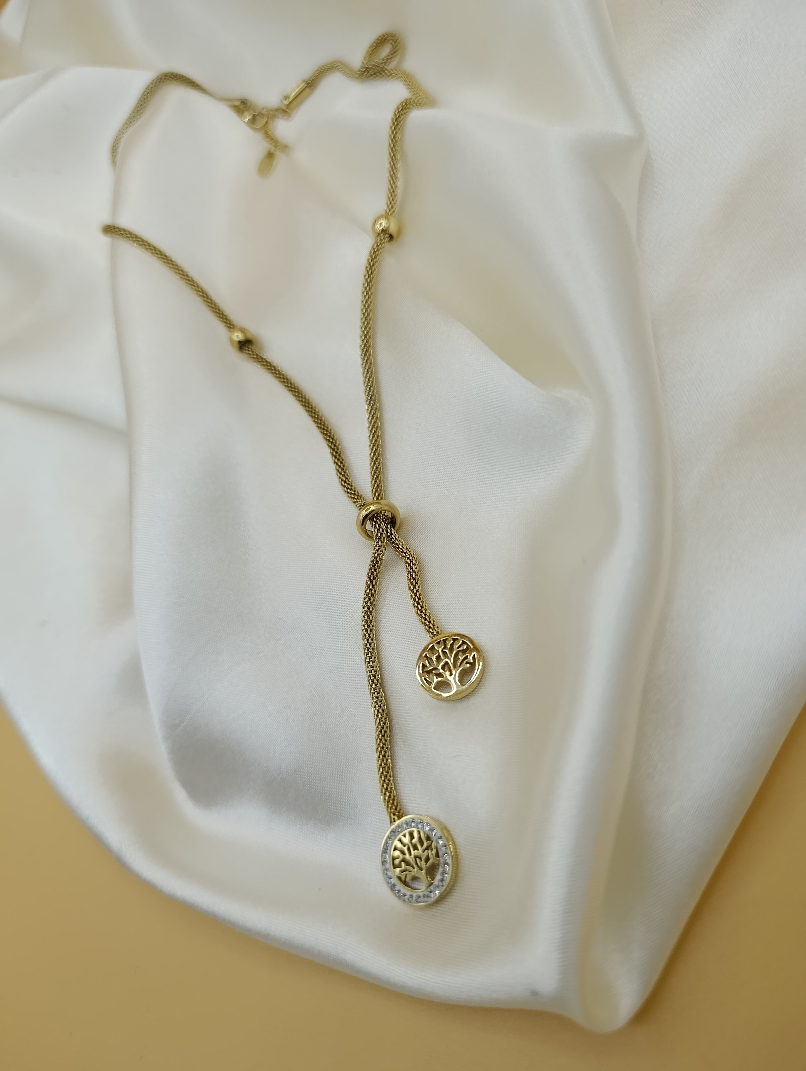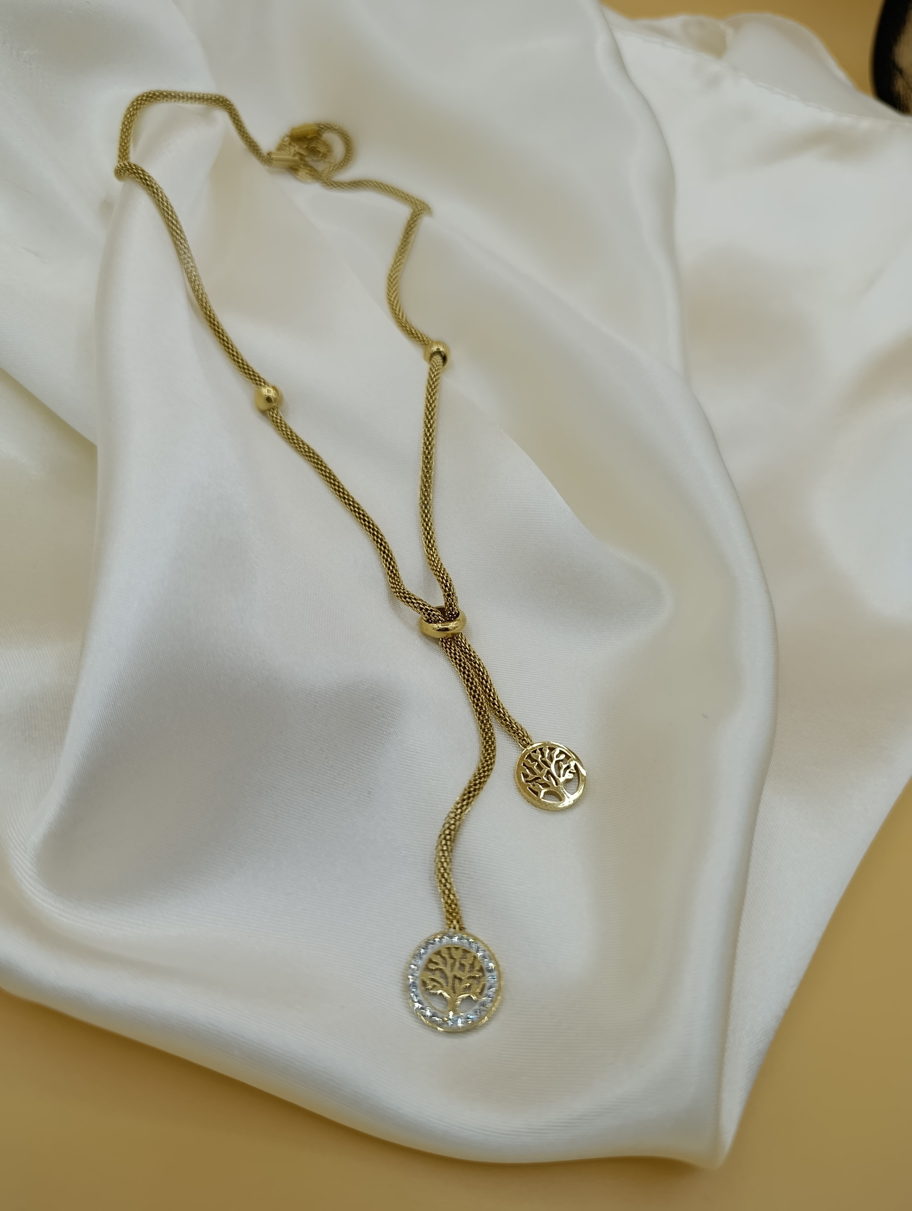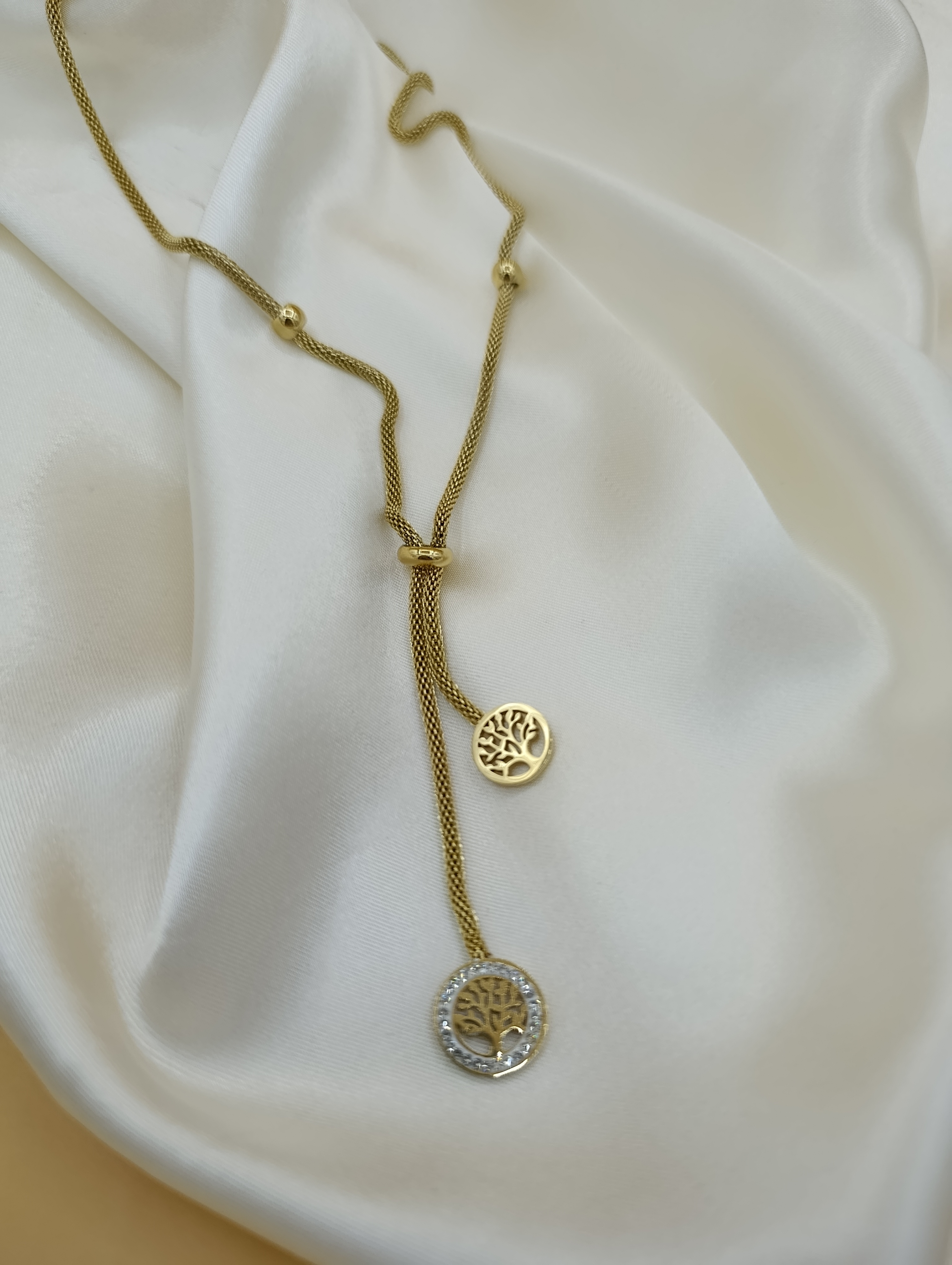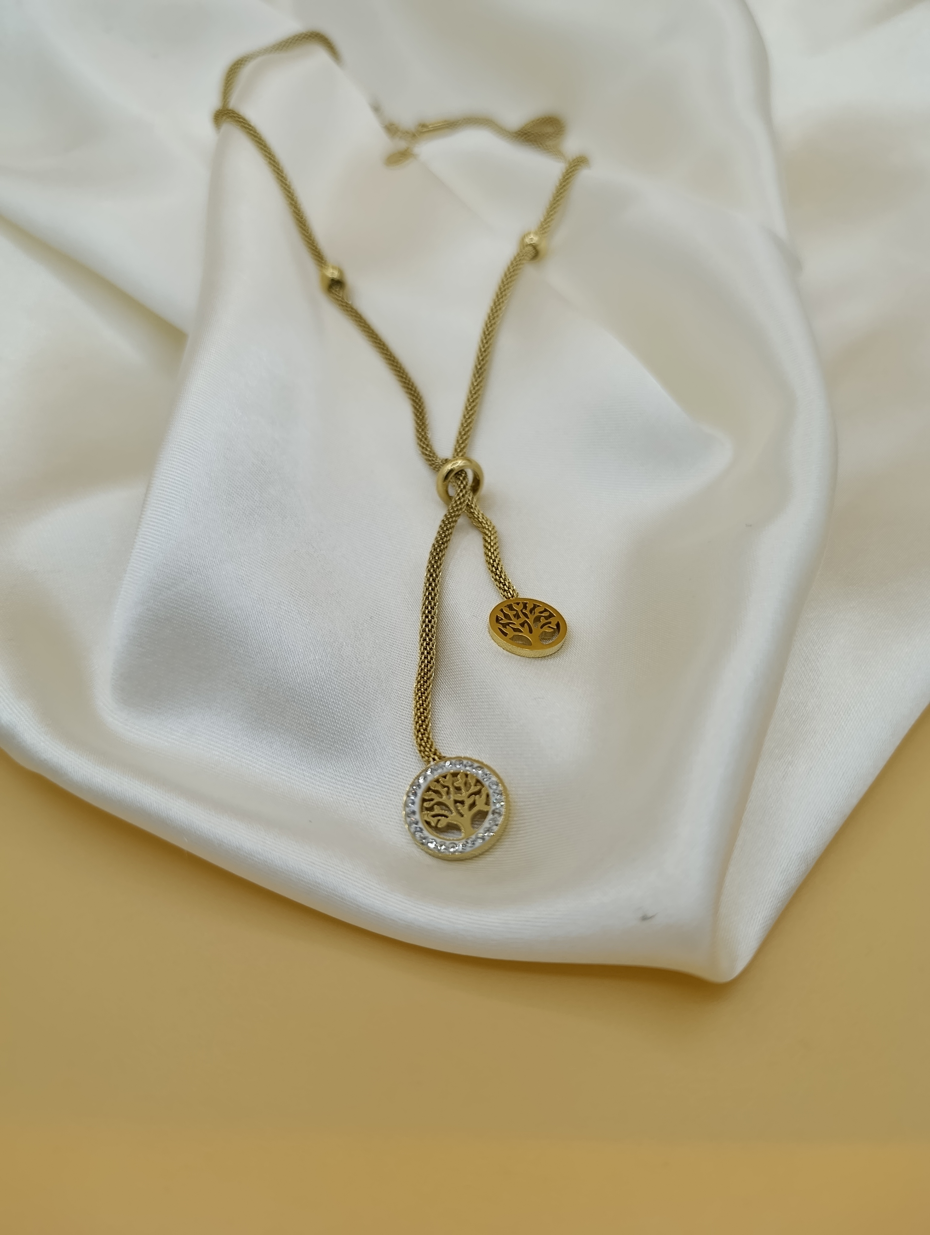 Zirkon Taşlı Hayat Ağacı Model Çelik Dorika Zincir Kolye