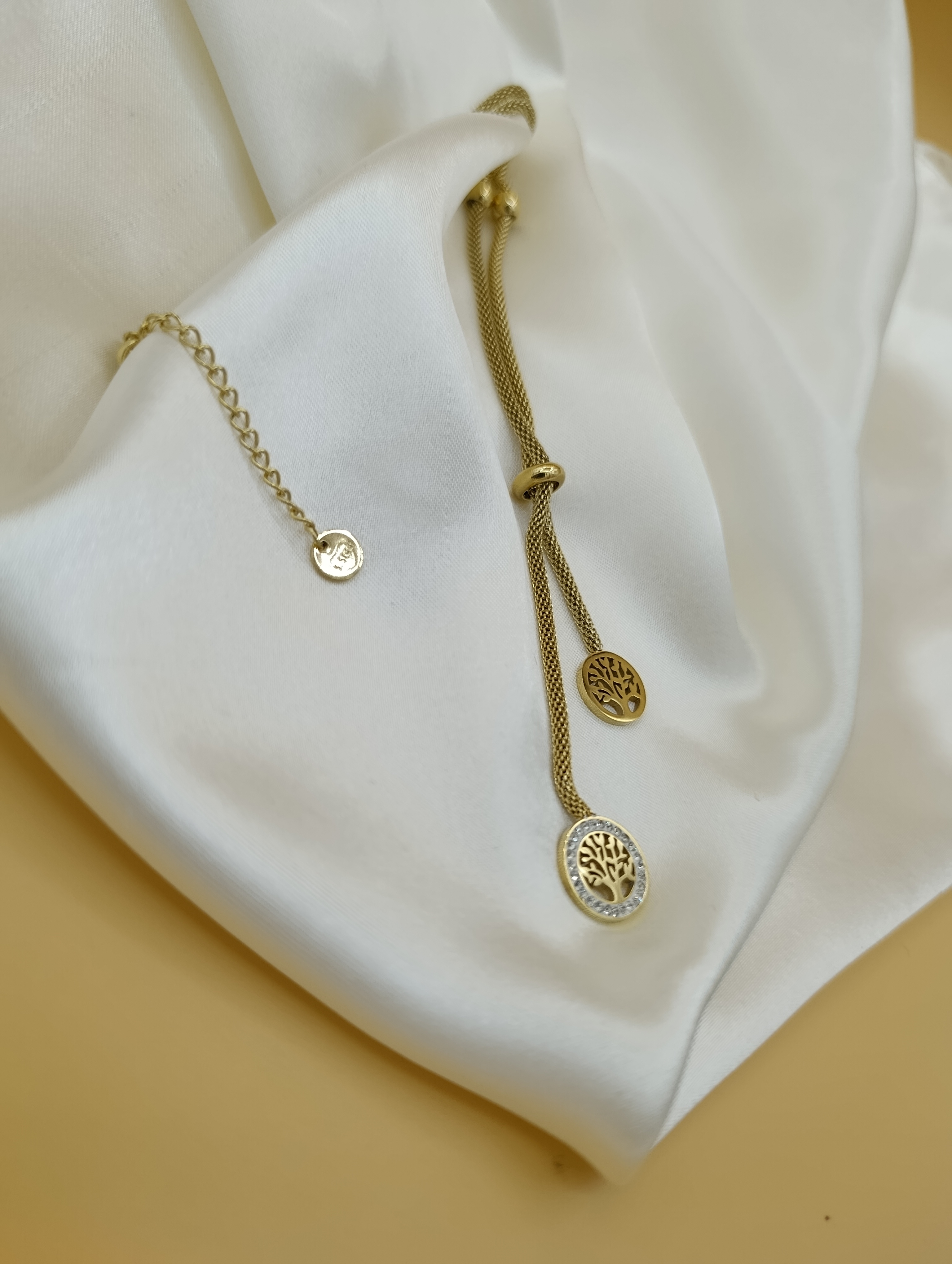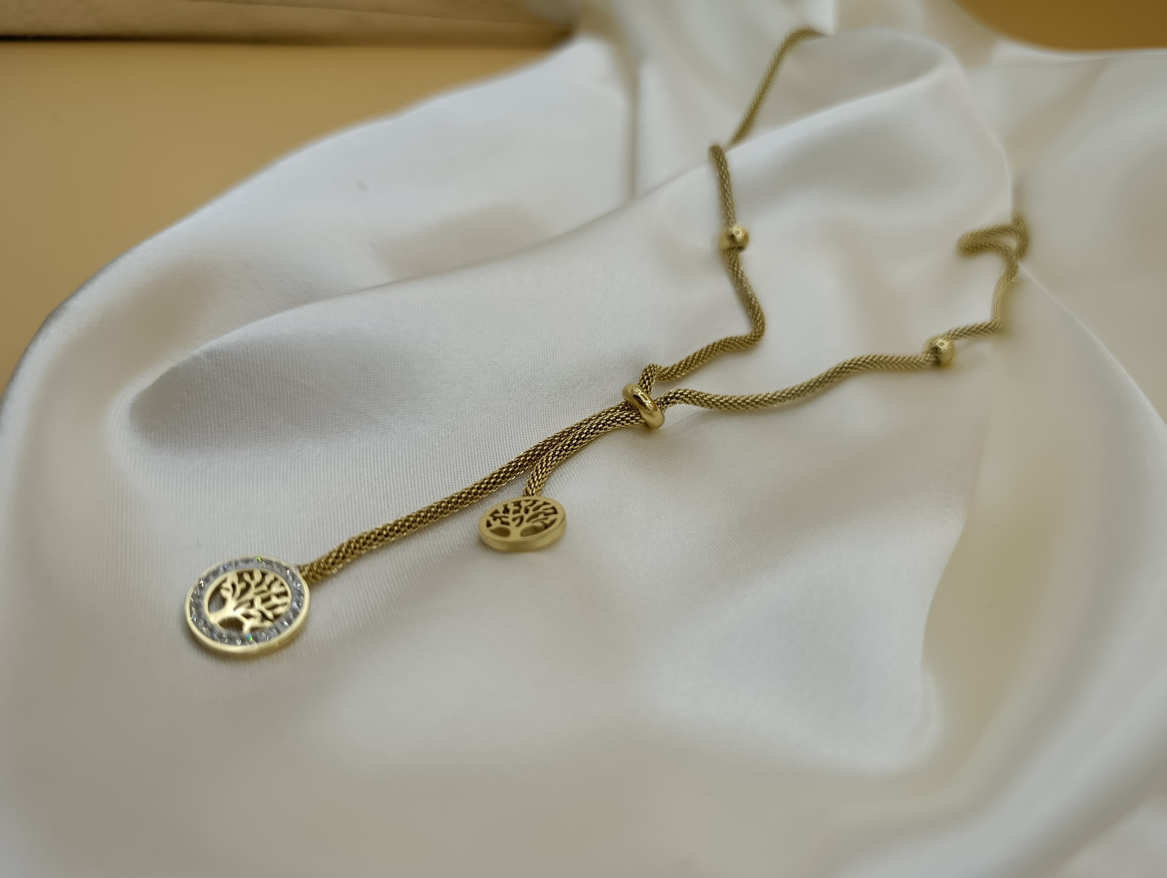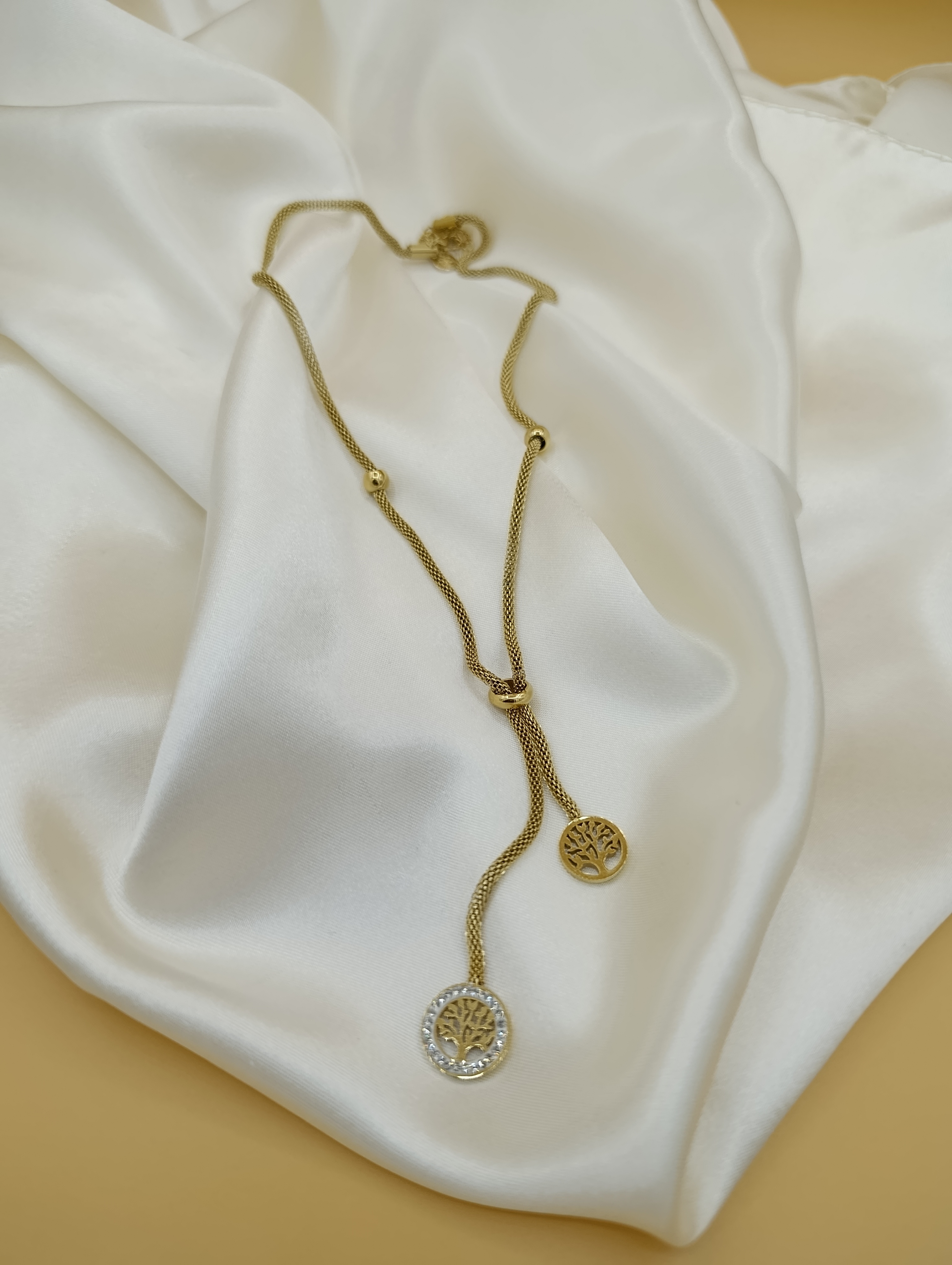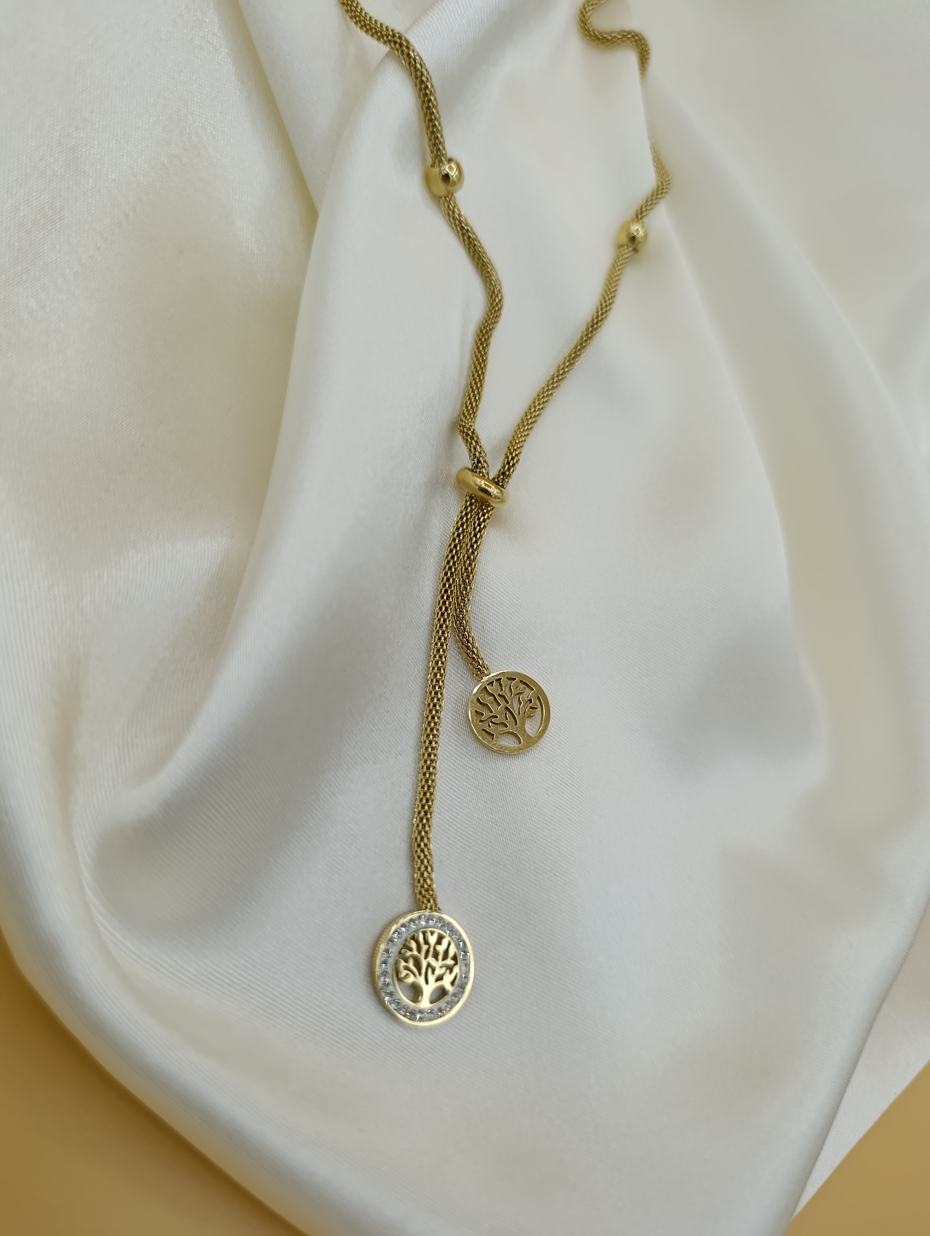 Zirkon Taşlı Hayat Ağacı Model Çelik Dorika Zincir Kolye