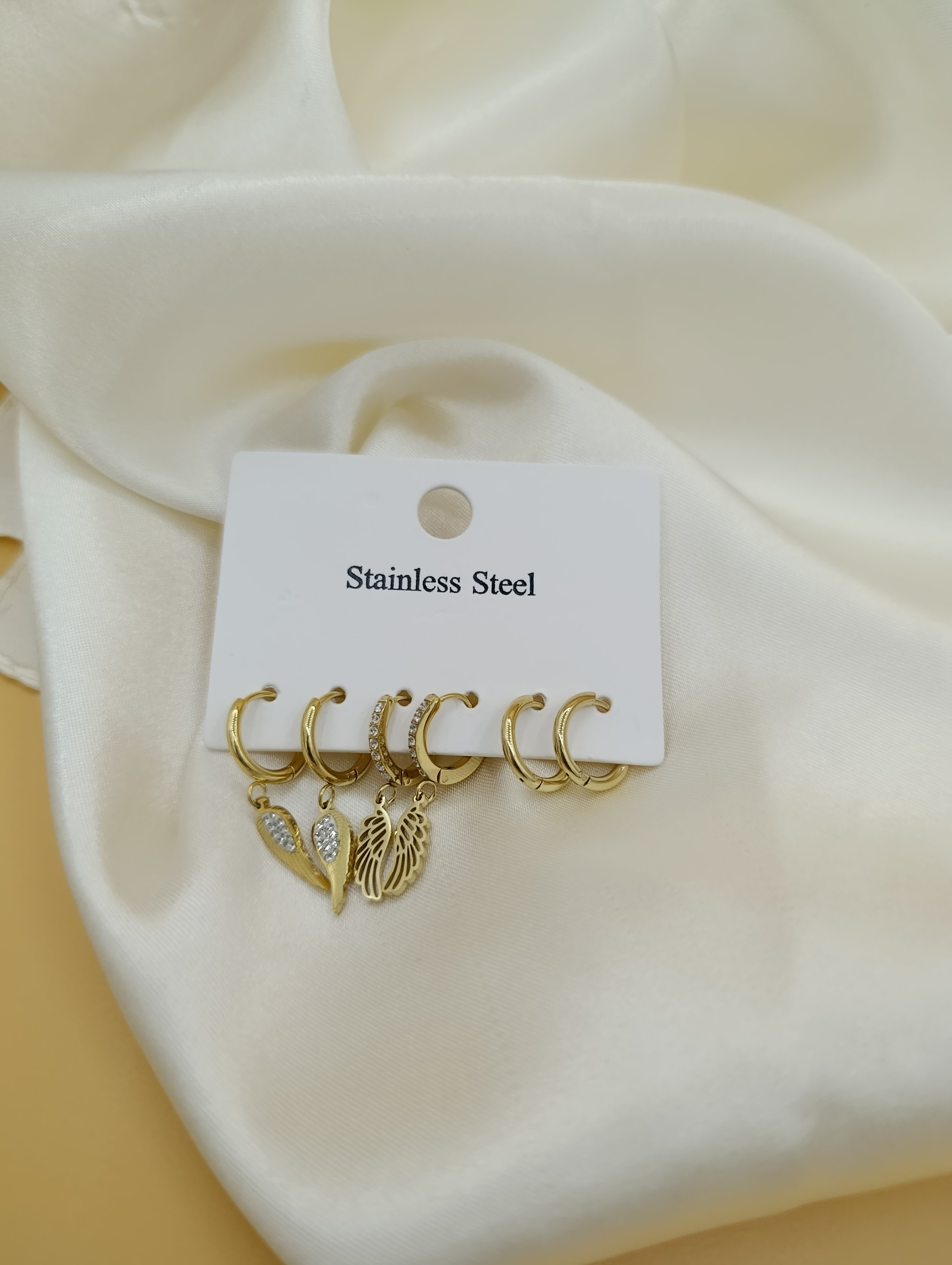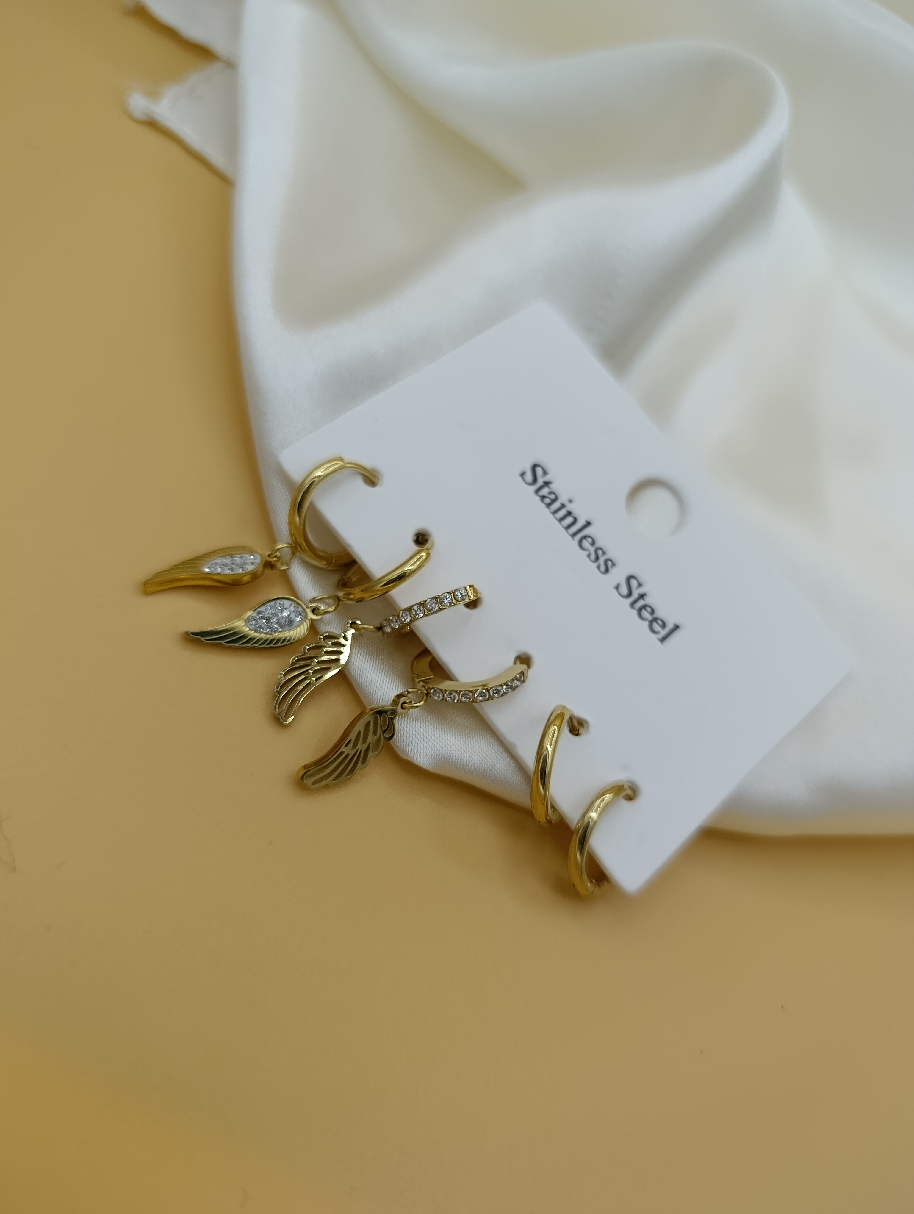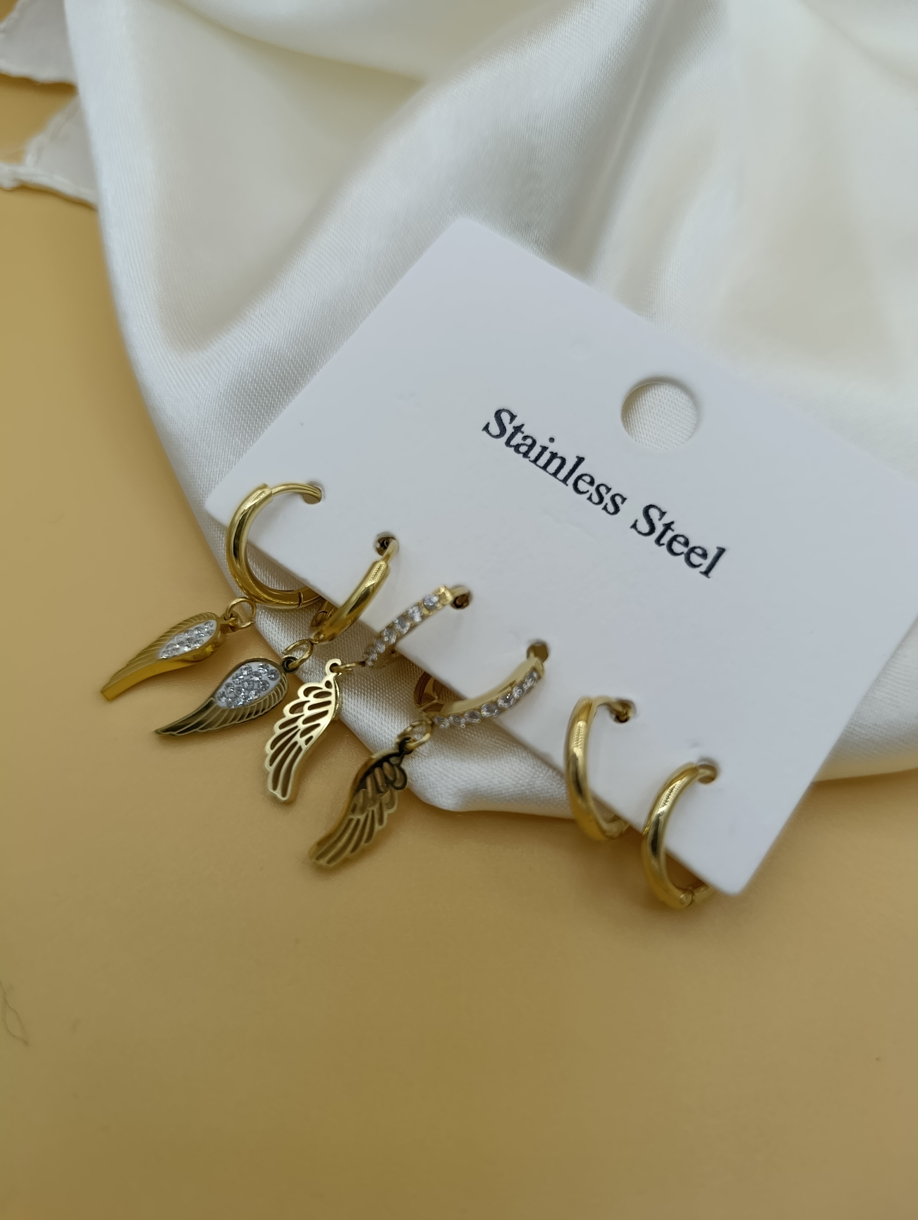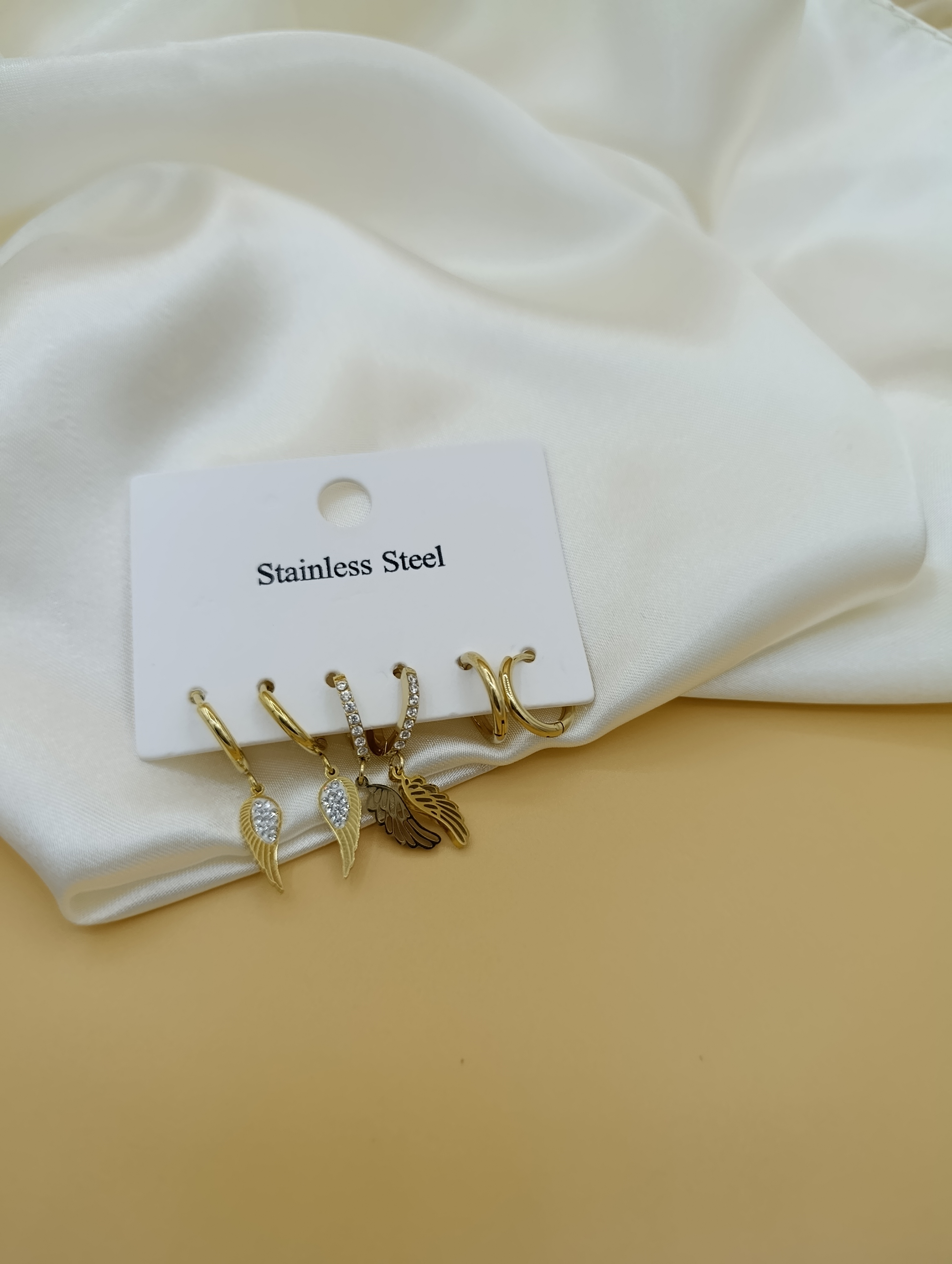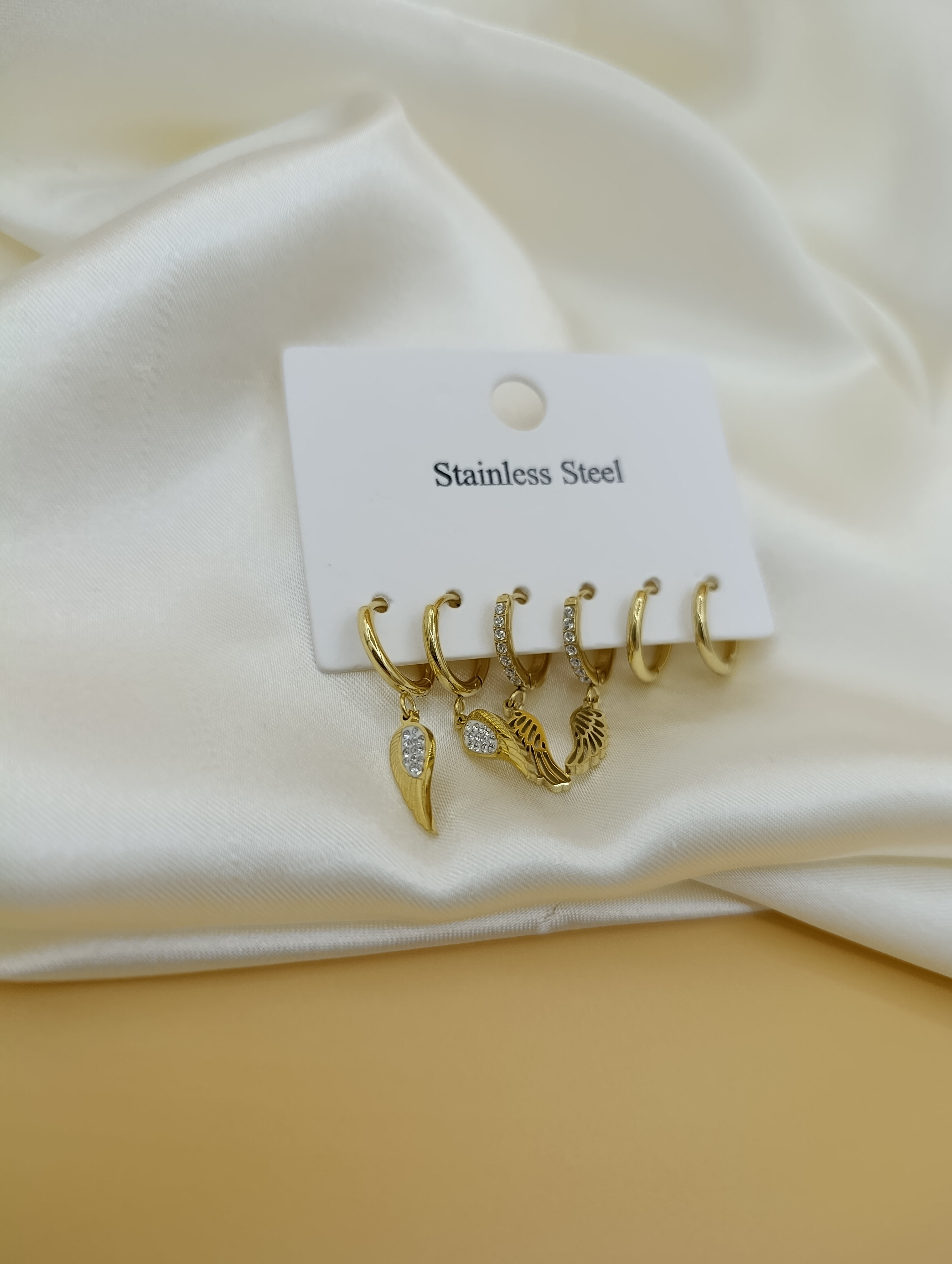 Zirkon Taşlı Kanat ve Halka Model Çoklu Çelik Küpe