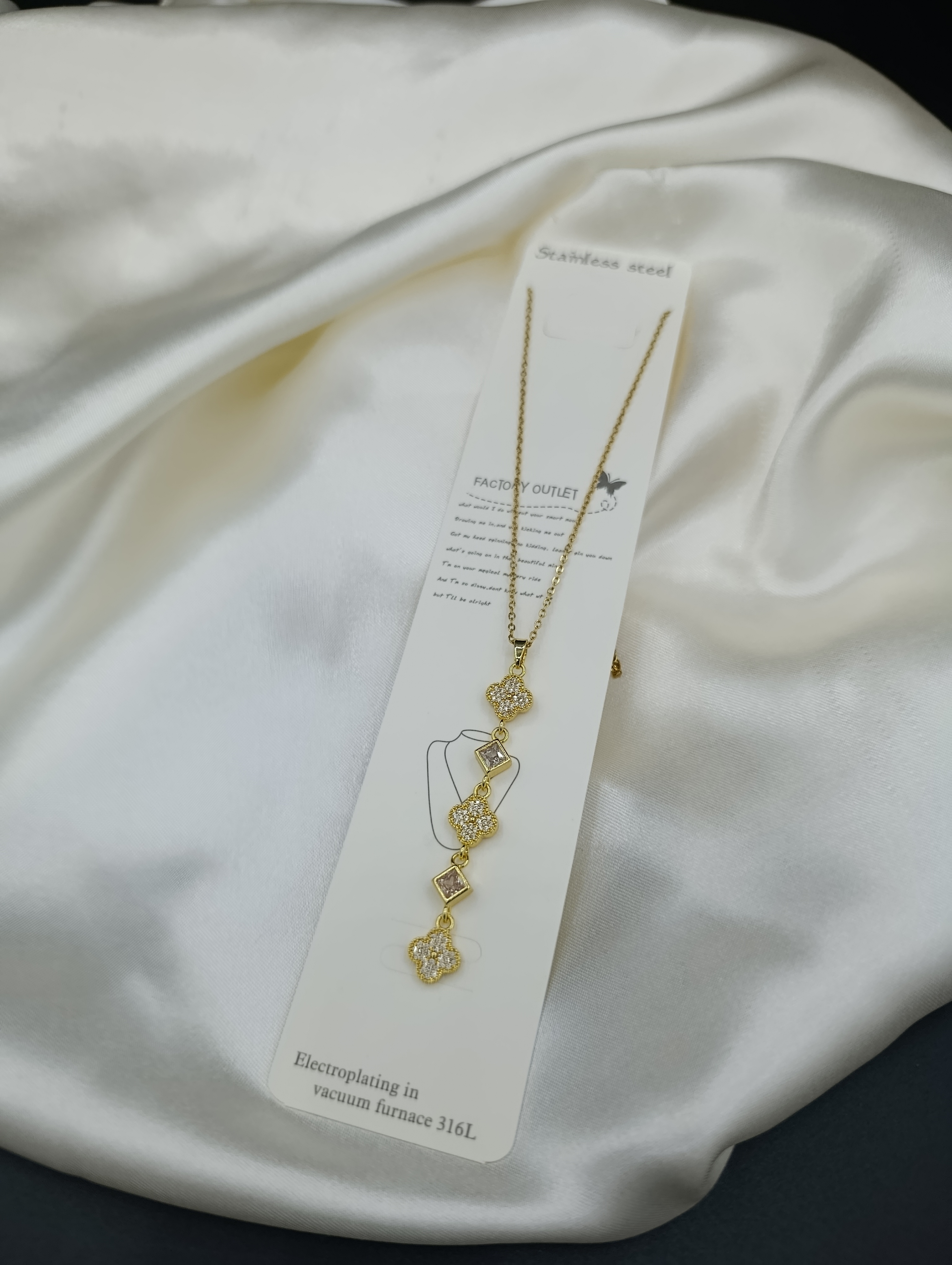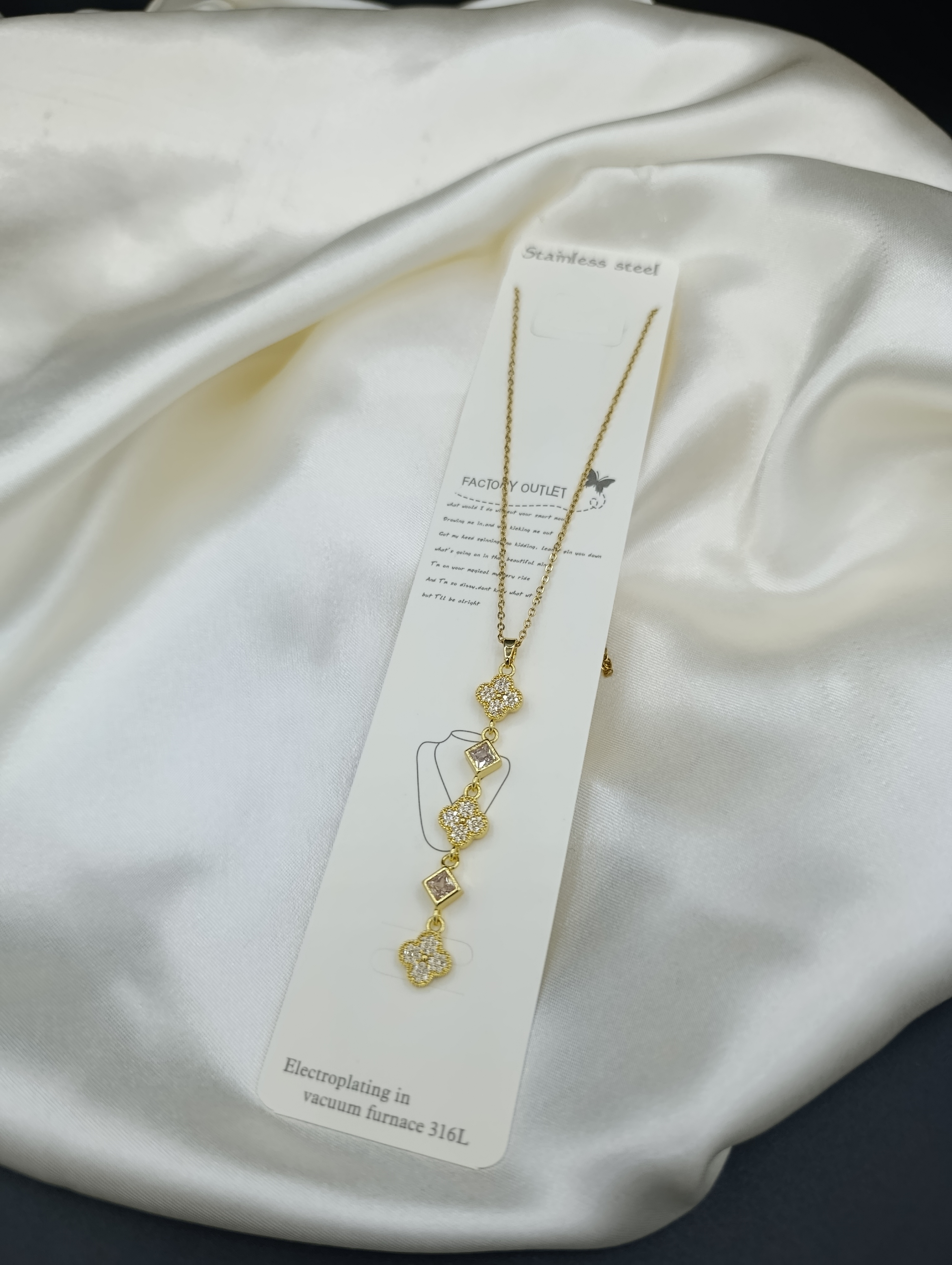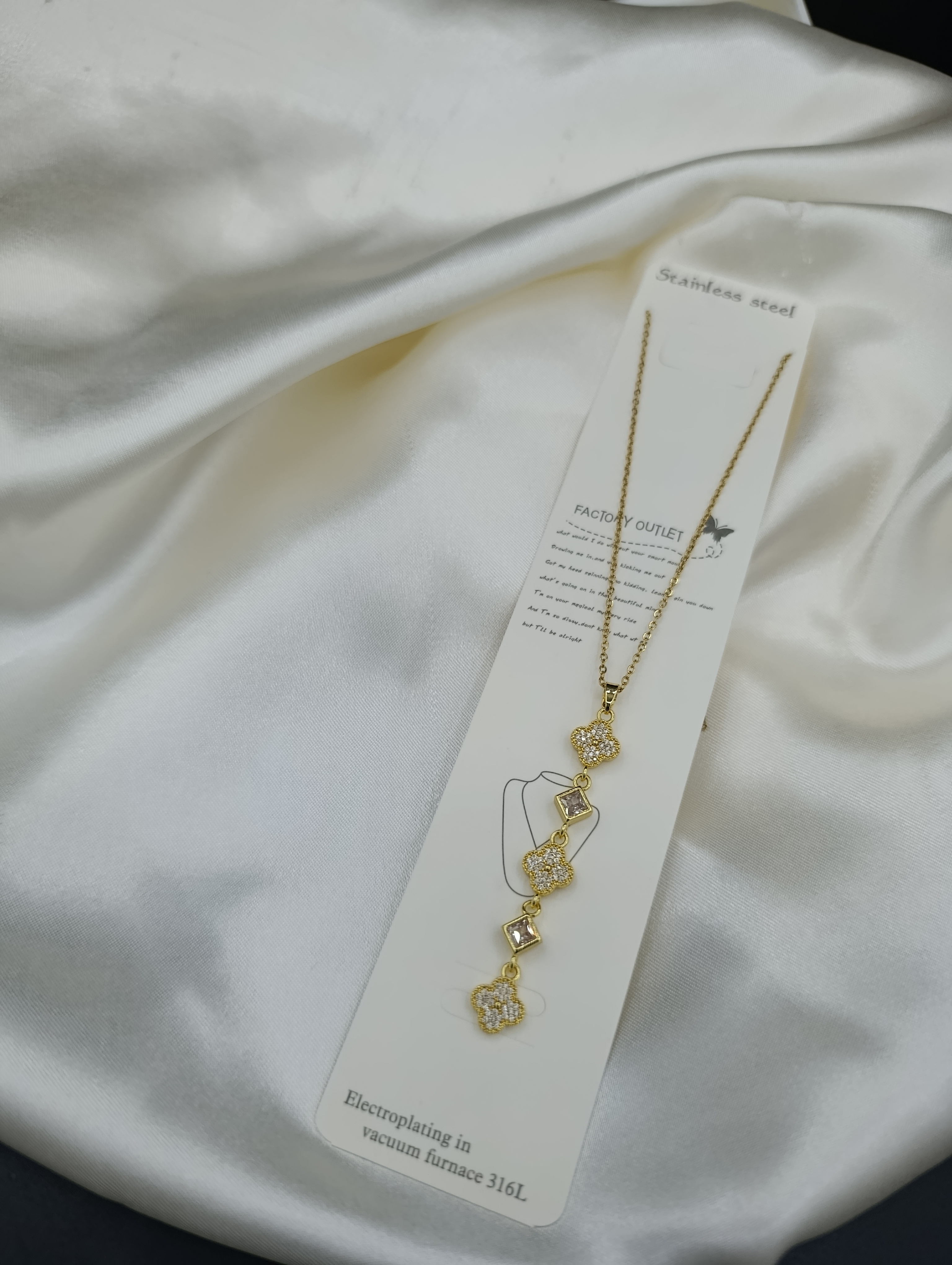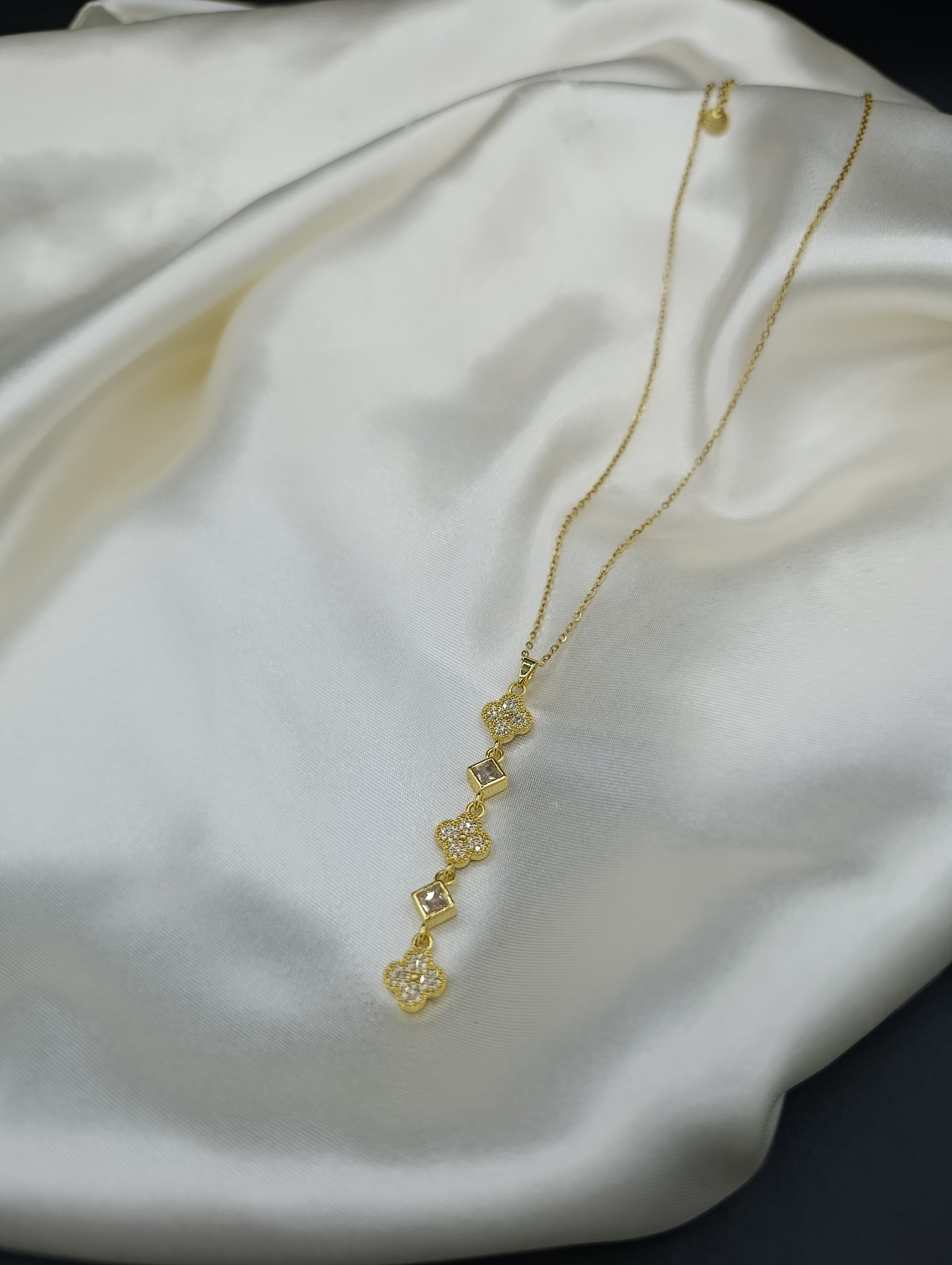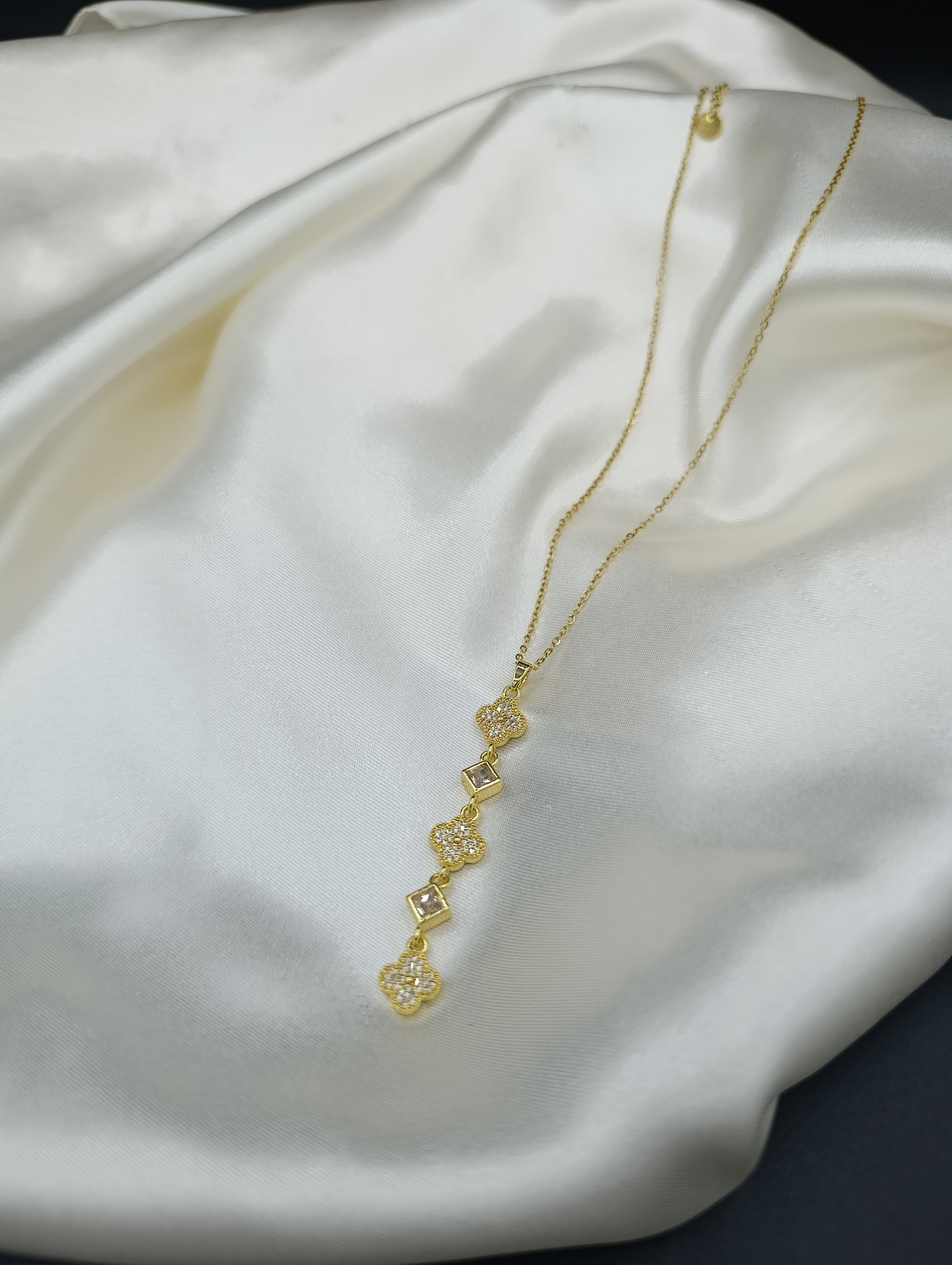 Zirkon Taşlı Yonca Sallantılı Y Model Çelik Kolye
